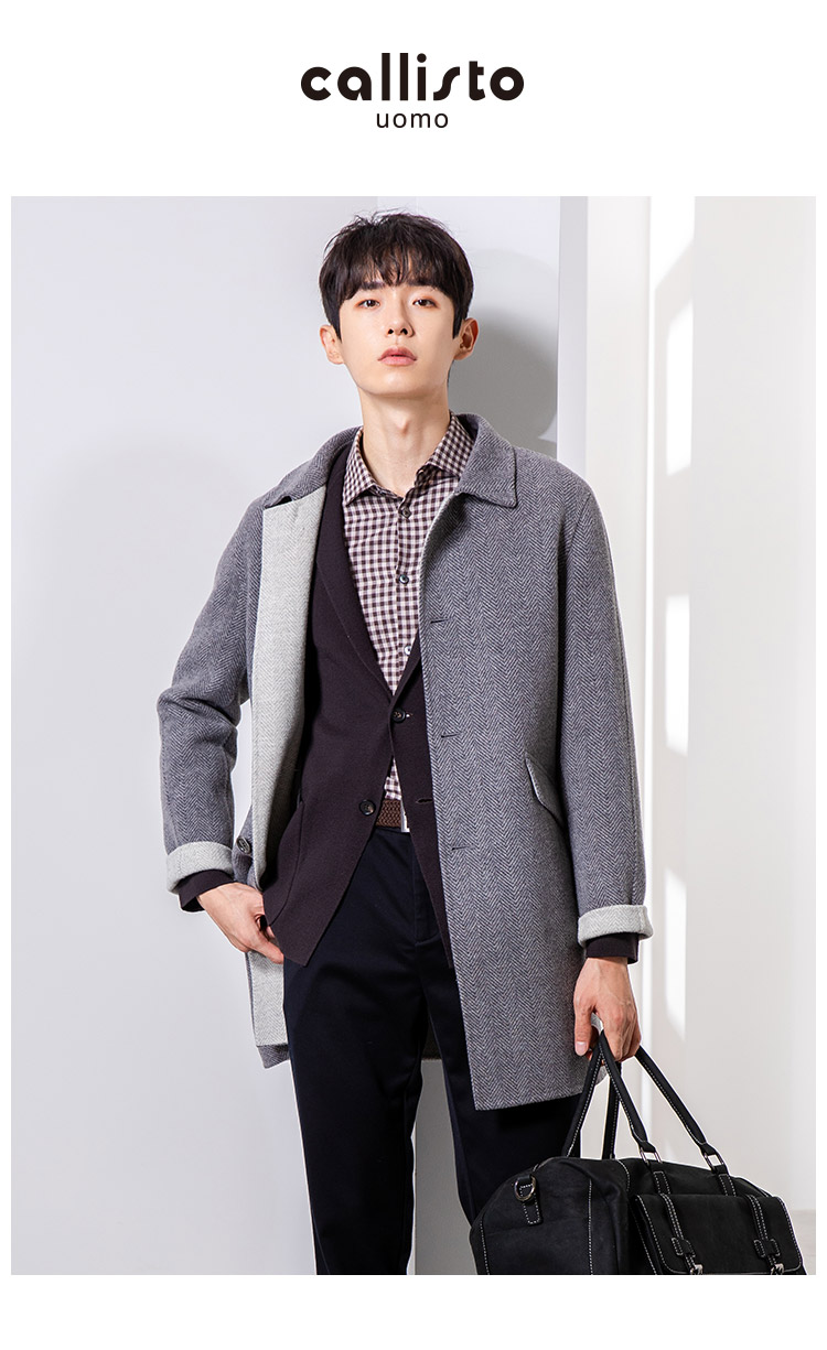 callisto灰色全羊毛手工大衣 FQFEC069C