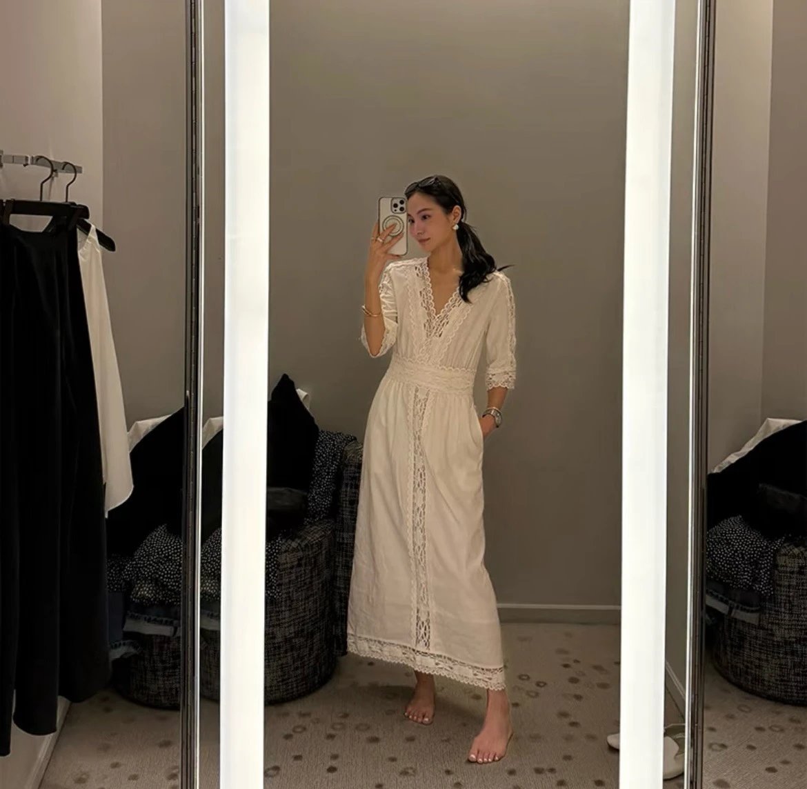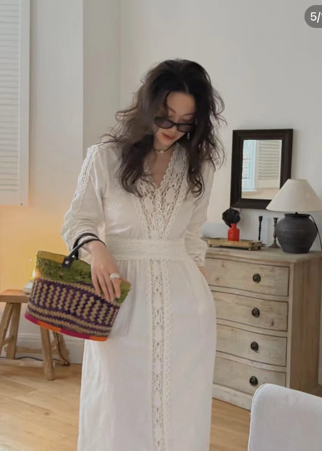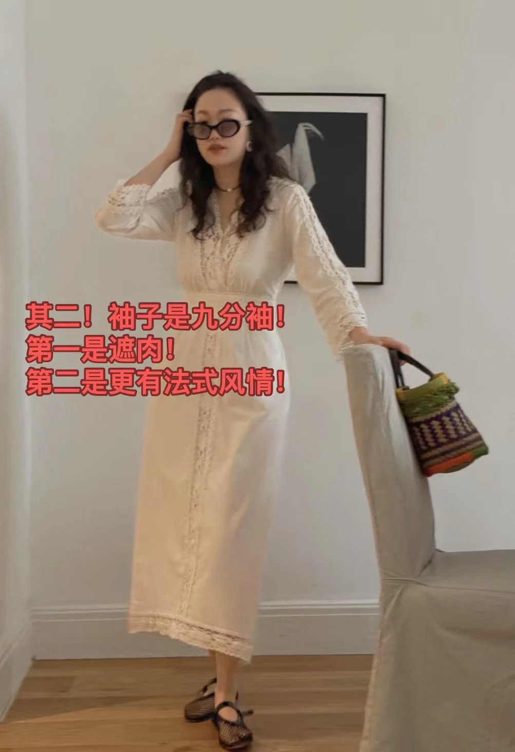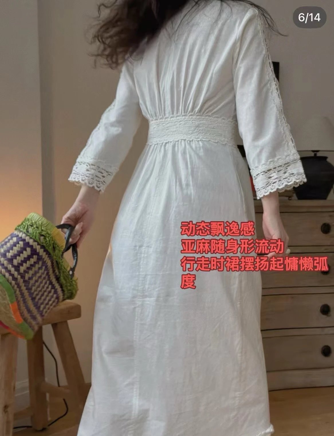 重磅渠道!is法式亚麻连衣裙 亚麻V领连衣裙 法式白月光连衣裙