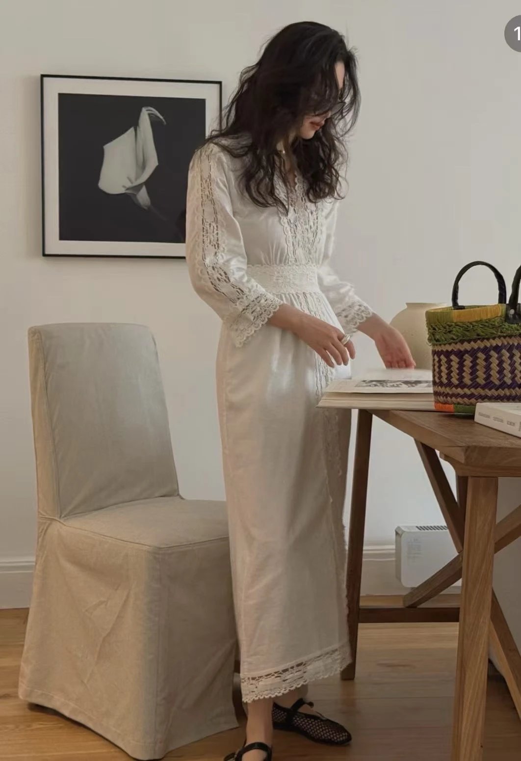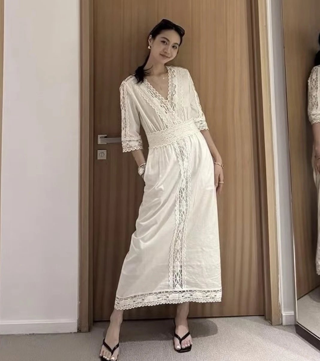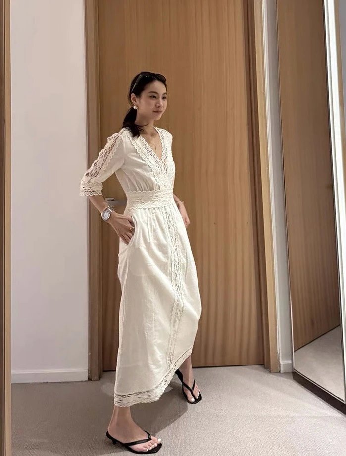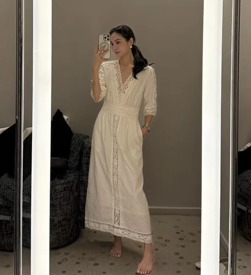 重磅渠道!is法式亚麻连衣裙 亚麻V领连衣裙 法式白月光连衣裙