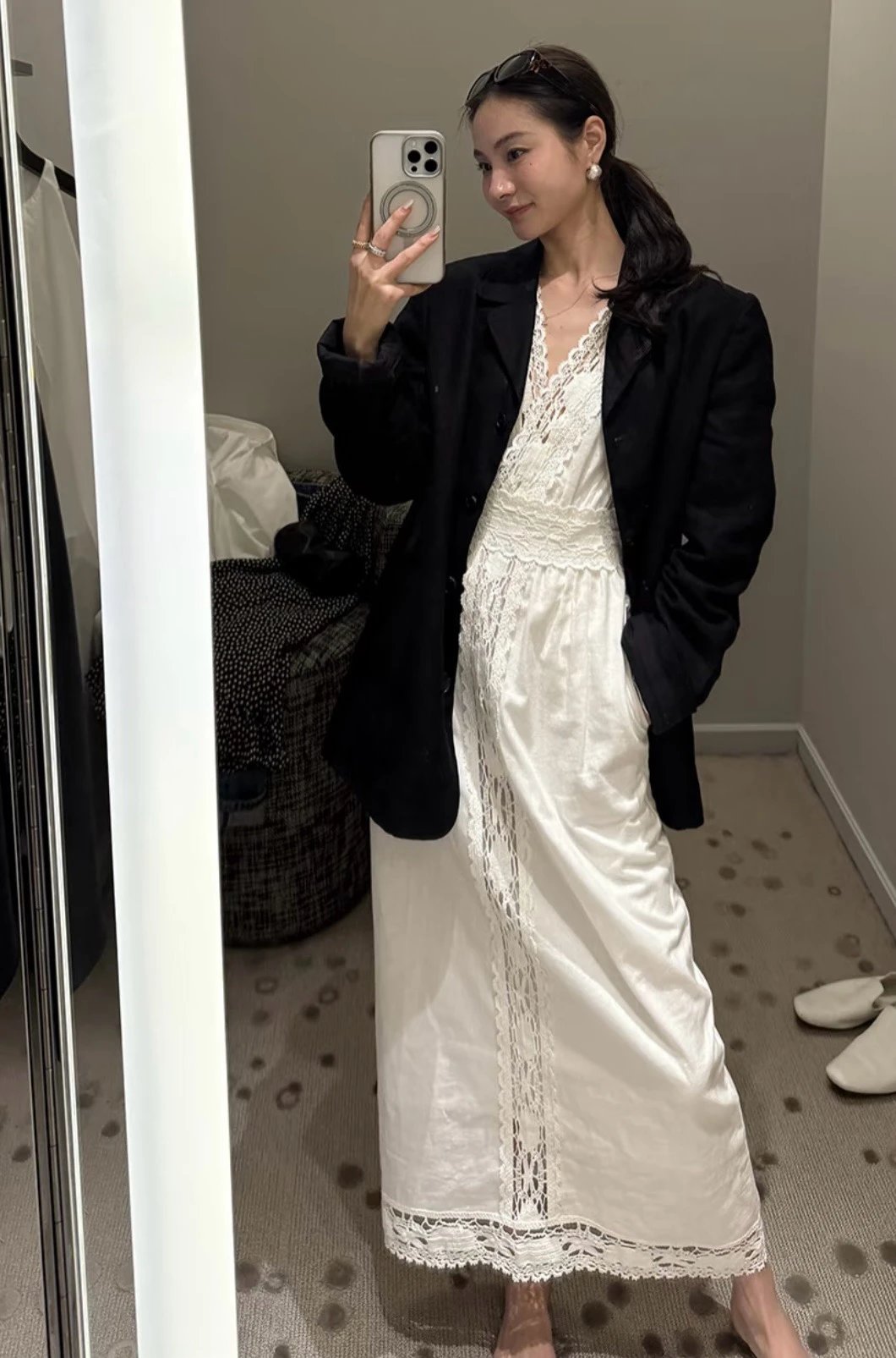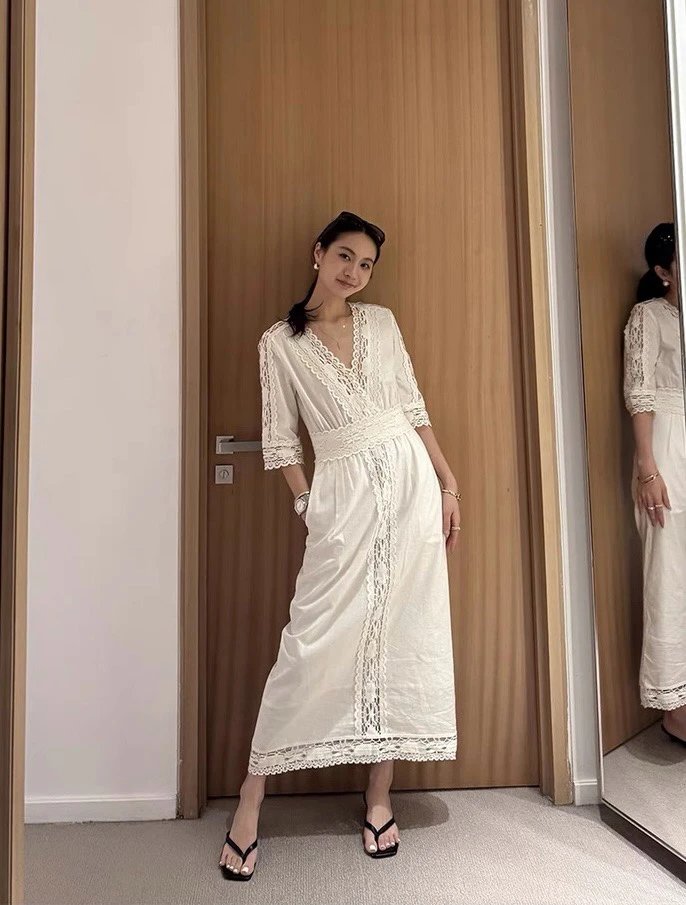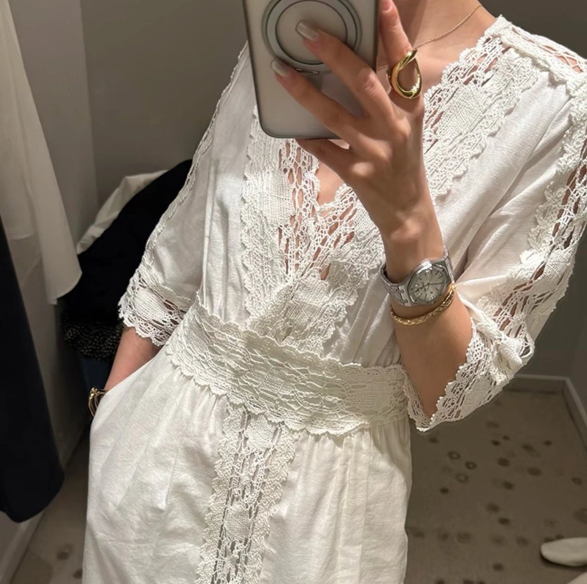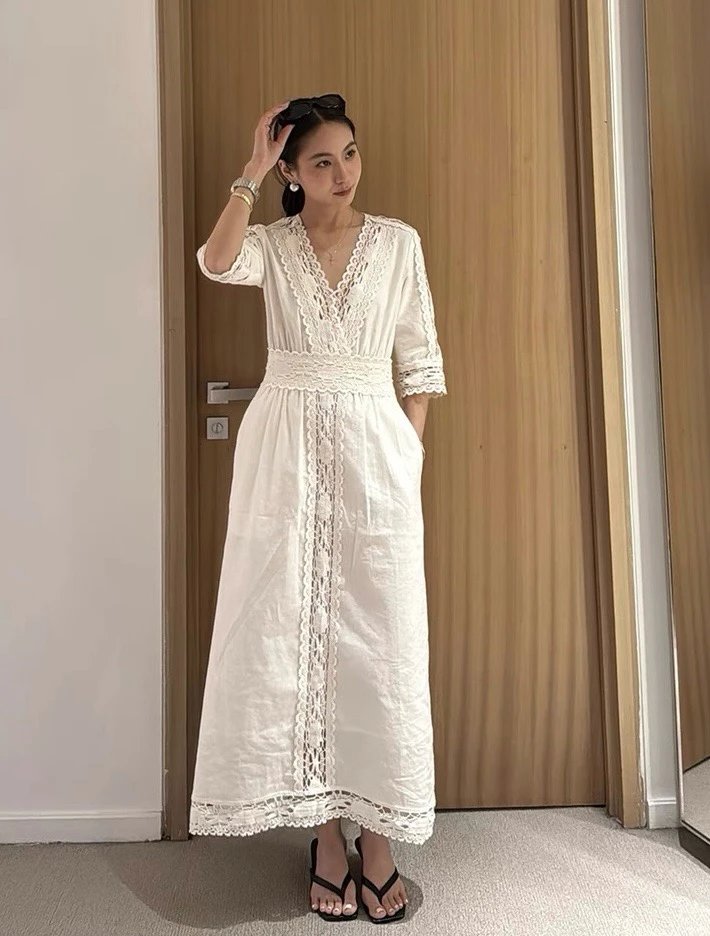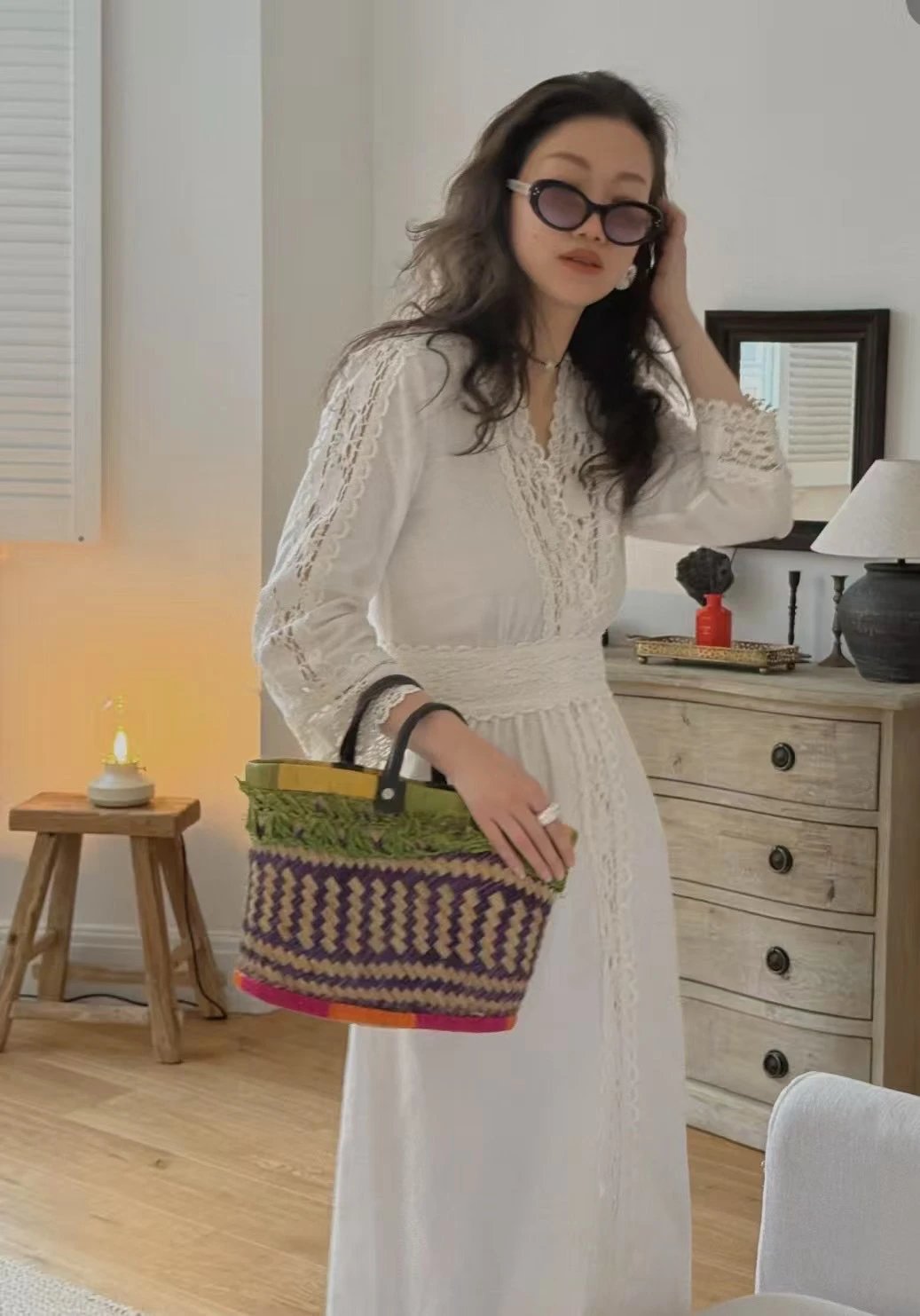重磅渠道!is法式亚麻连衣裙 亚麻V领连衣裙 法式白月光连衣裙
