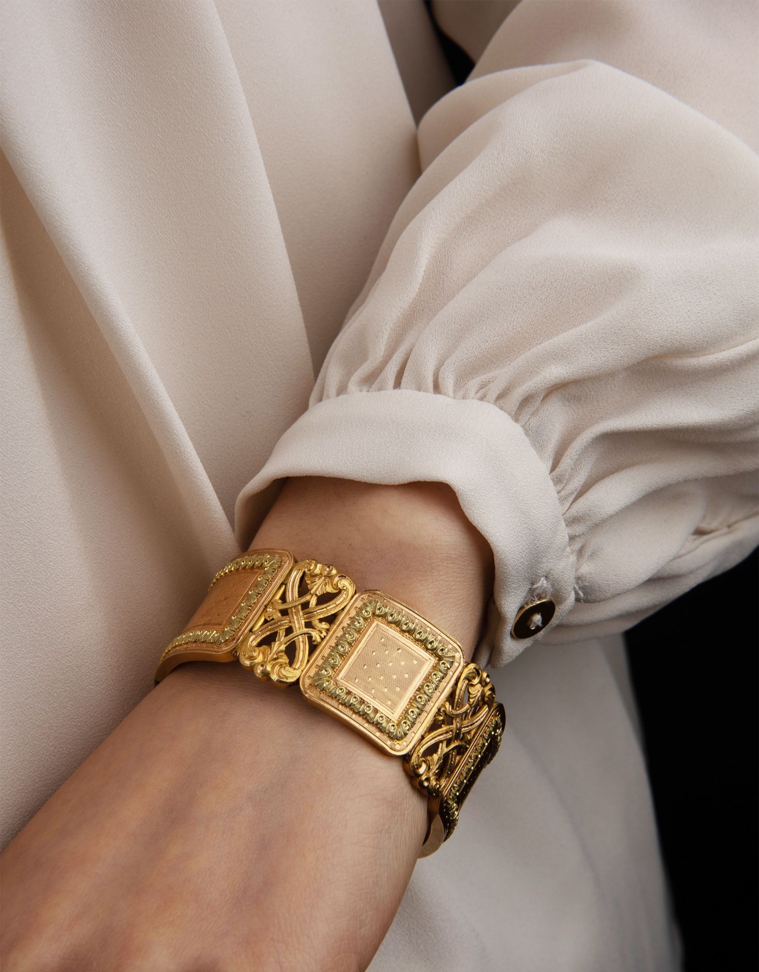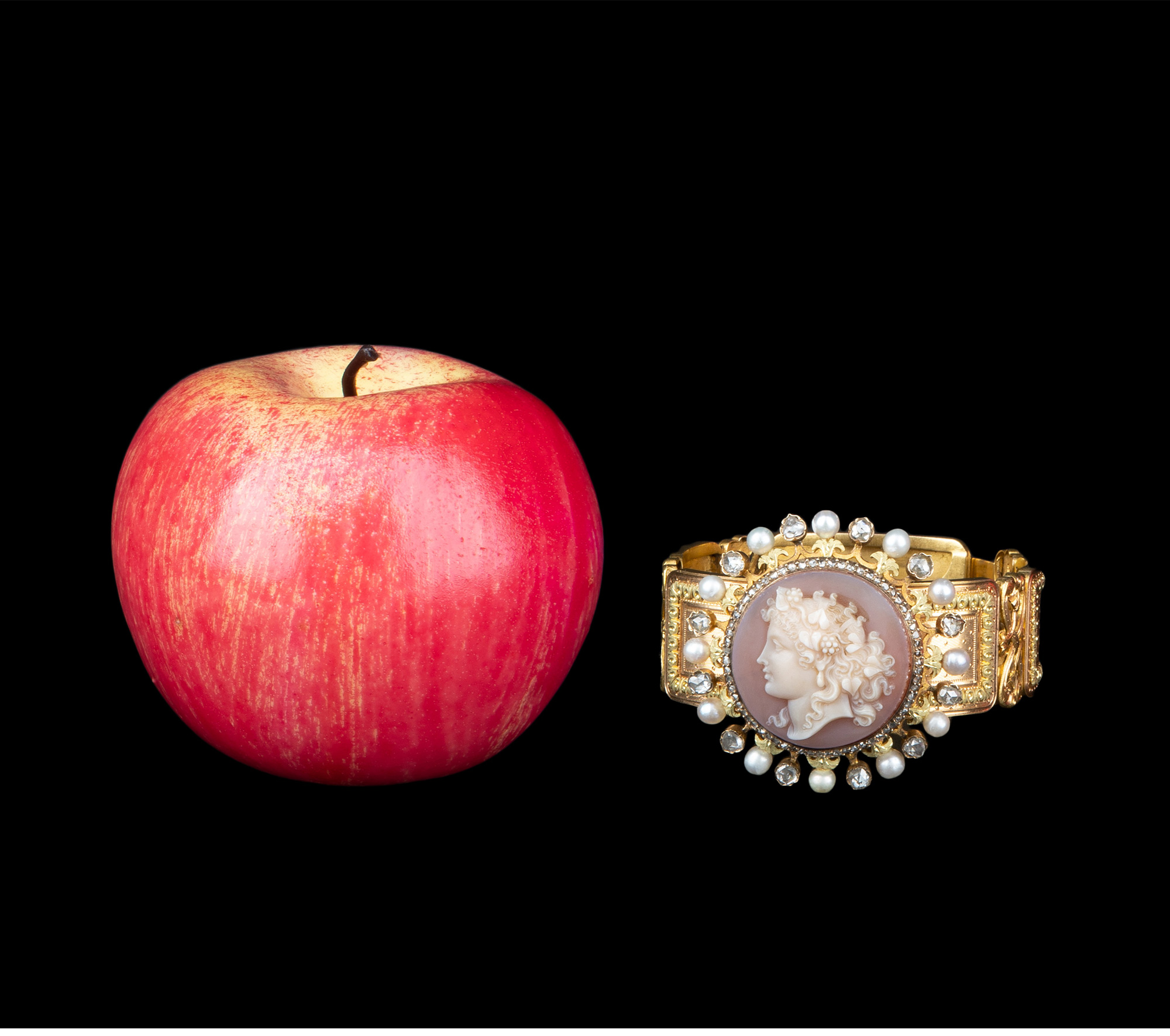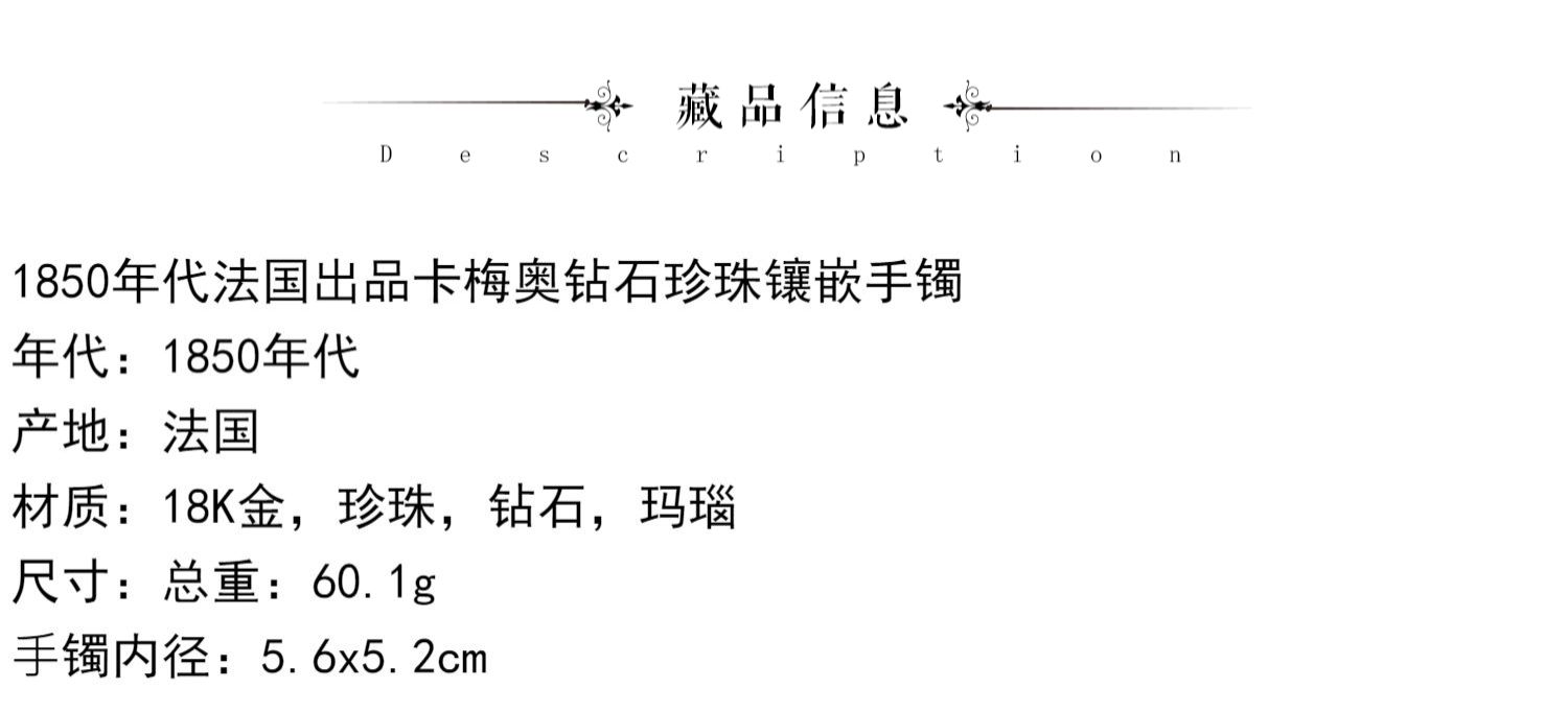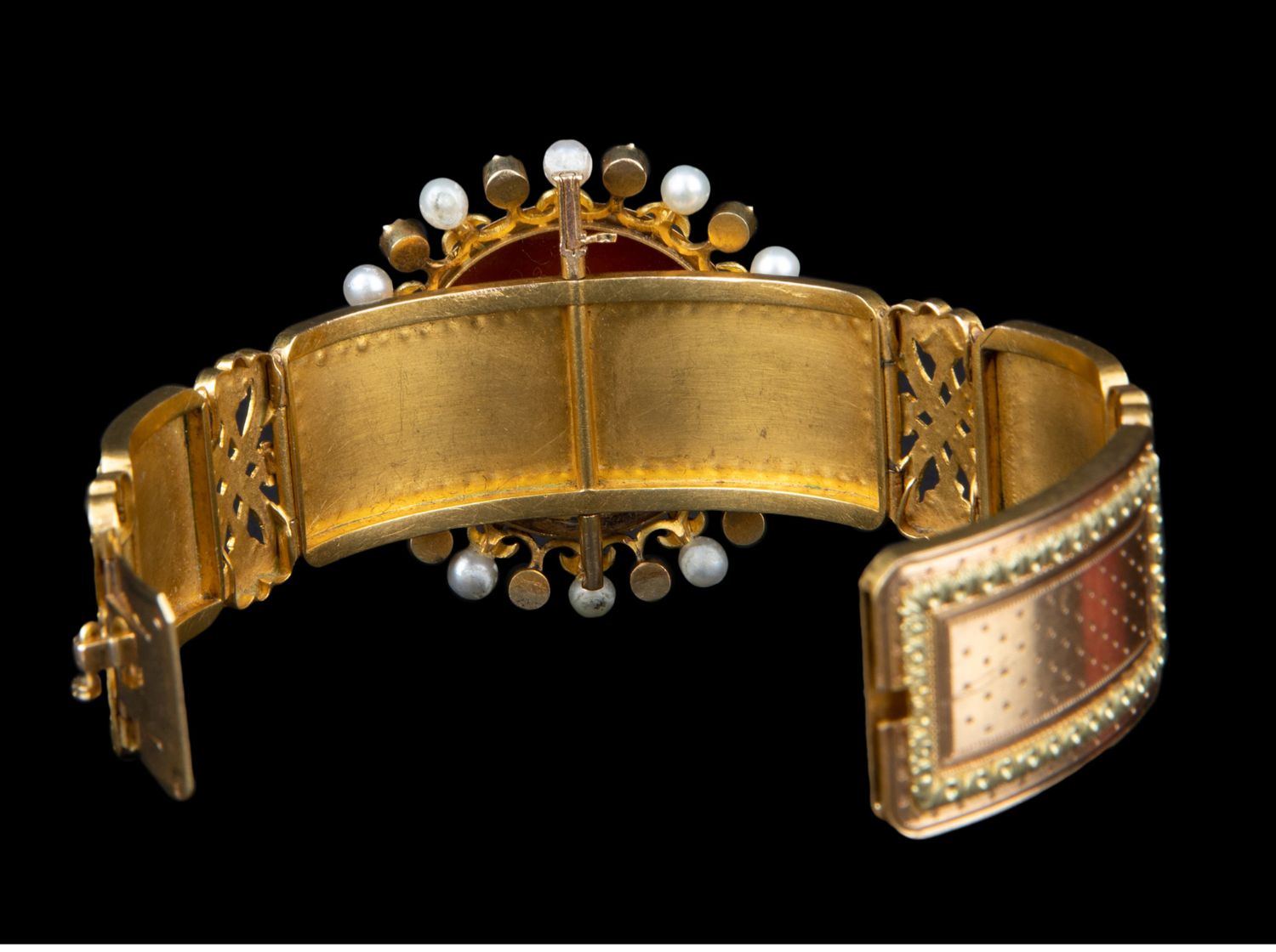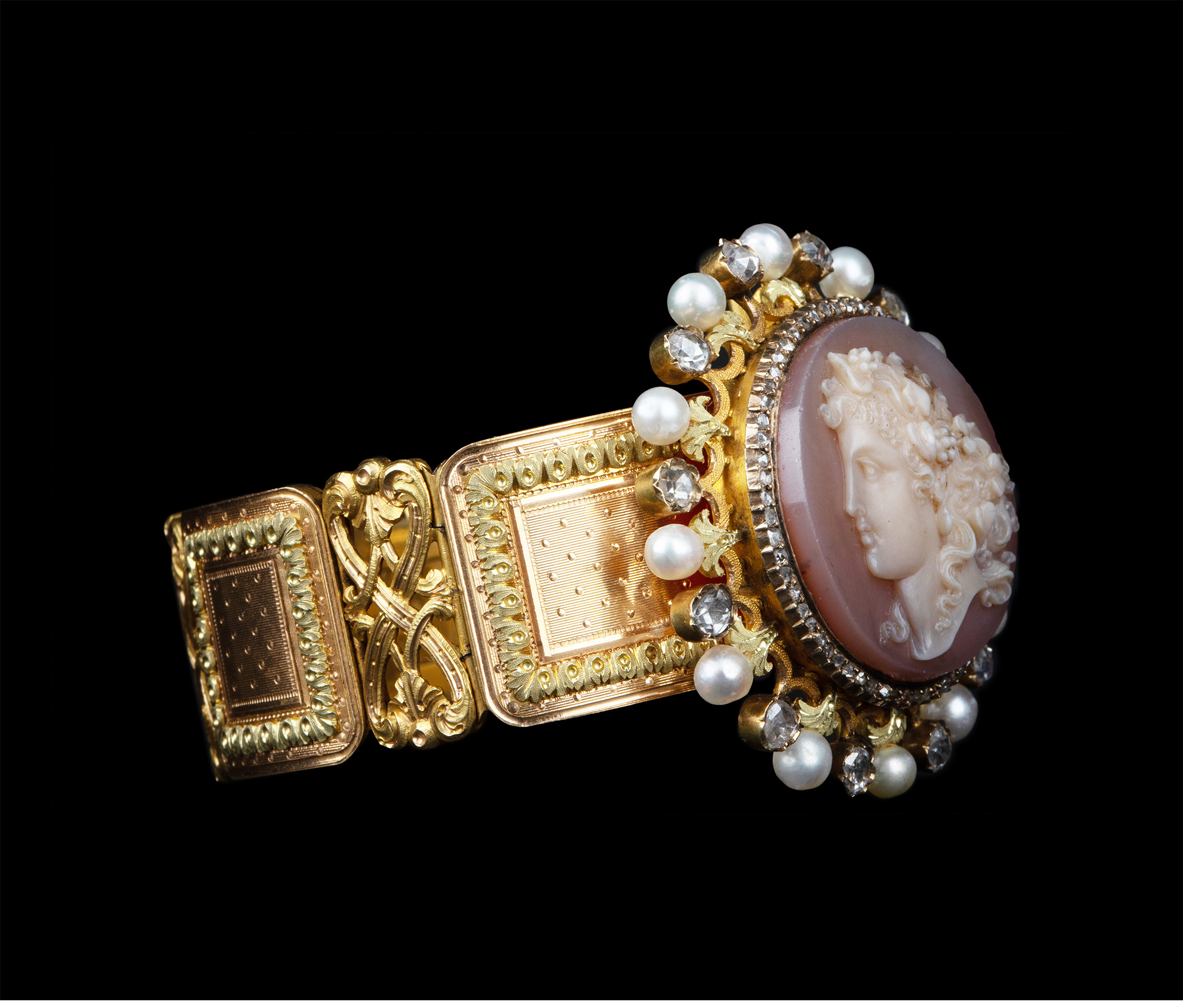 独角鹿西洋古董18K金镶嵌珍珠钻石玛瑙浮雕卡梅奥cameo手镯手链
