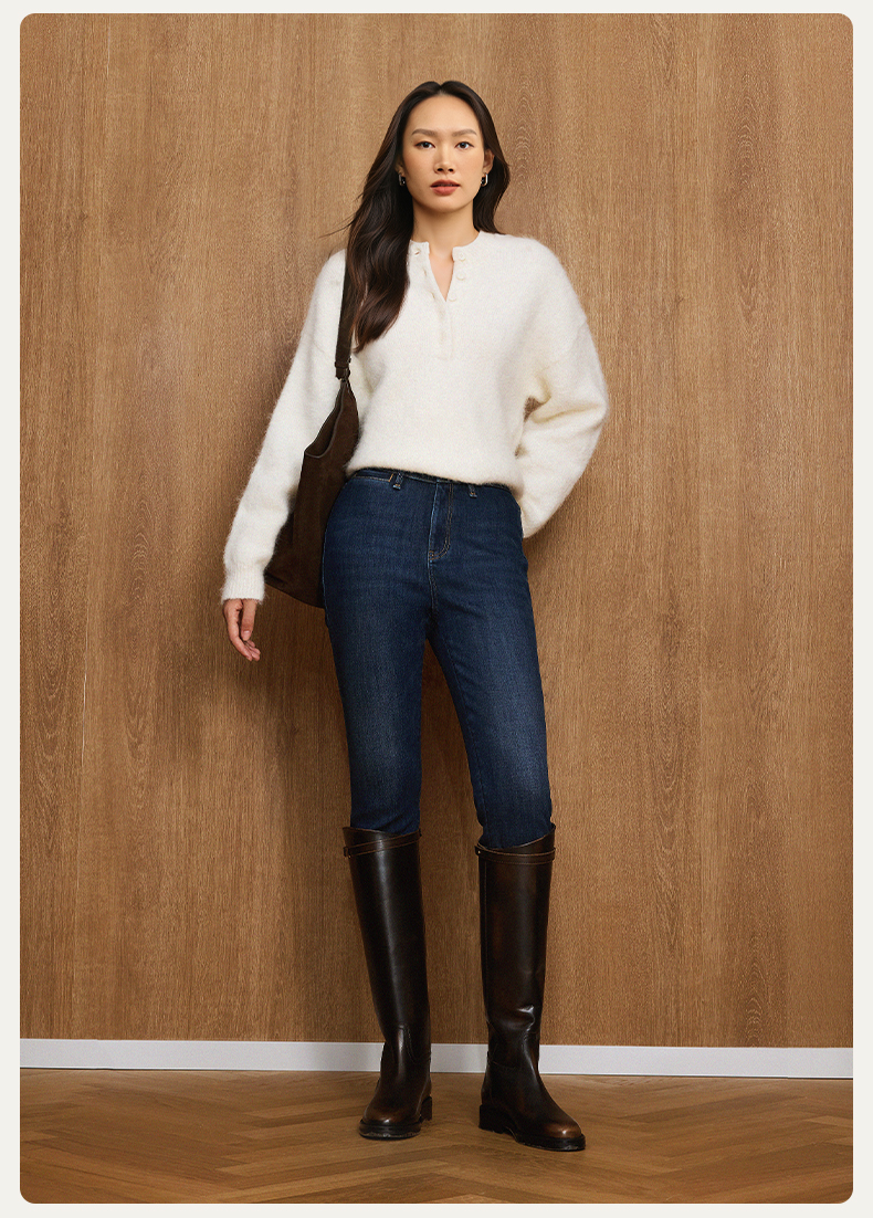 【保暖超紧身裤】simplepieces秋冬新款SPS牛仔女四面弹九分裤