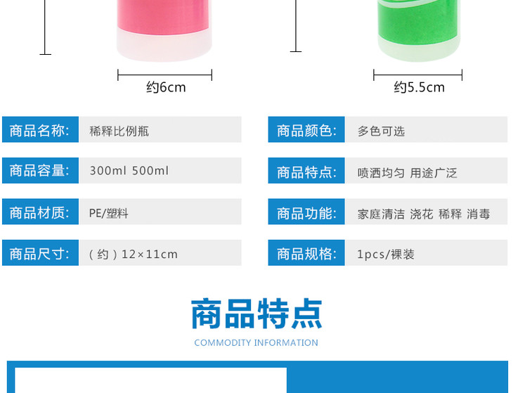 保洁清洁剂稀释瓶园艺浇花洗车家电清洗用稀释比例瓶优质喷雾瓶喷壶300毫升500毫升