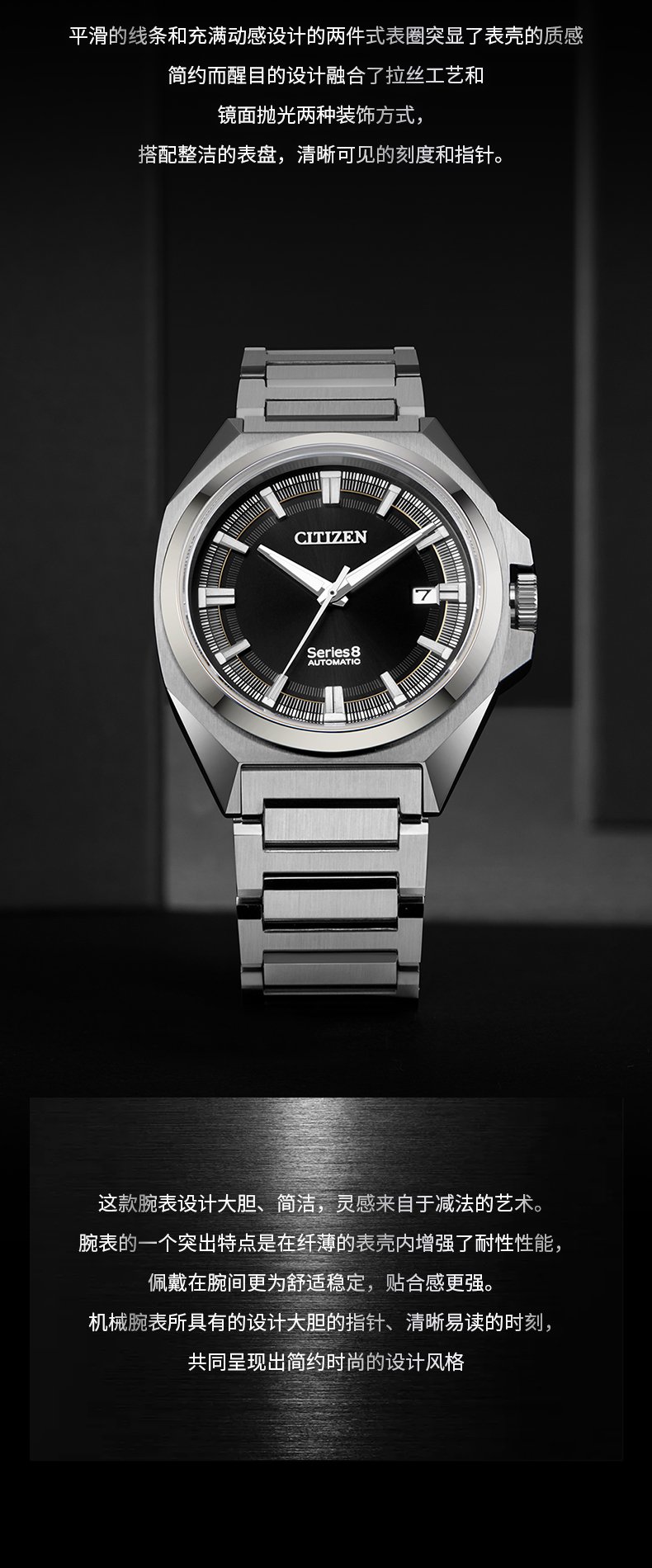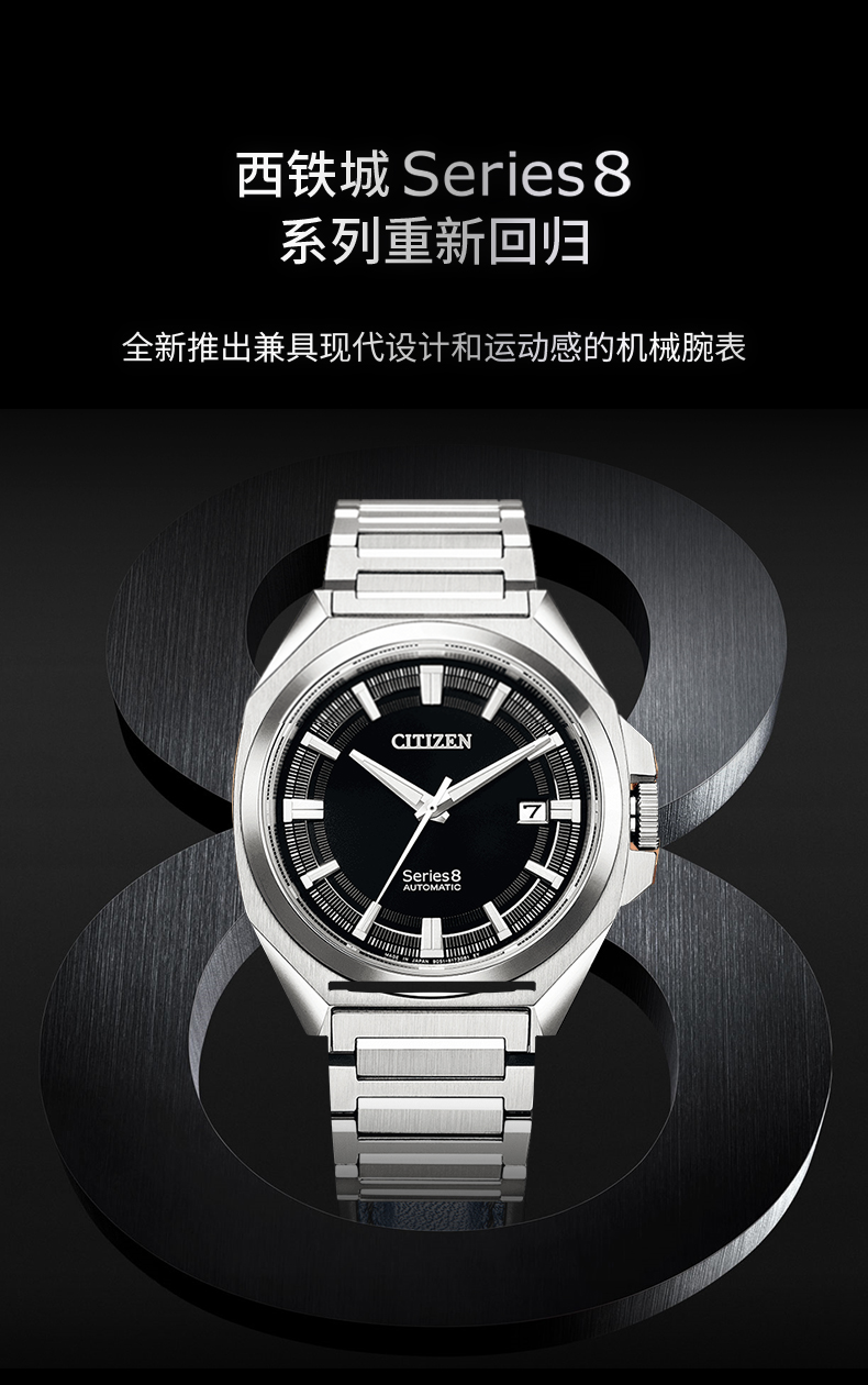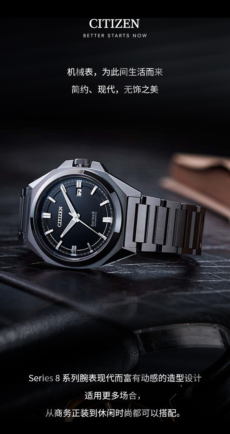 西铁城日本正品全新Series8系列商务休闲日历机械表NB6010-81E