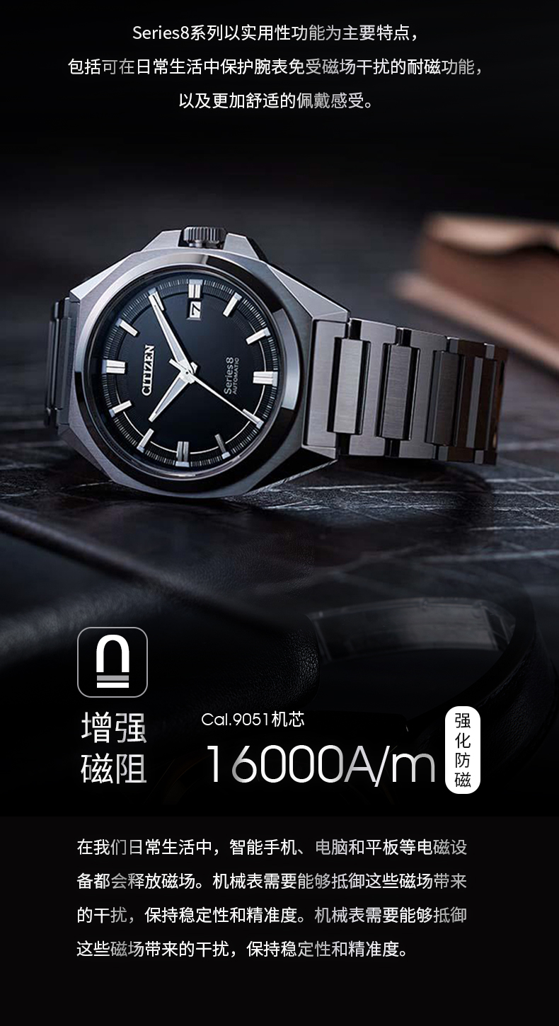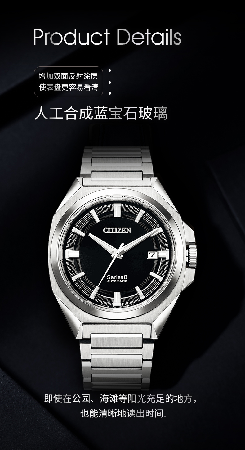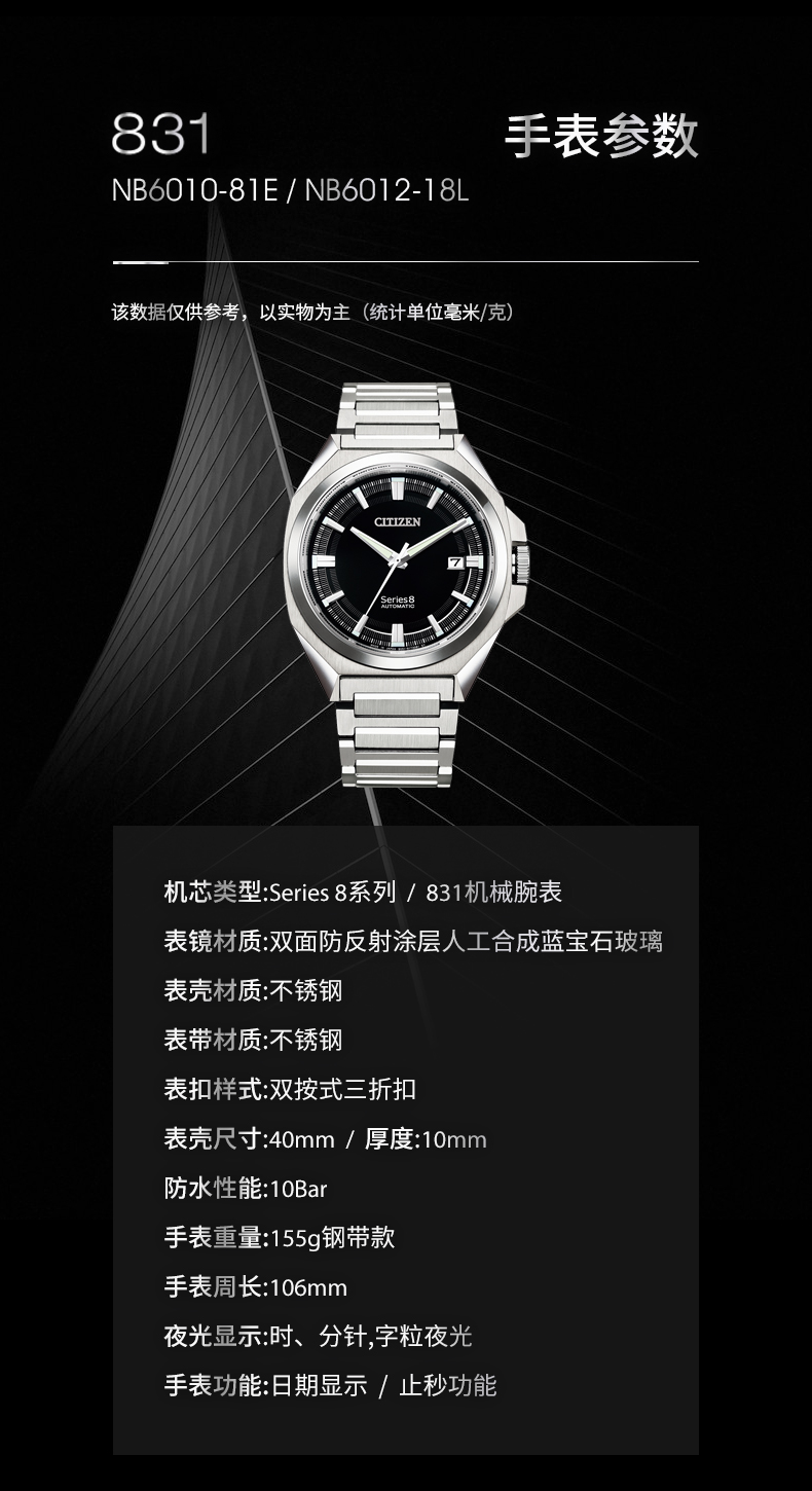 西铁城日本正品全新Series8系列商务休闲日历机械表NB6010-81E