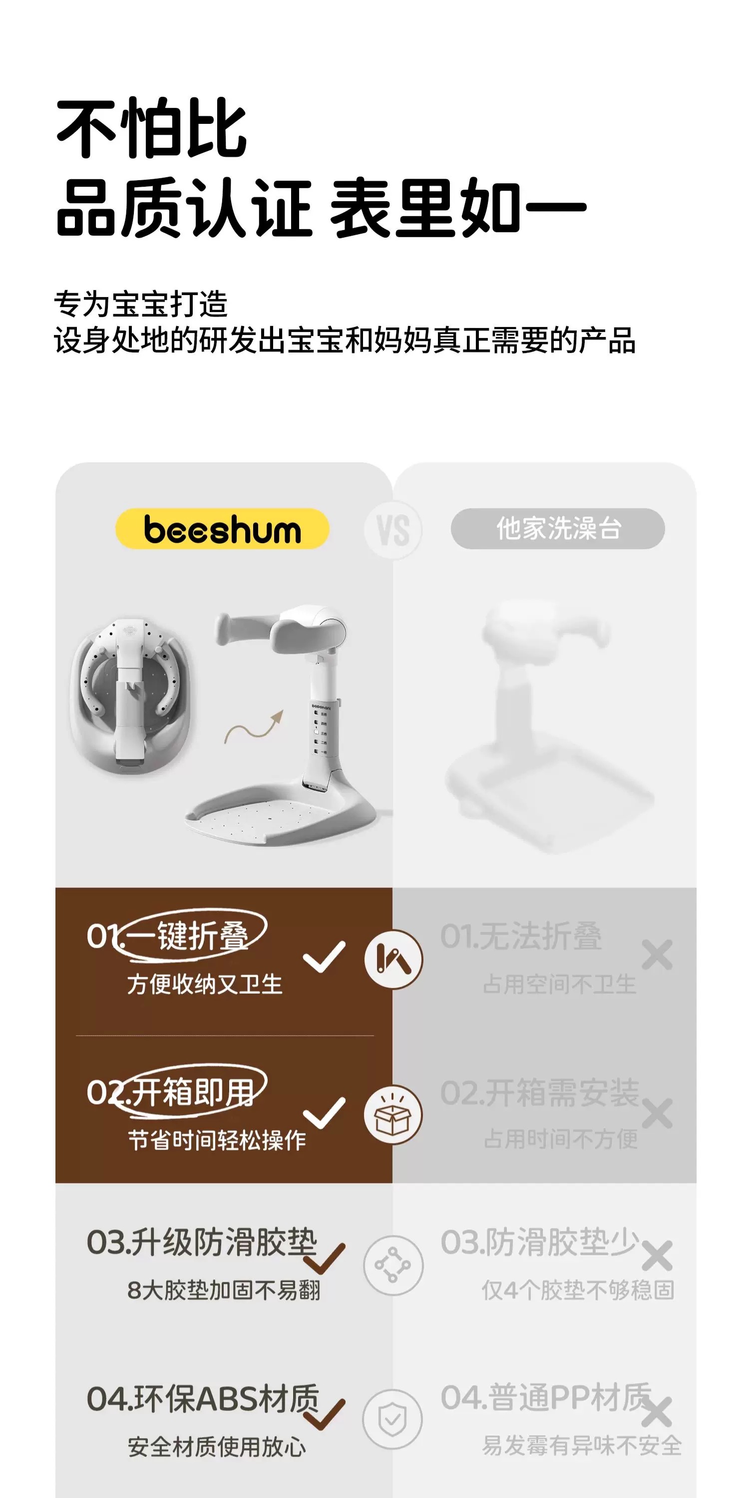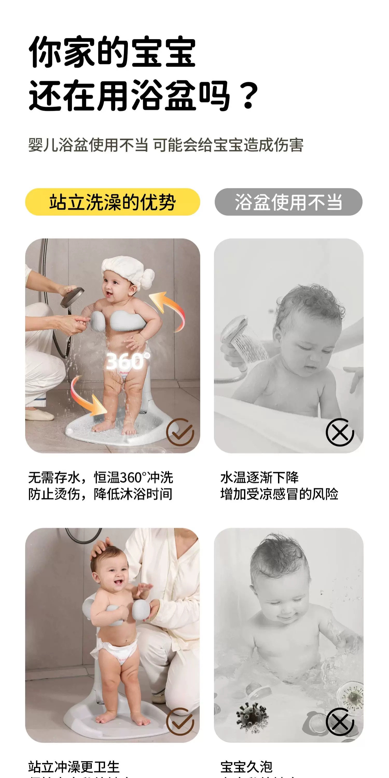 beeshum宝宝站立洗澡神器婴儿童洗澡盆桶可折叠洗头屁屁神器便携