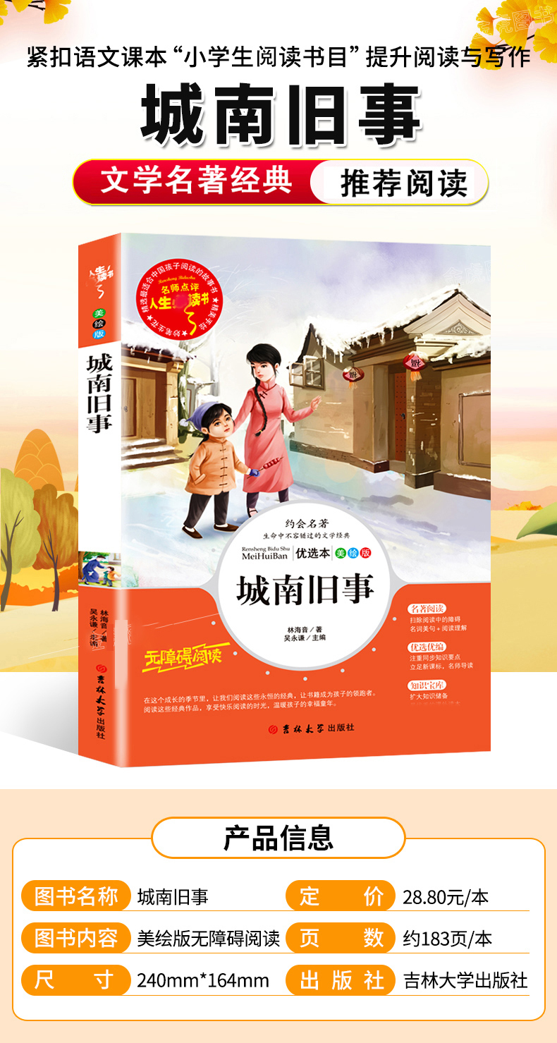 人生必读书:城南旧事(美绘版)描写了二十世纪二十年代,北京城南一座四合院里,住着英子温暖和睦的一家。它透过主角英子童稚的双眼,向世人展现了大人世界的悲欢离合,有一种说不出来的天真,却道尽人世复杂的情感。