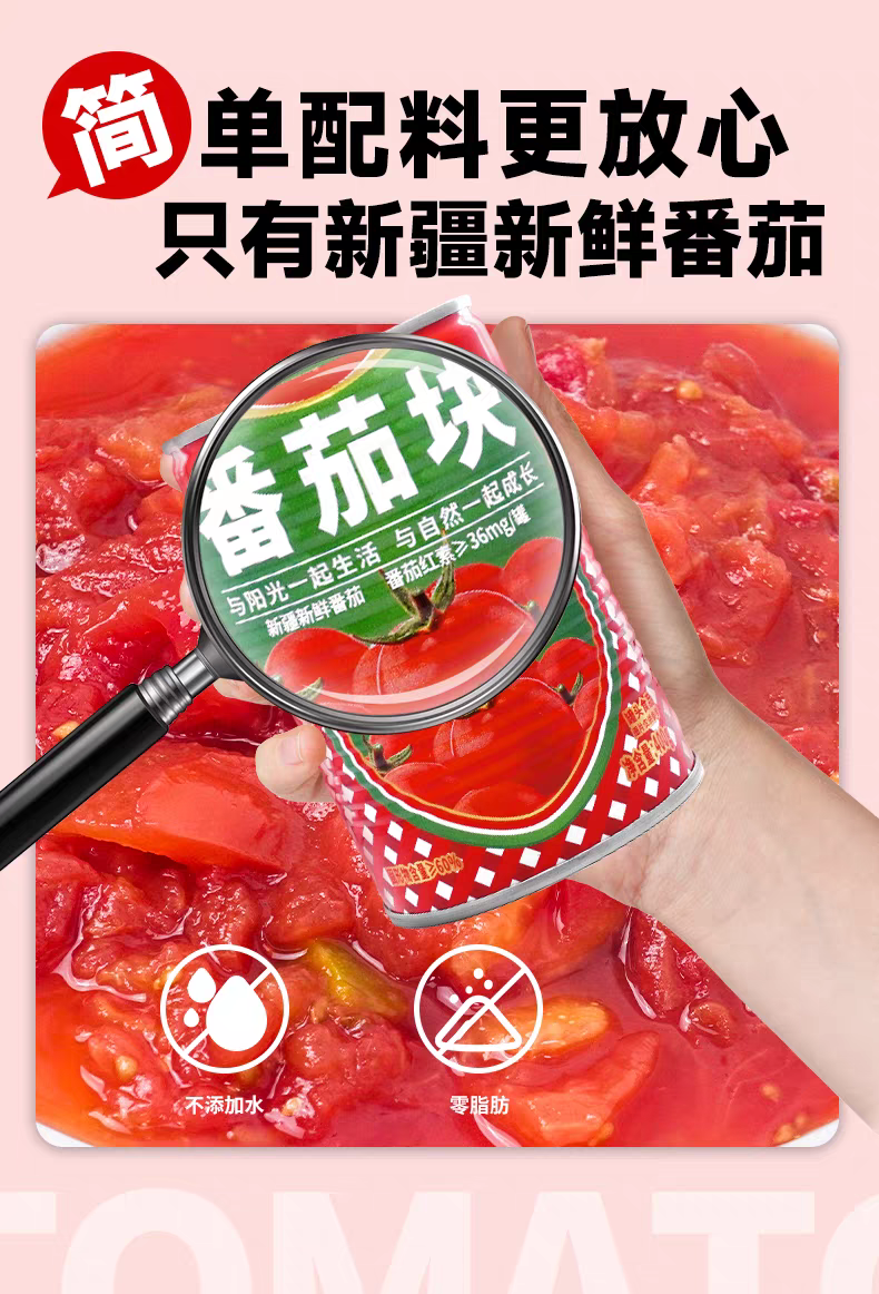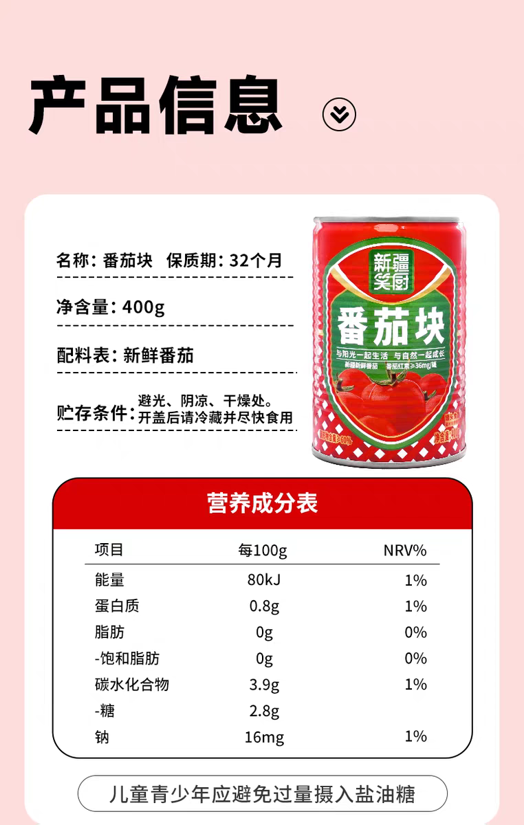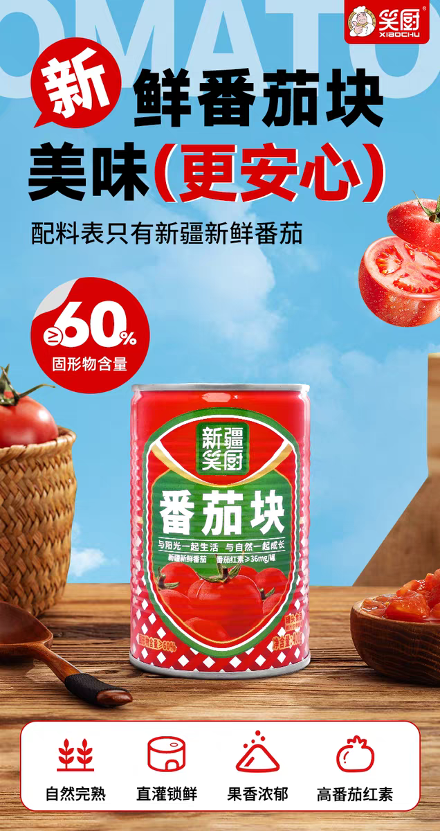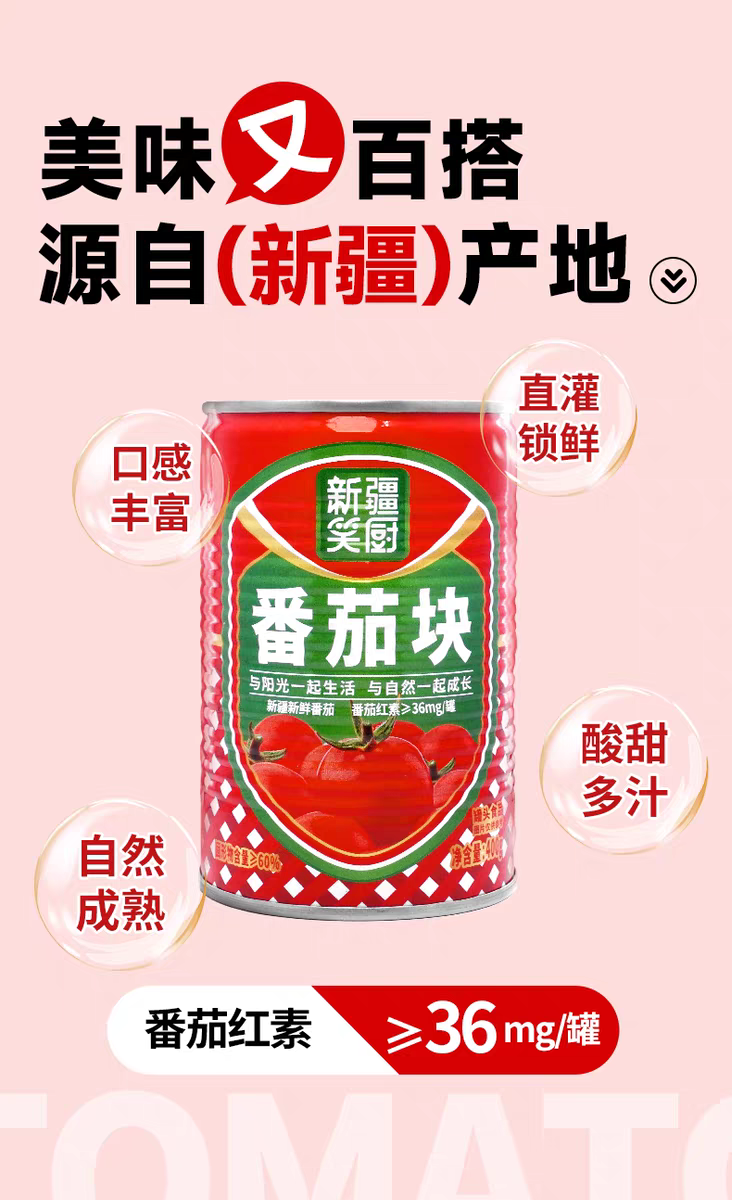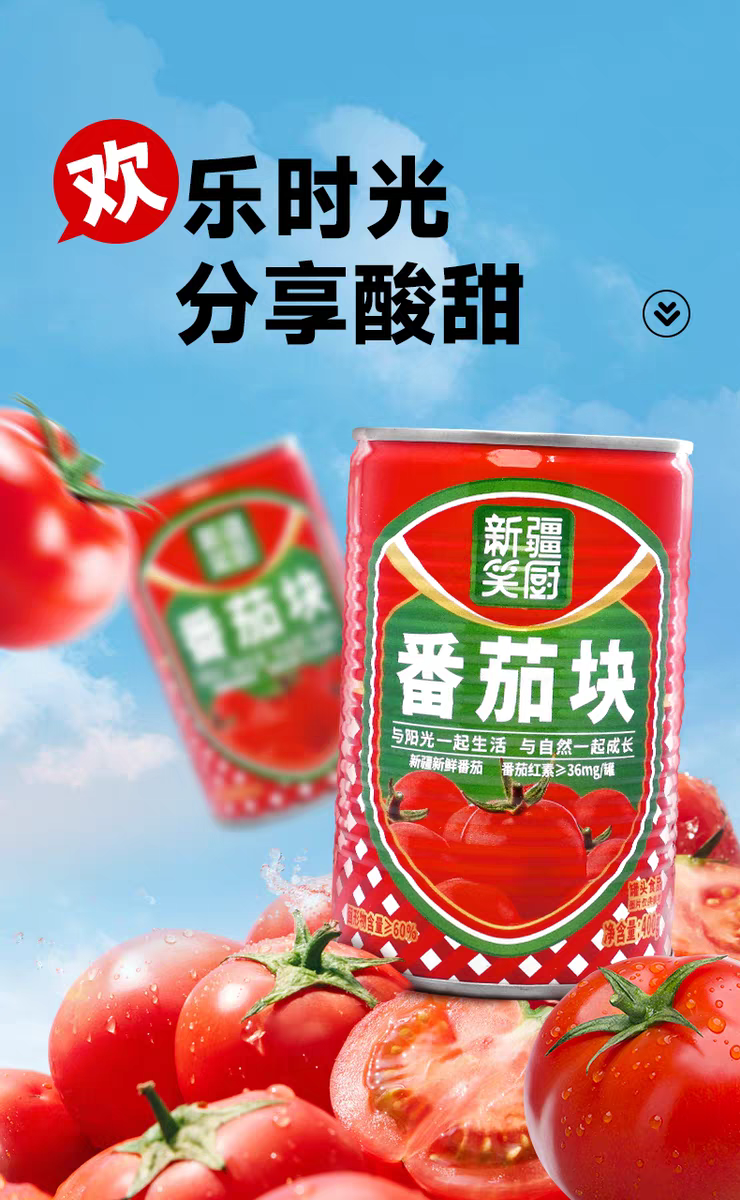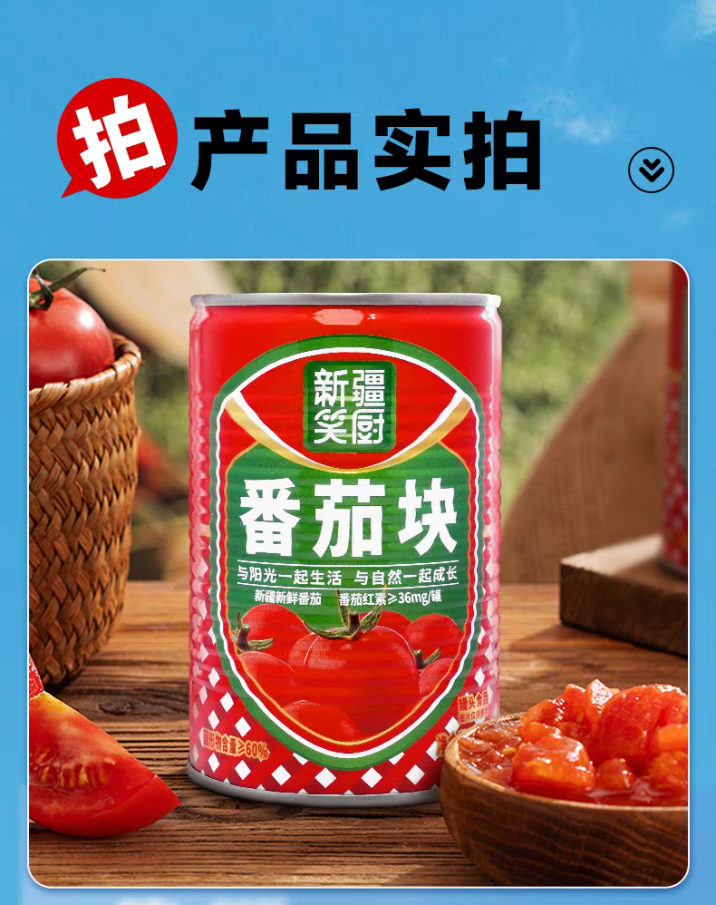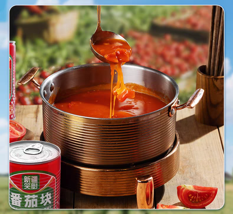 25年新疆新鲜西红柿番茄块罐头 配料干净无添加 400克/罐