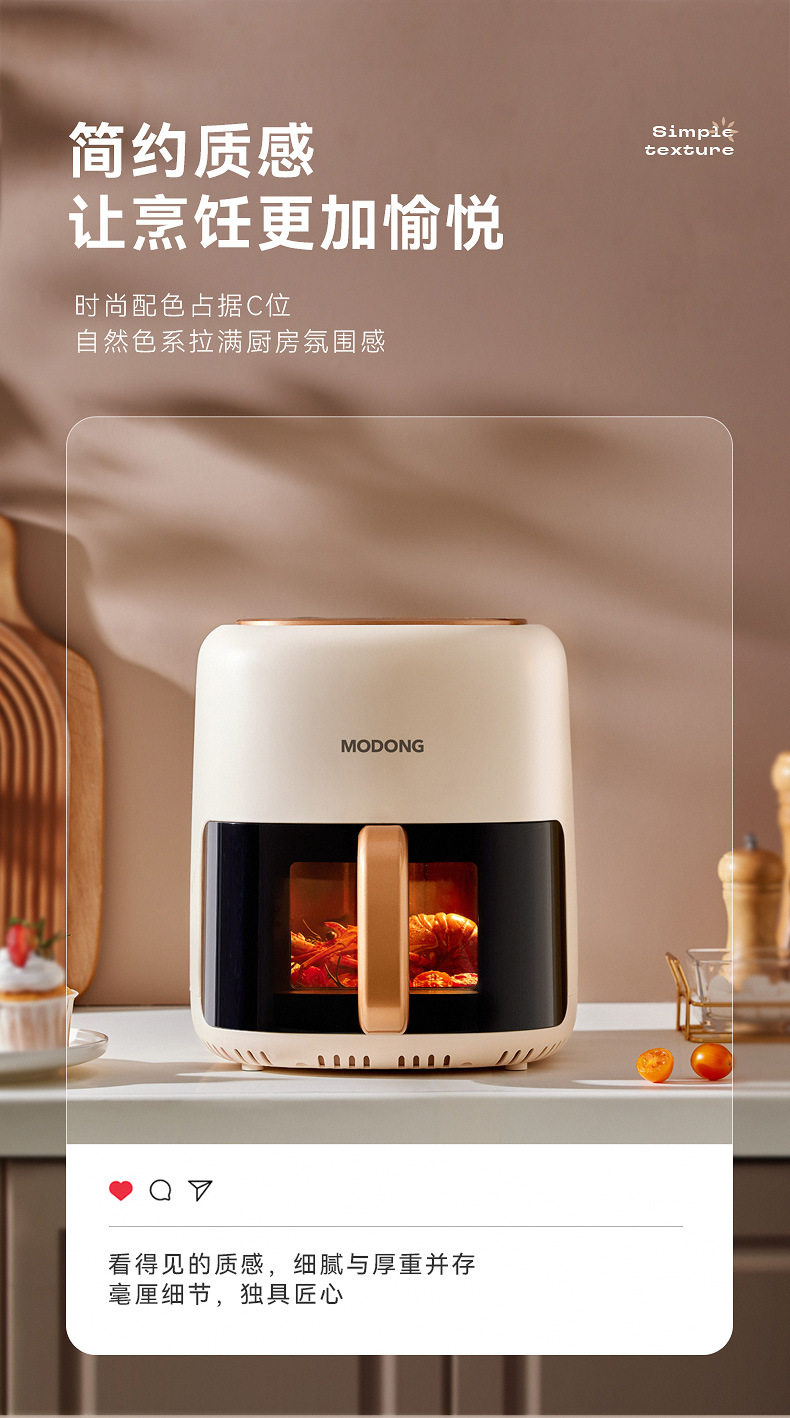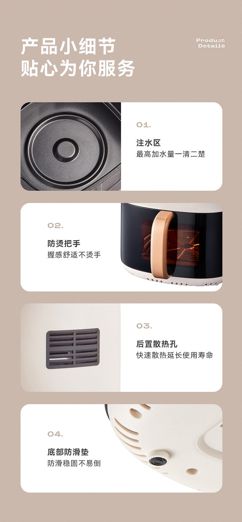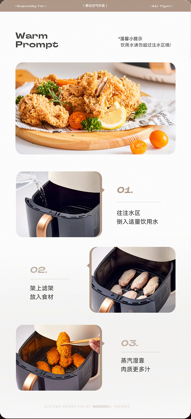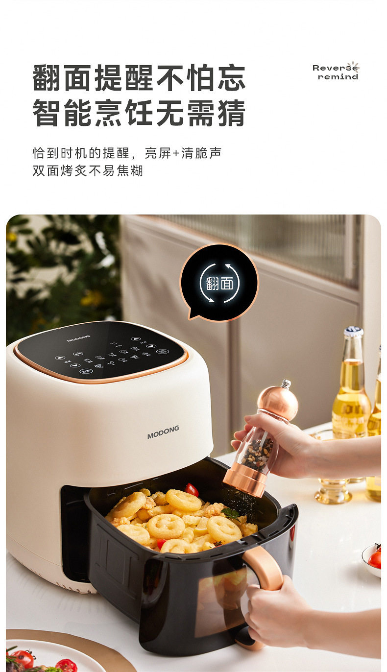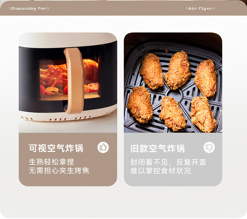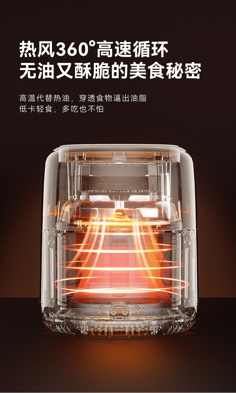 3.热风360°高速循环,高温代替热油,穿透食物逼出油脂,低卡轻食,多吃也不怕