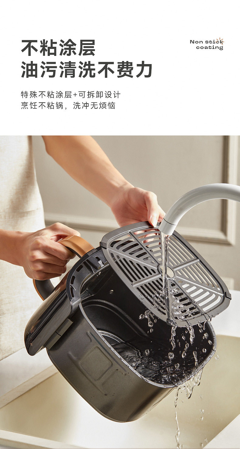 7.炸篮不粘涂层,可拆卸设计,烹饪不粘锅,冲洗无烦恼