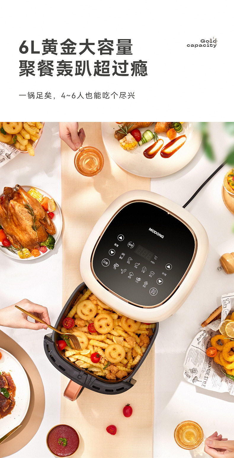 1.6L黄金大容量,无需再次烤炸,聚餐轰趴超过瘾,4~6人亦能吃个尽兴