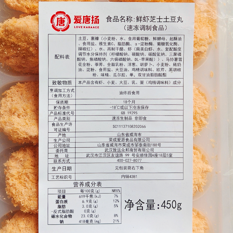 爱唐扬鲜虾芝士土豆丸450g(顺丰发货)