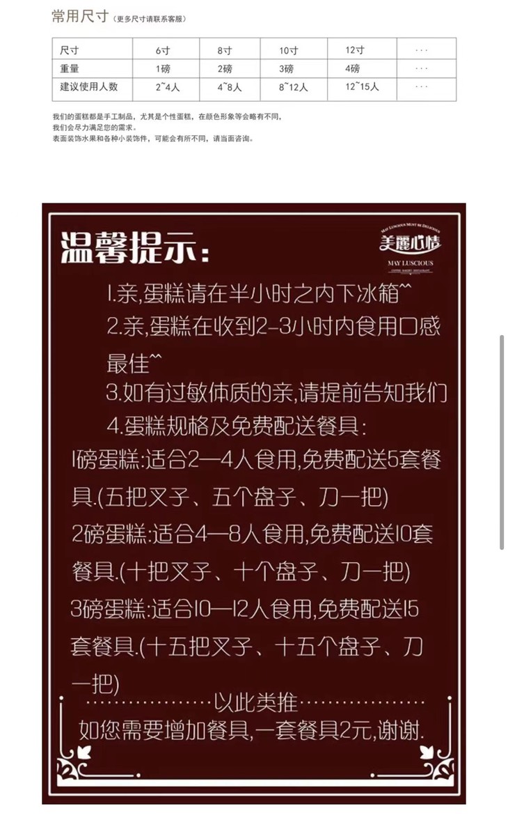 蛋糕为纯手工制作,非机器制作,不能保证100%完全一样。颜色以及卡通人物等
