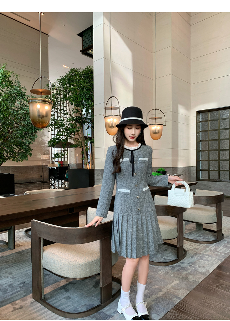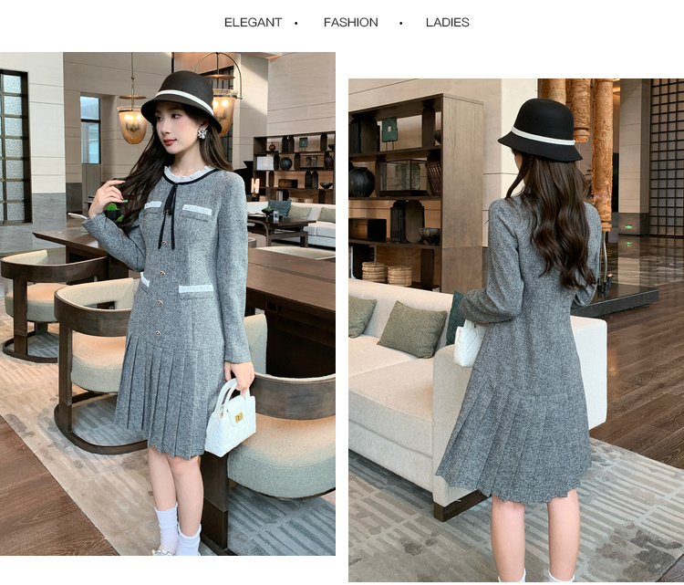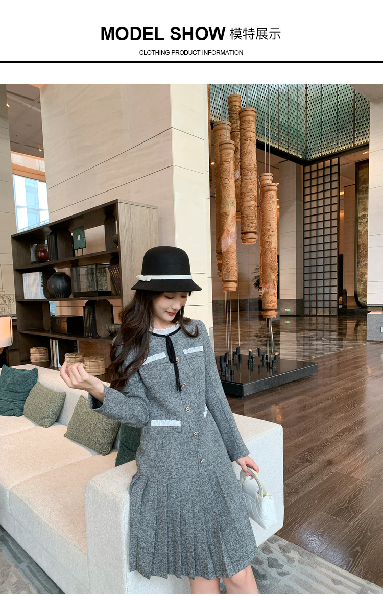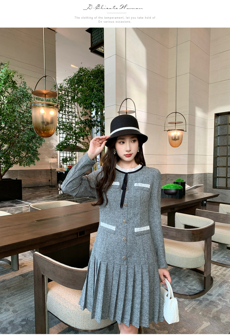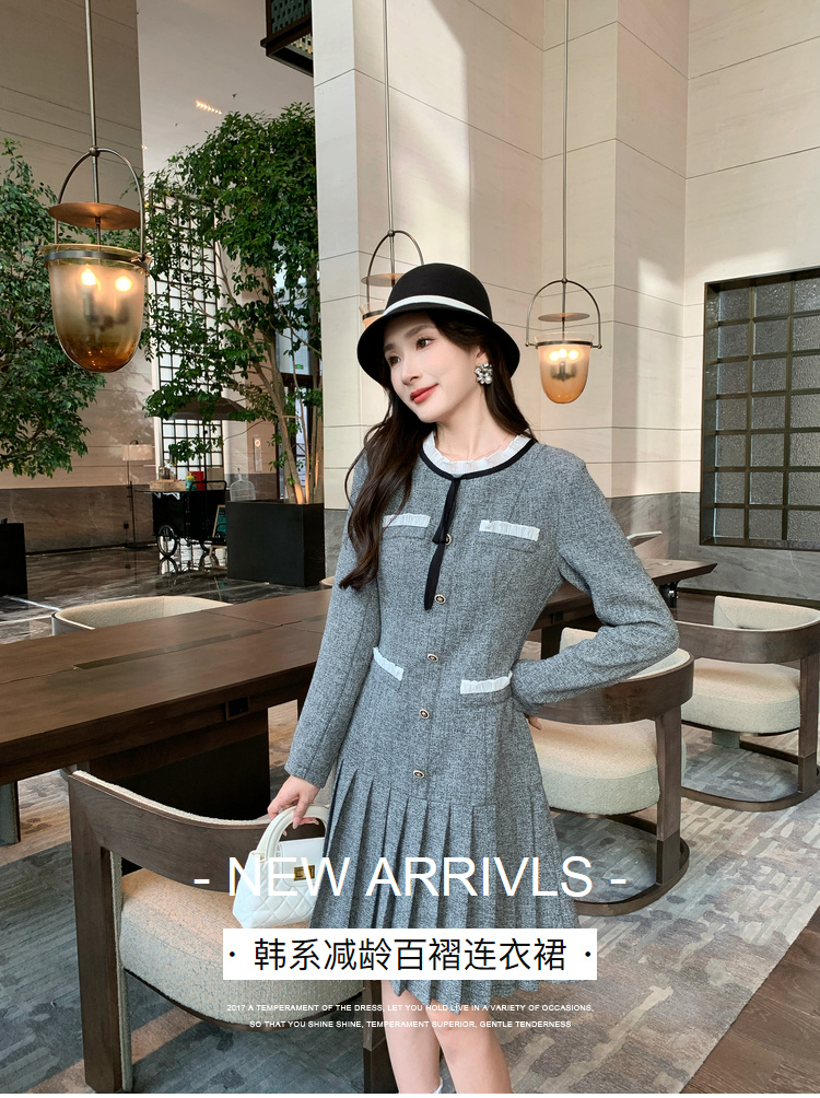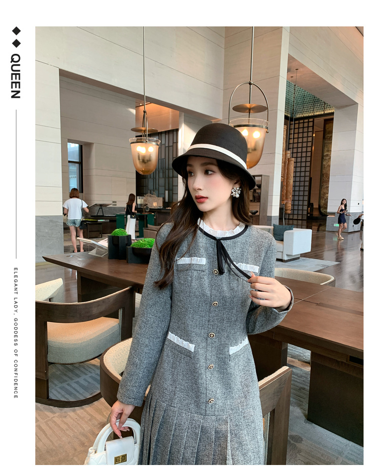 奢姿2024年秋季新款大码女装花边拼接裙子胖妹妹韩系百褶连衣裙9943890201