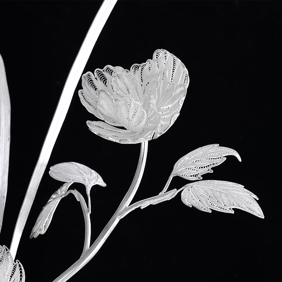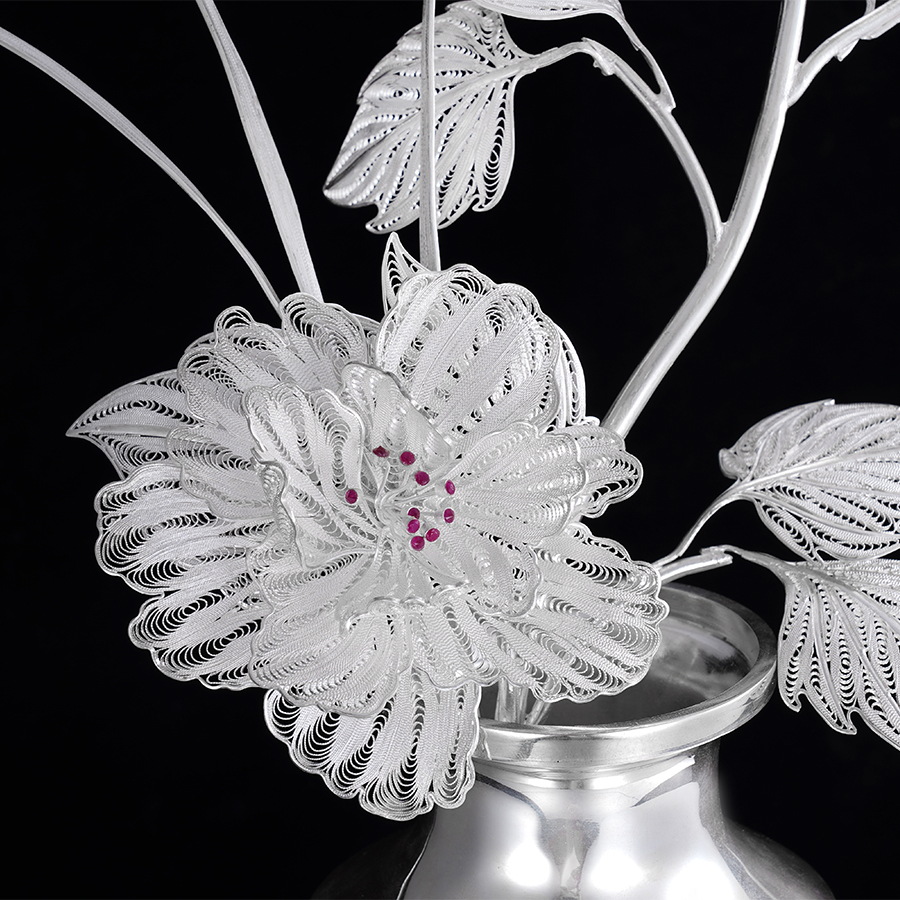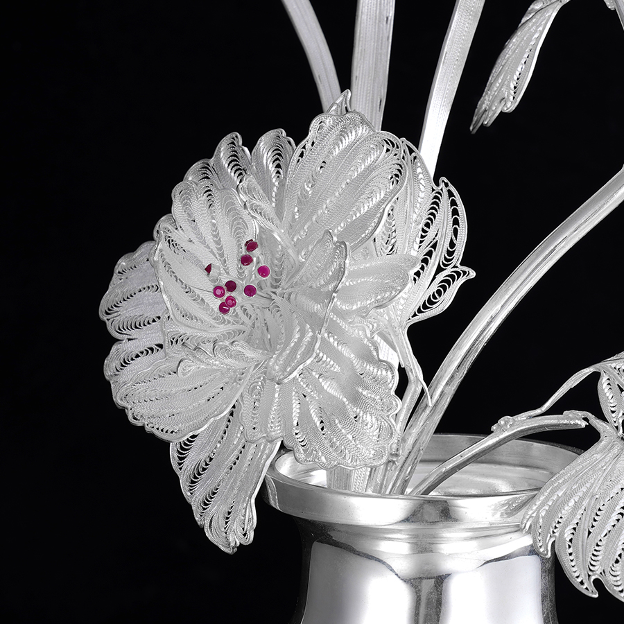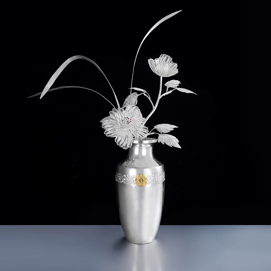 子佩集S999银手工银花丝【芙花鸢影】花丝镶嵌插花瓶大师工坊原创设计【FHYYHP】(而已店)