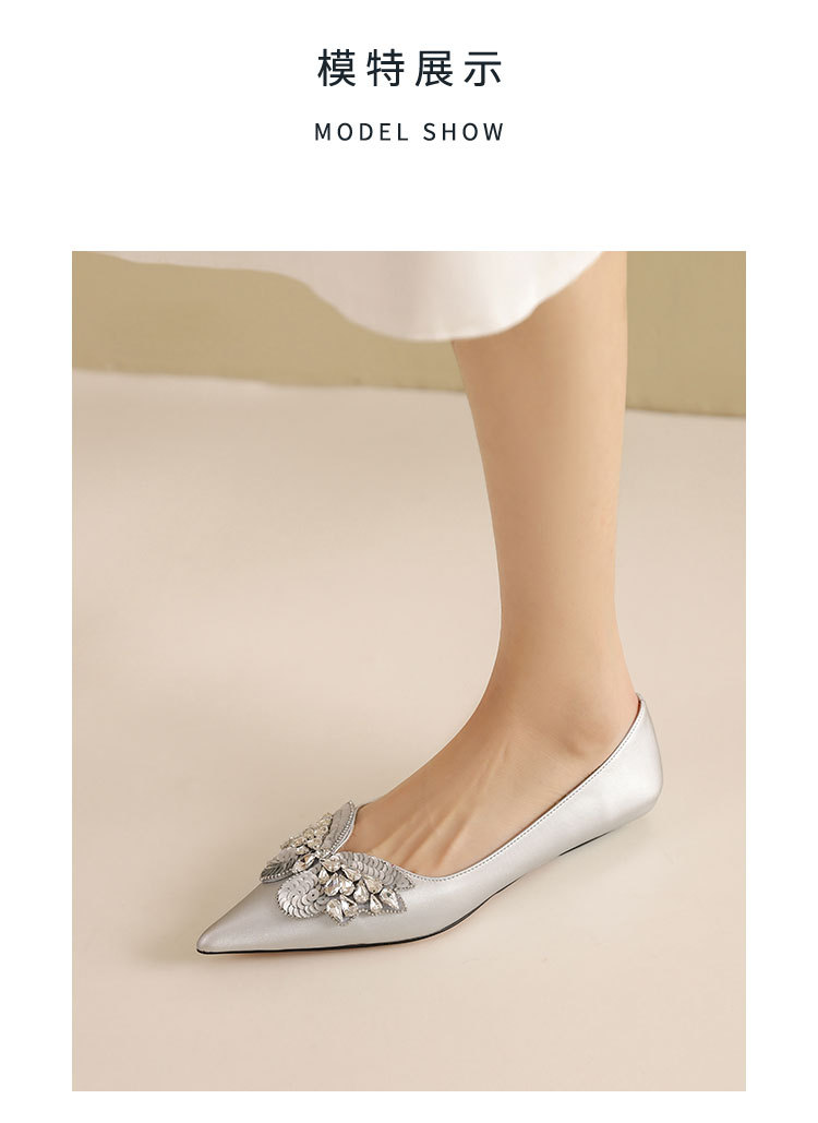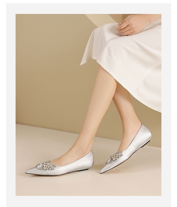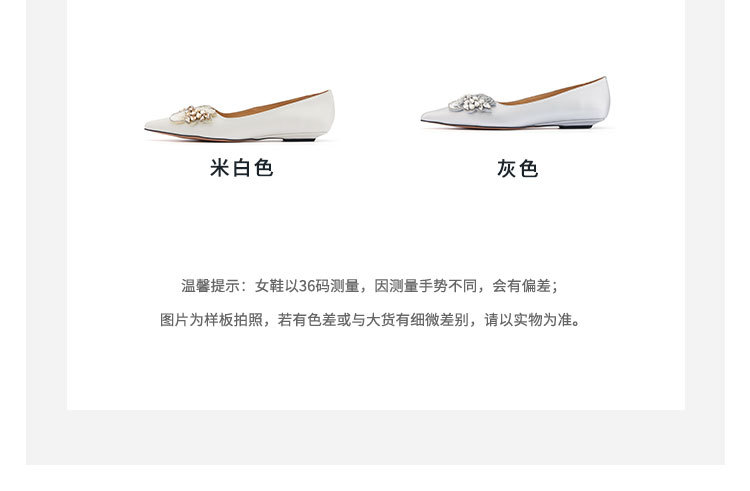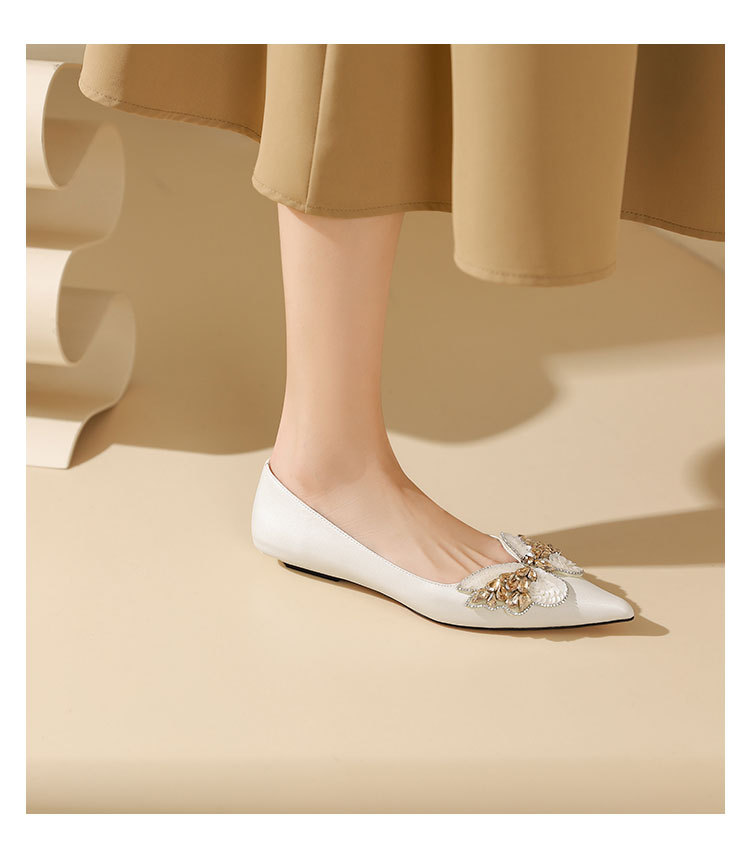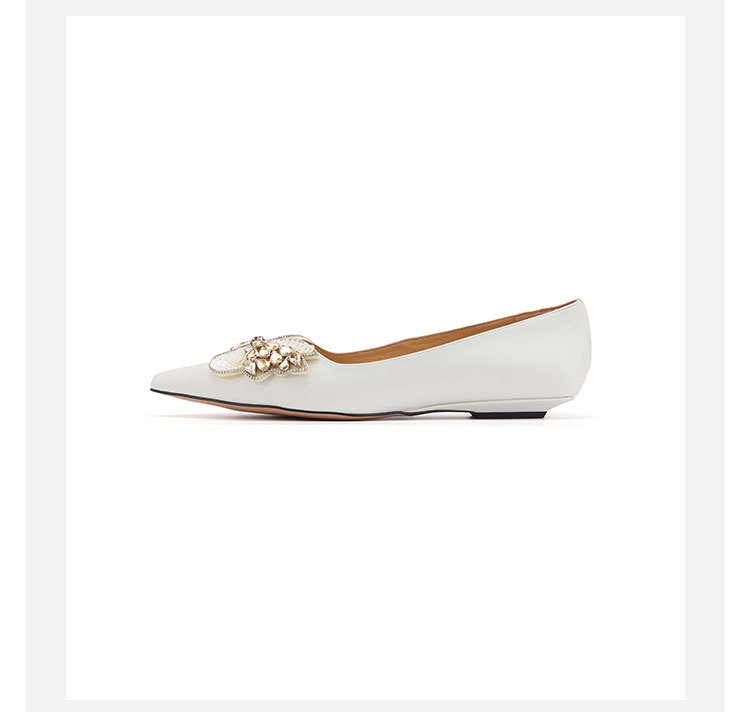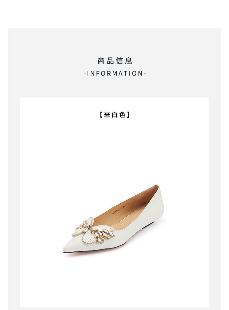 westory2022年夏季新款小熊蝴蝶结真皮尖头浅口平底单鞋女W22AE54981