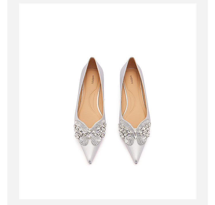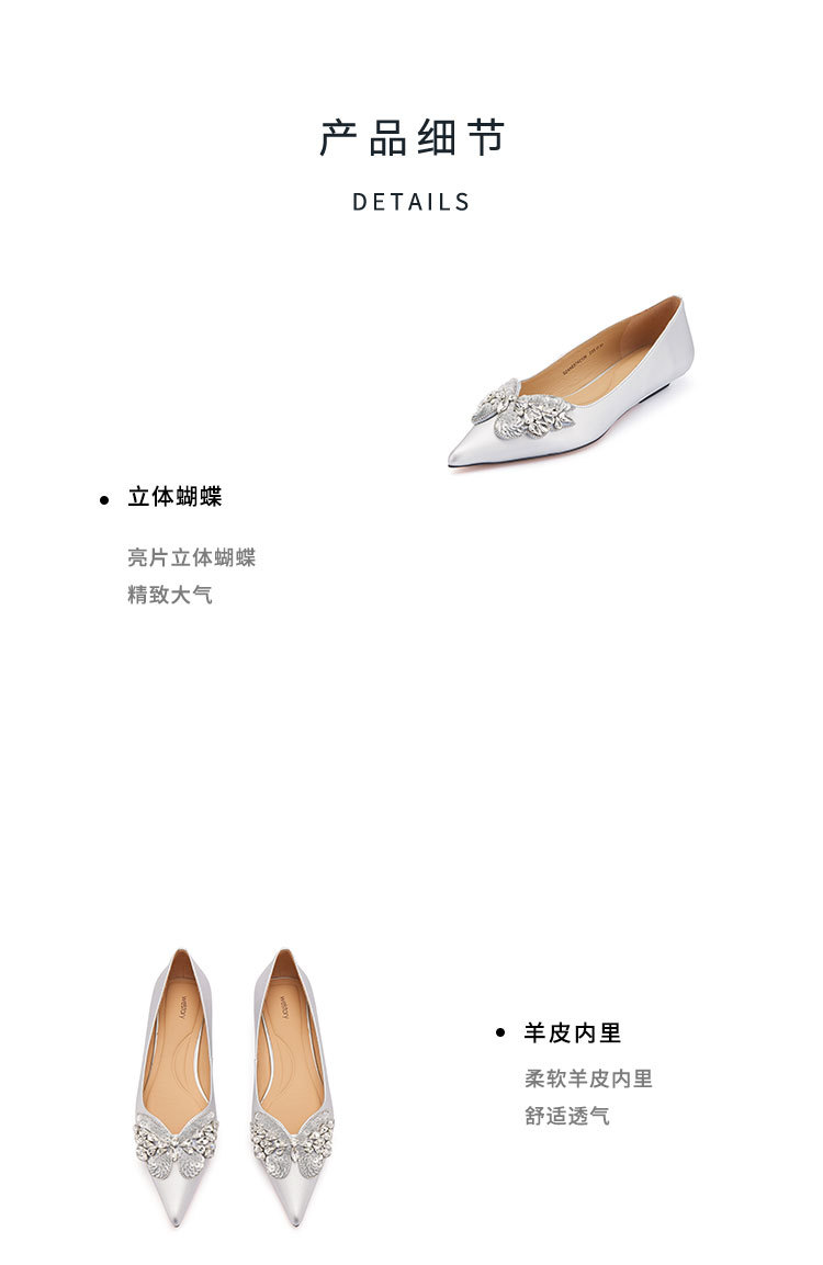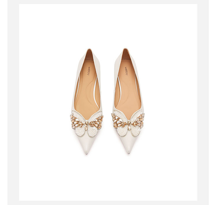 westory2024春季新款低平跟尖头蝴蝶结通勤小皮鞋S24AE57421