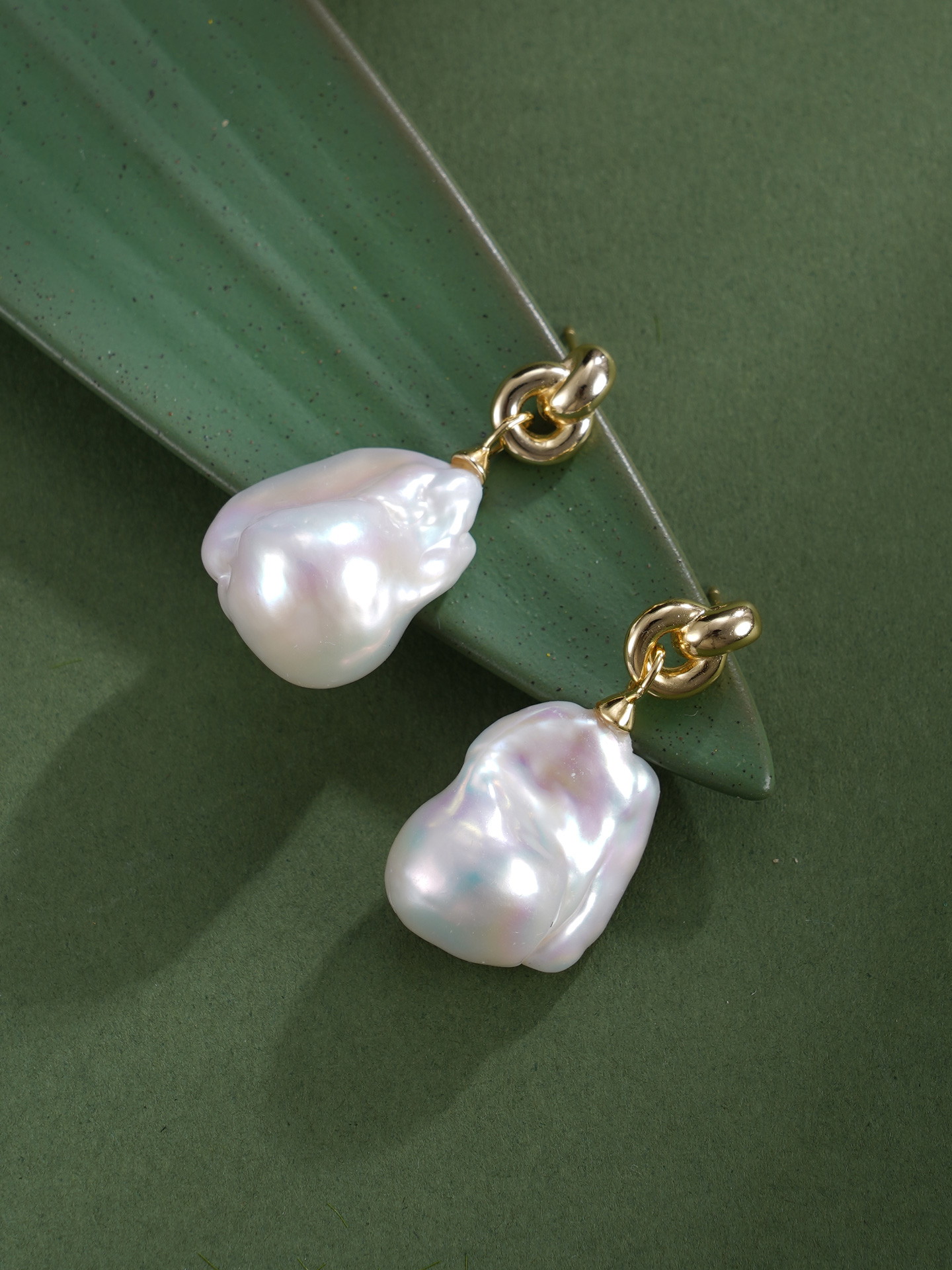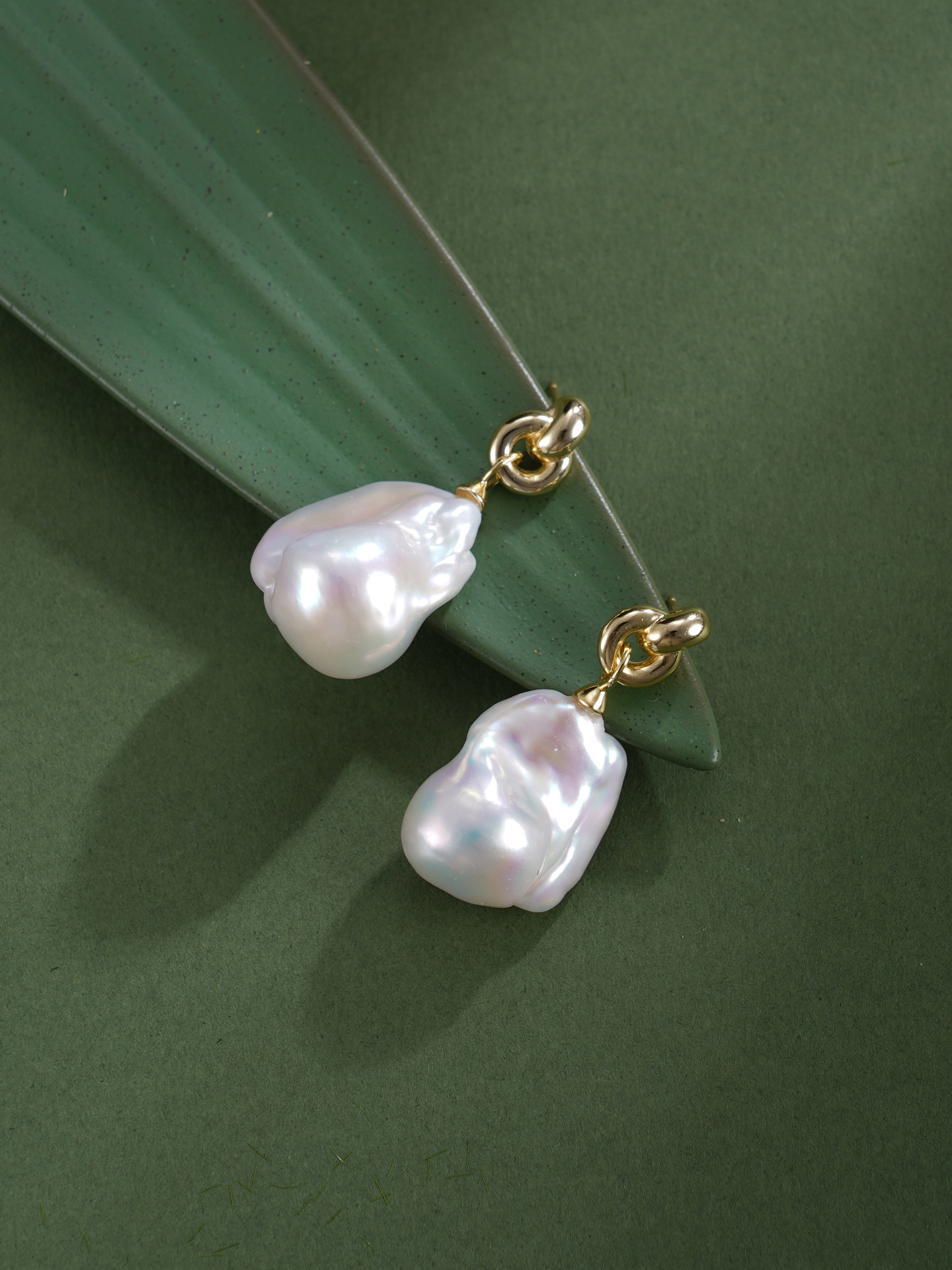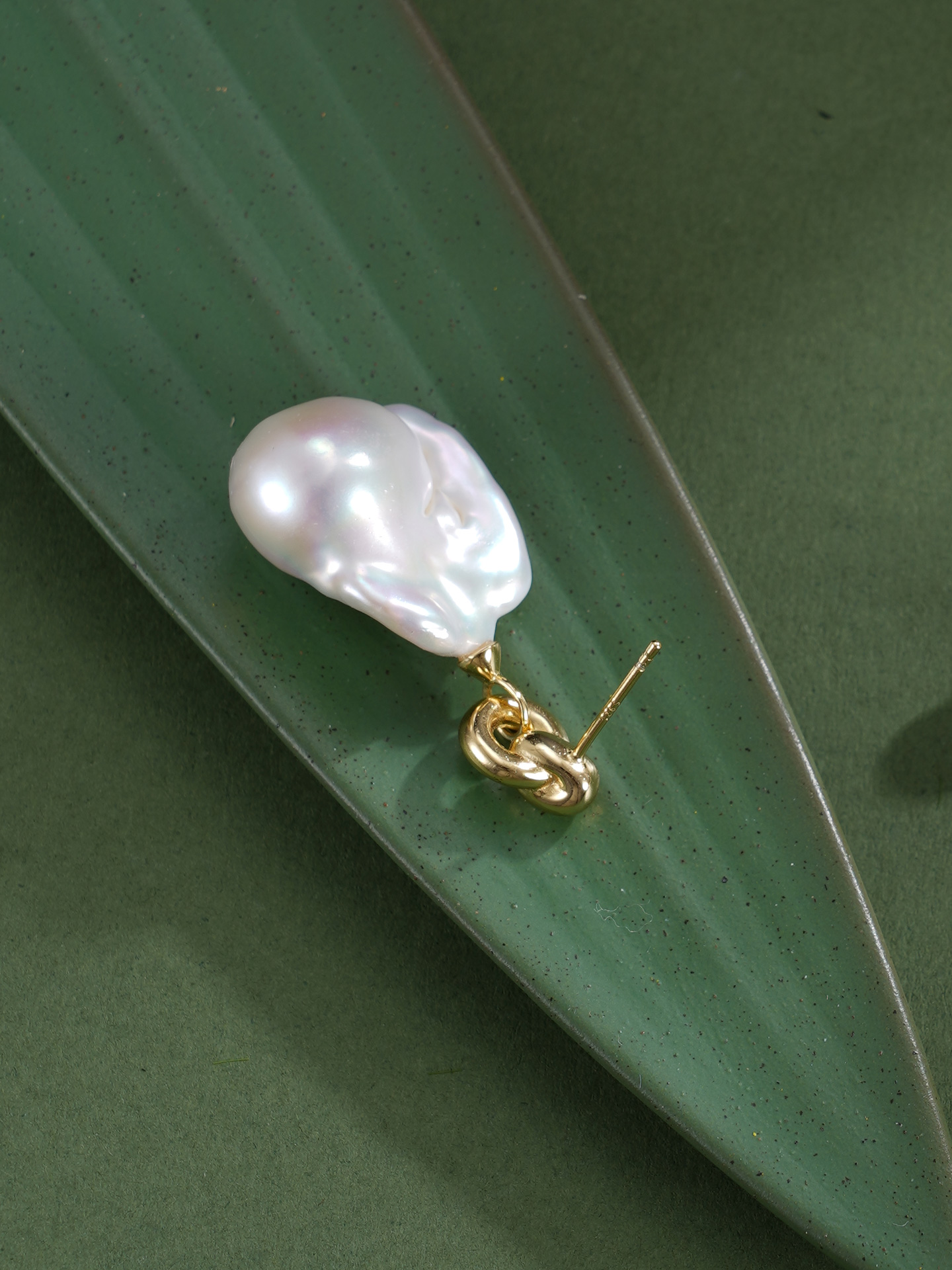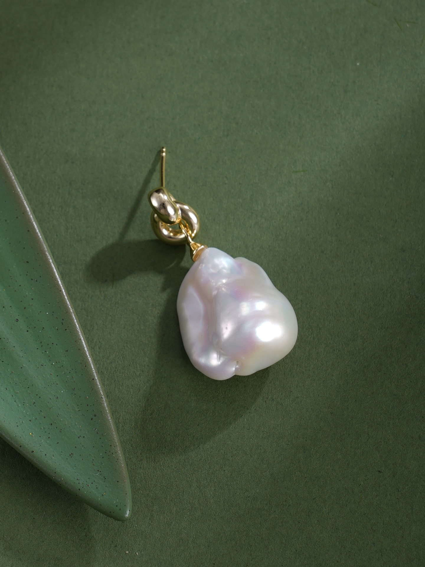 子佩集【月潮共鸣】银S925珍珠惜王妃耳钉【EM3004-XF】巴洛克镀金扣环2602