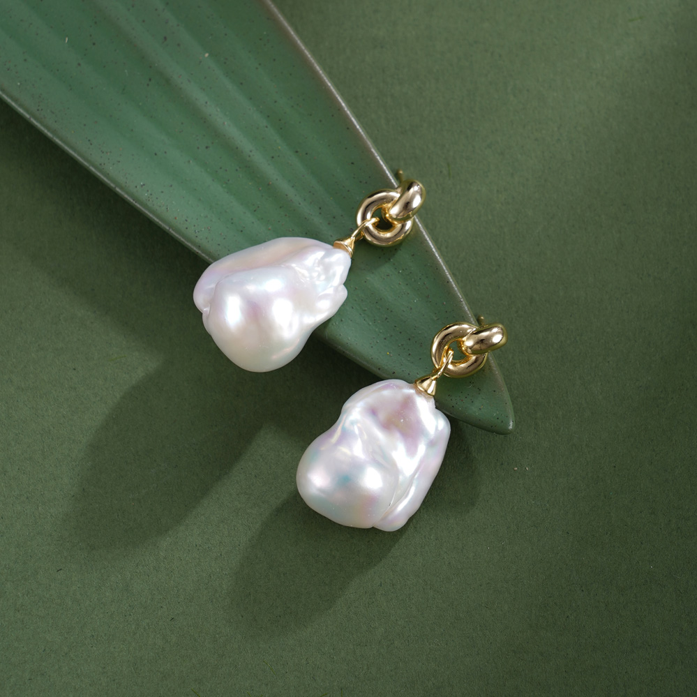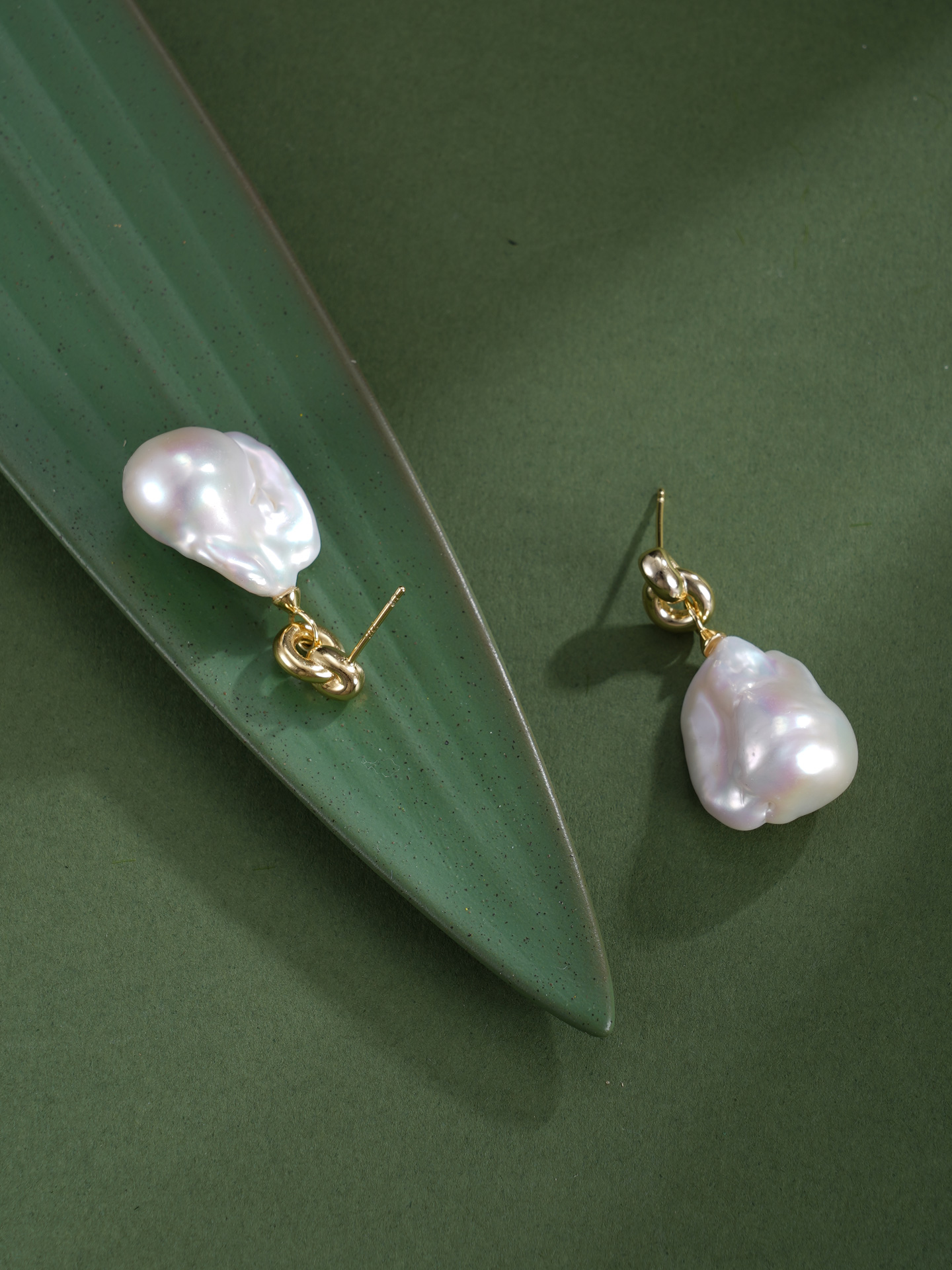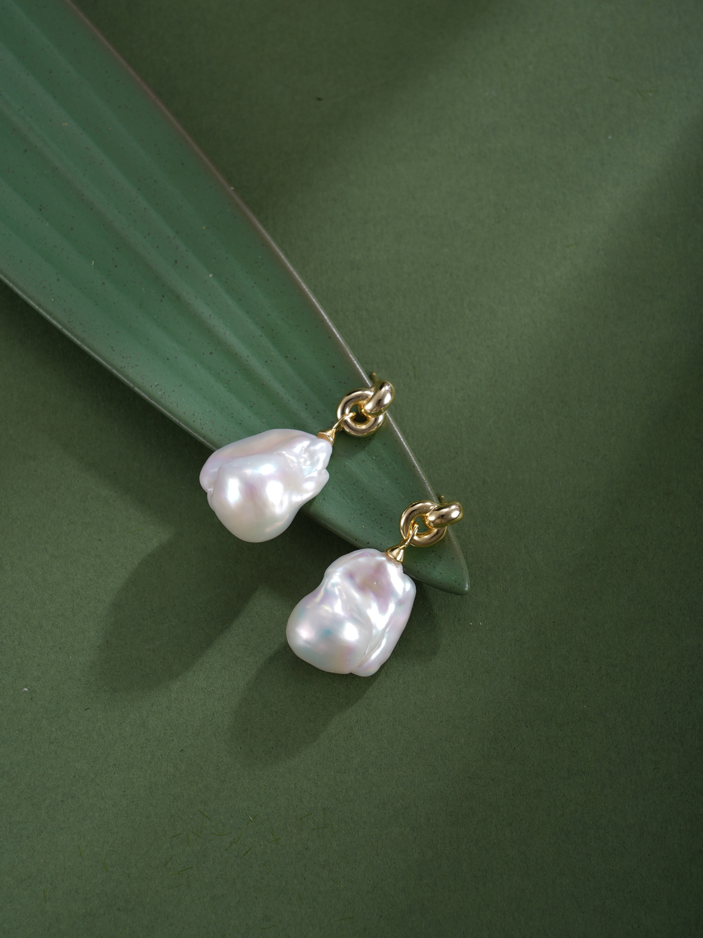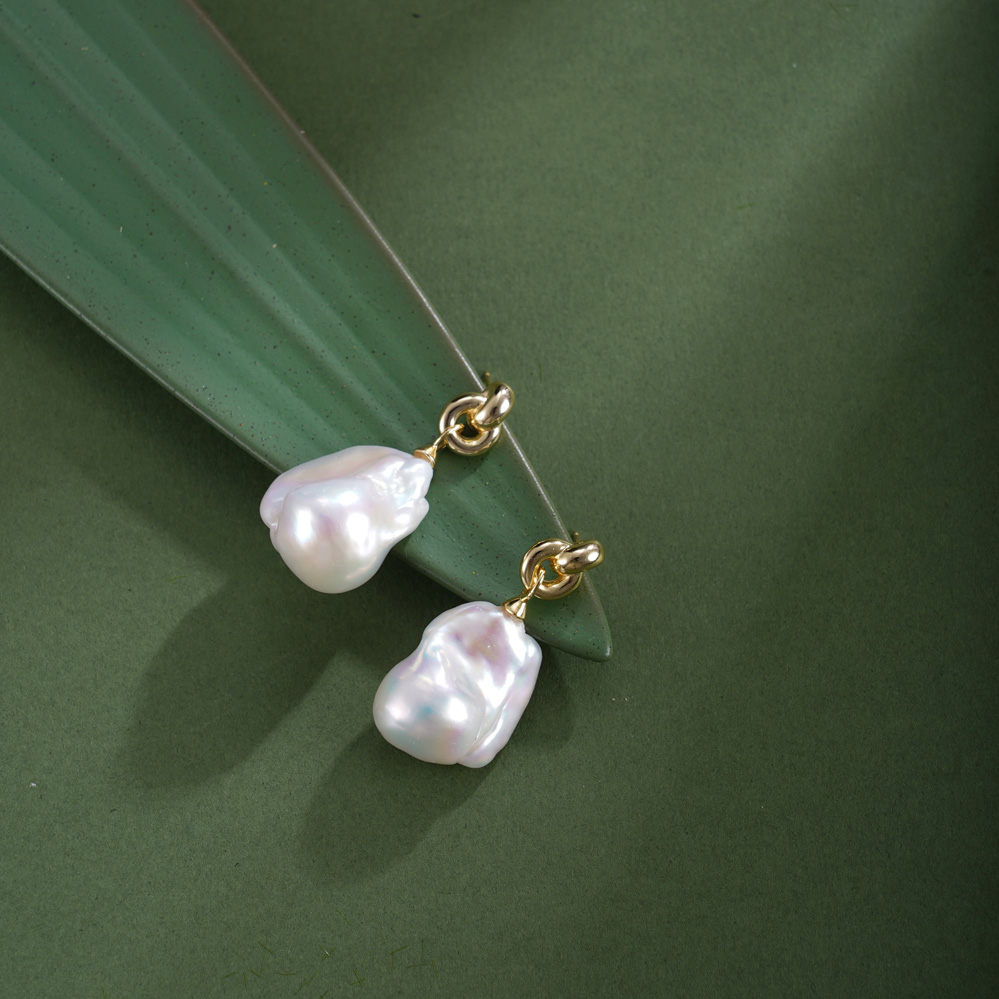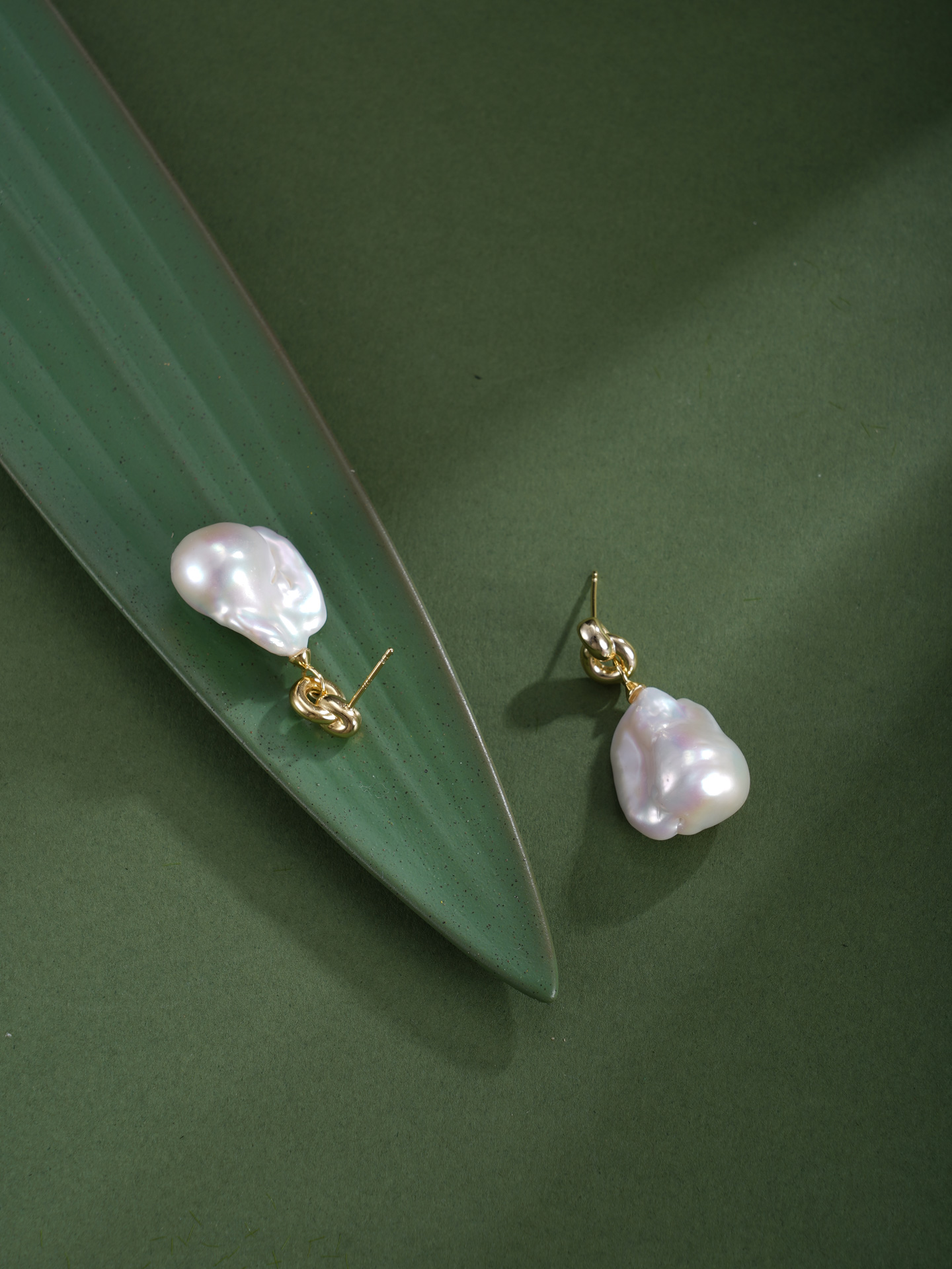 子佩集【月潮共鸣】银S925珍珠惜王妃耳钉【EM3004-XF】巴洛克镀金扣环2602