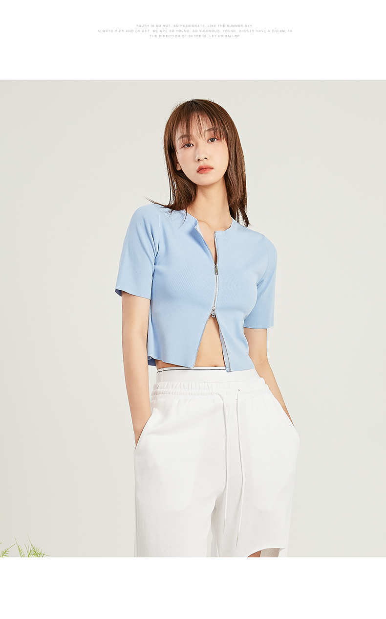 NUTS夏季新款时尚气质风双拉链短袖针织衫221053071