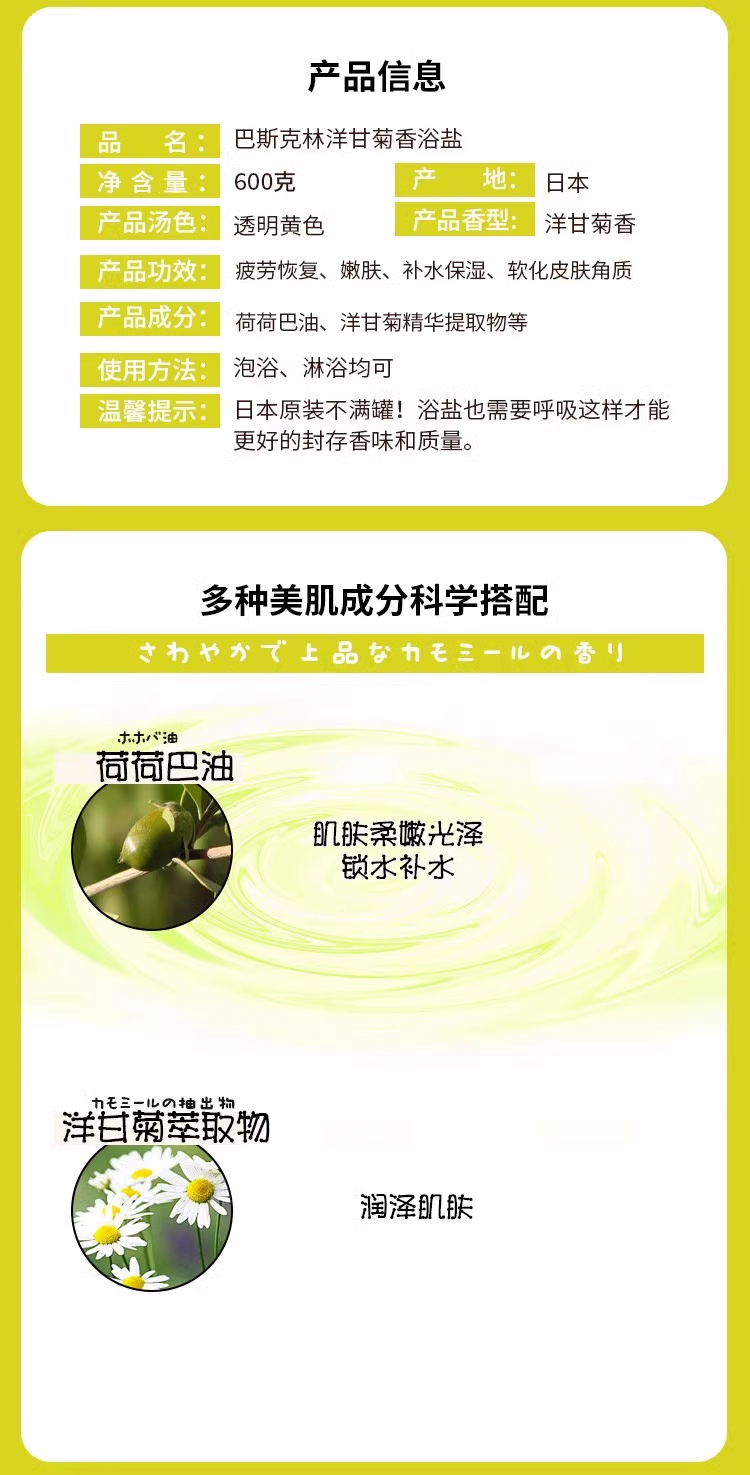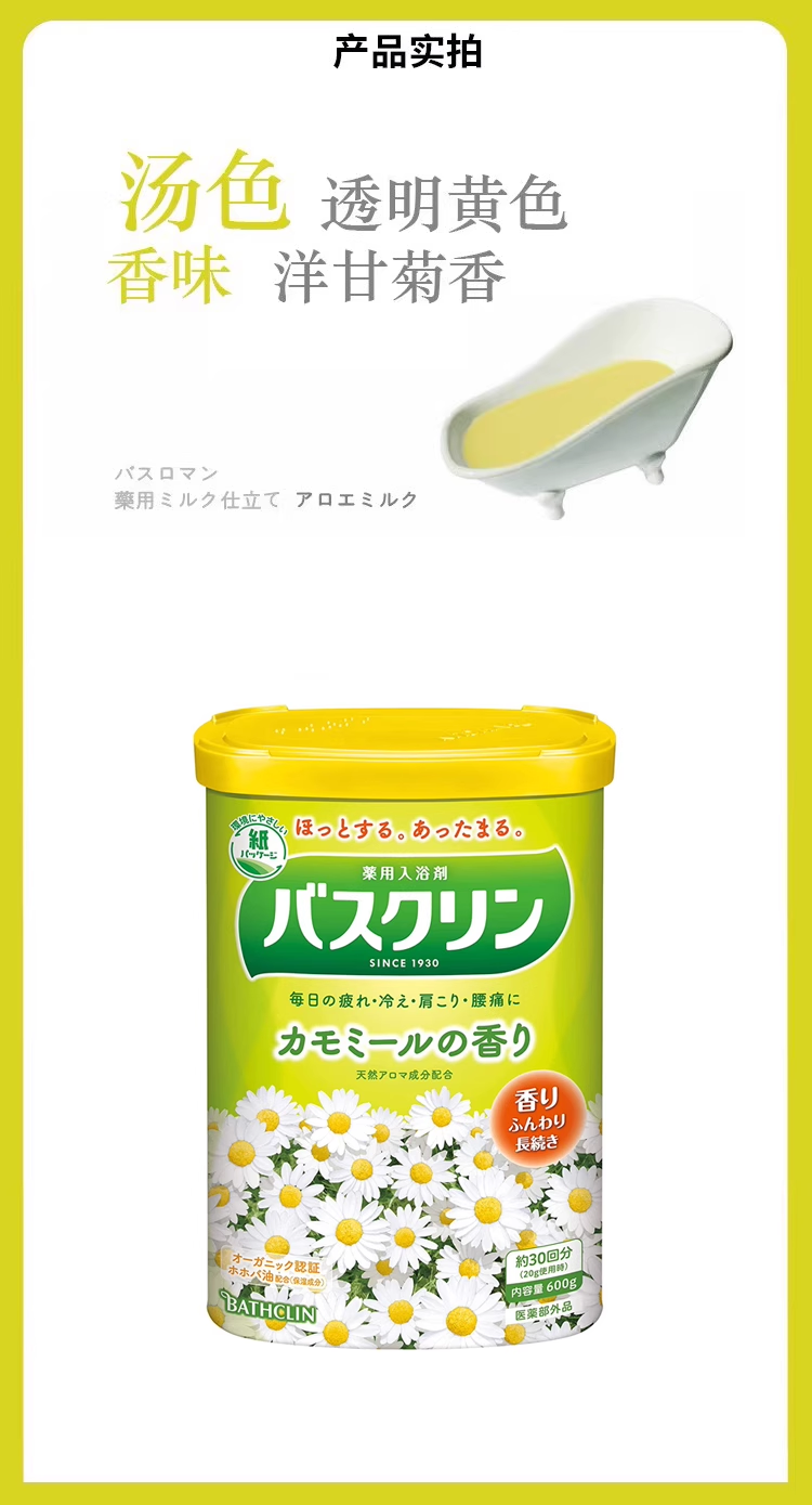 【跨境】Bathclin/巴斯克林浴盐泡澡足浴粉入浴剂小野菊香味600g