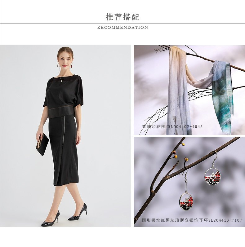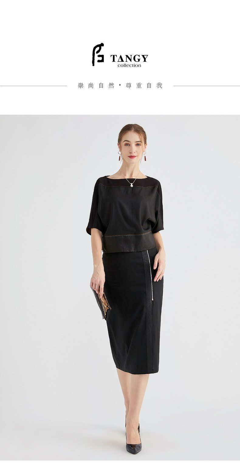 TANGY Collection/天意精品秋冬新品林隐系列通勤风真丝莨绸半身裙
