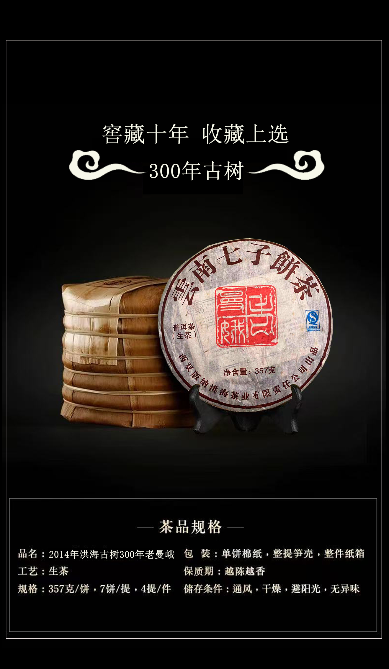 生普 | 【镇店之宝】洪海古树 2014年300年古树春茶 老曼峨357g/饼