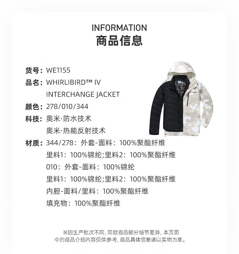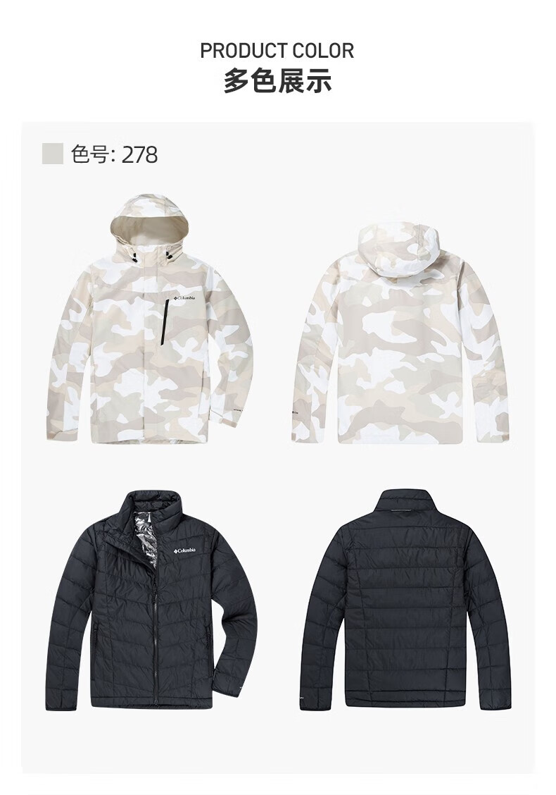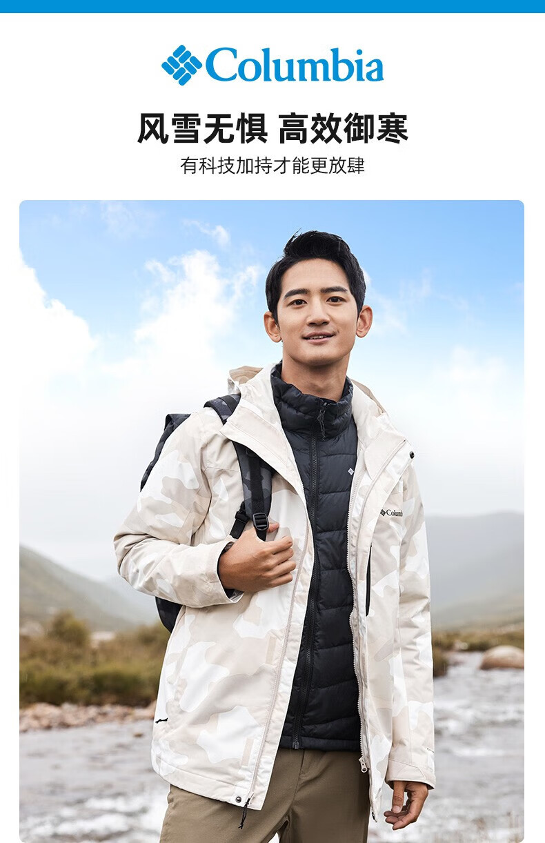 Columbia哥伦比亚户外秋冬新品男热能防水冲锋衣夹棉三合一滑雪服WE1155