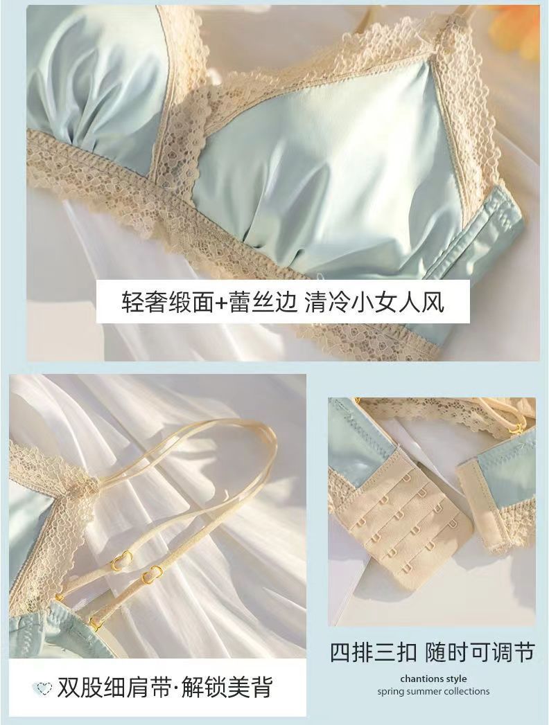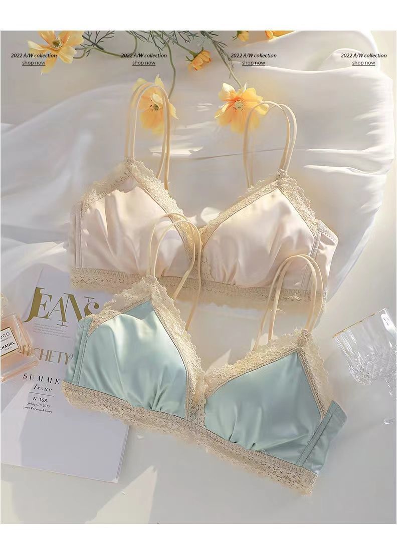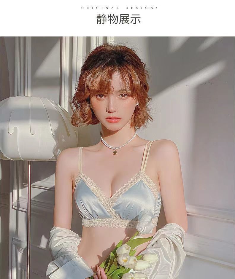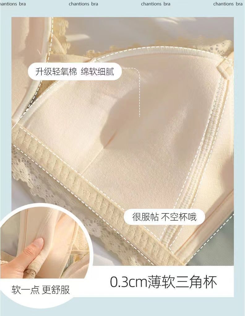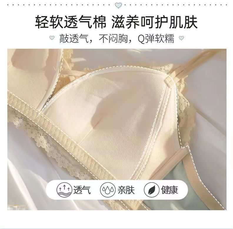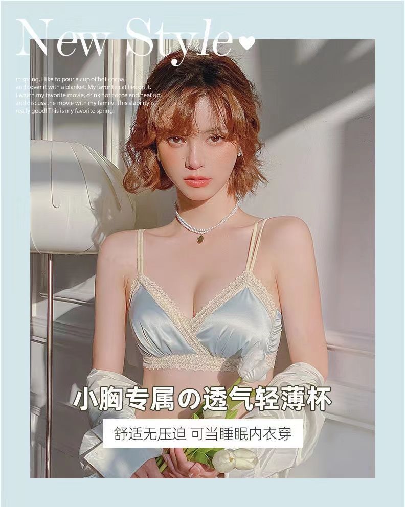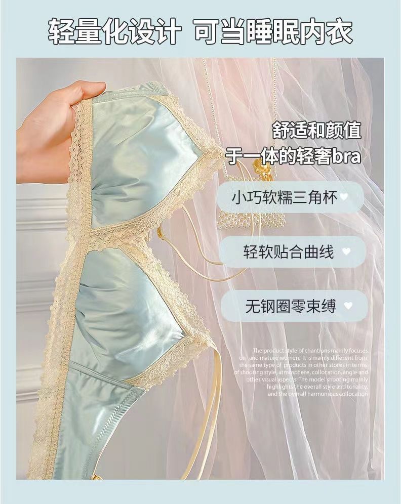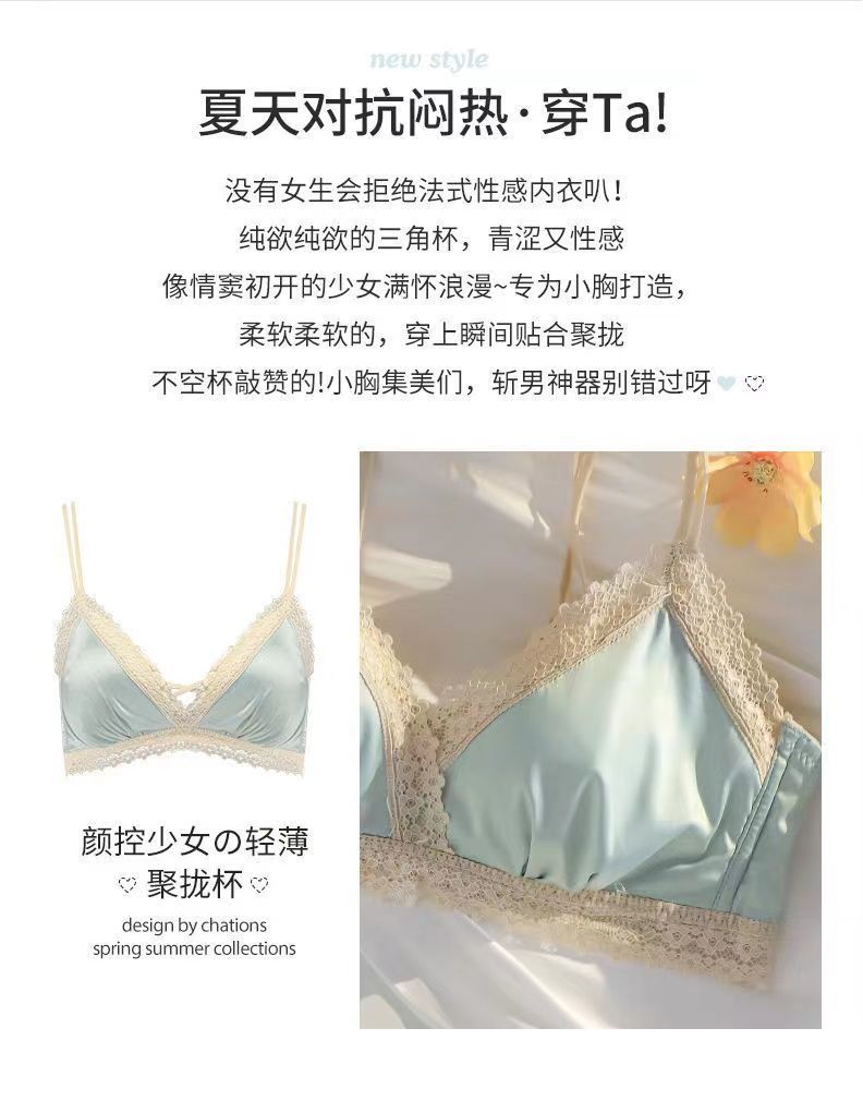 黛唯梵法式三角杯薄款无痕内衣女套装小胸聚拢纯欲少女无钢圈美背文胸罩