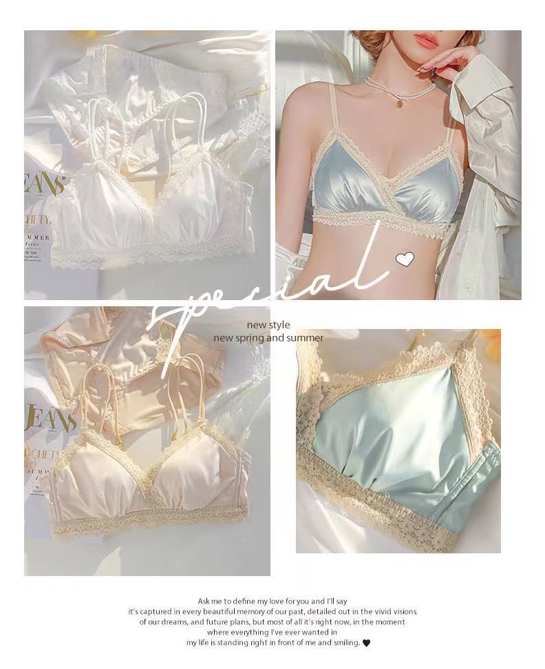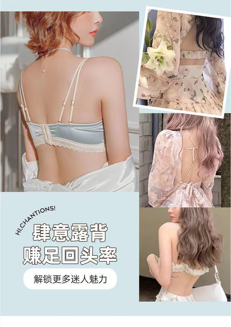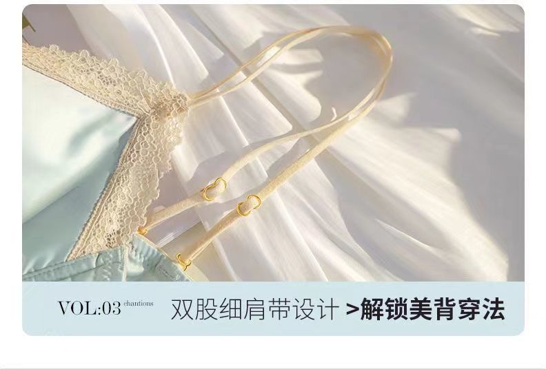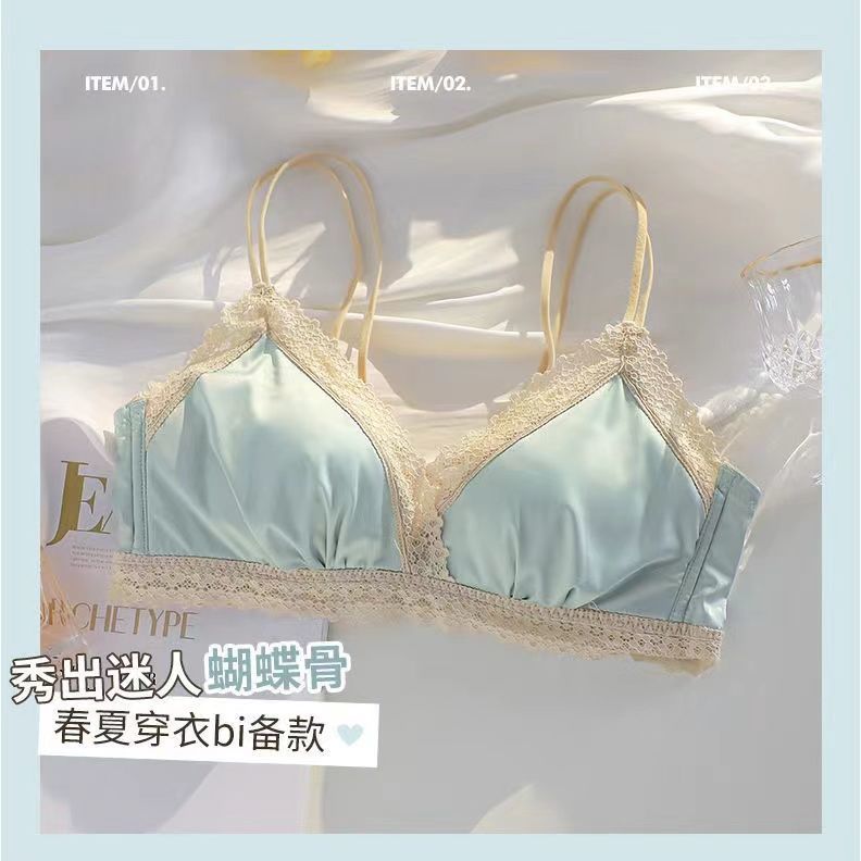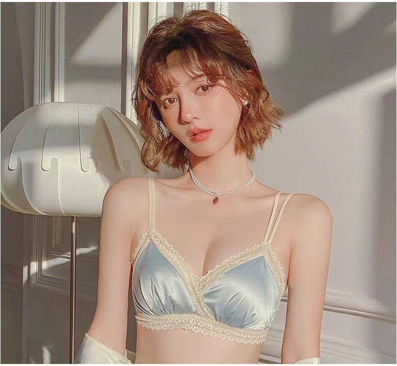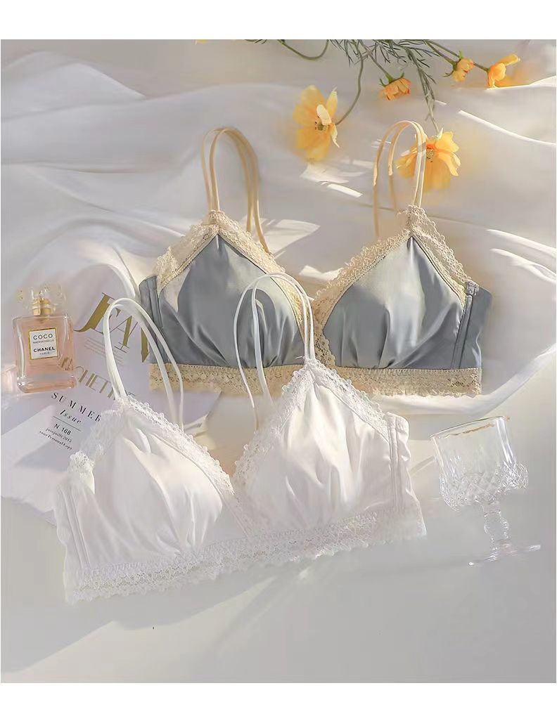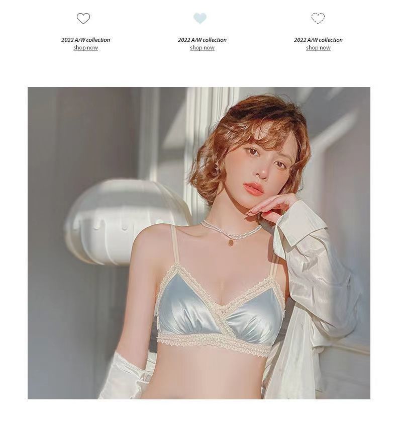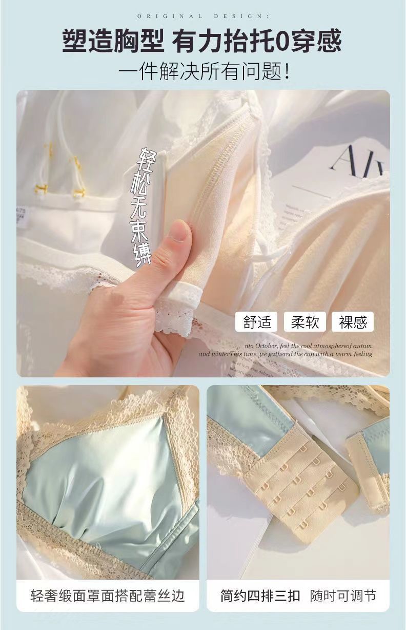 黛唯梵法式三角杯薄款无痕内衣女套装小胸聚拢纯欲少女无钢圈美背文胸罩