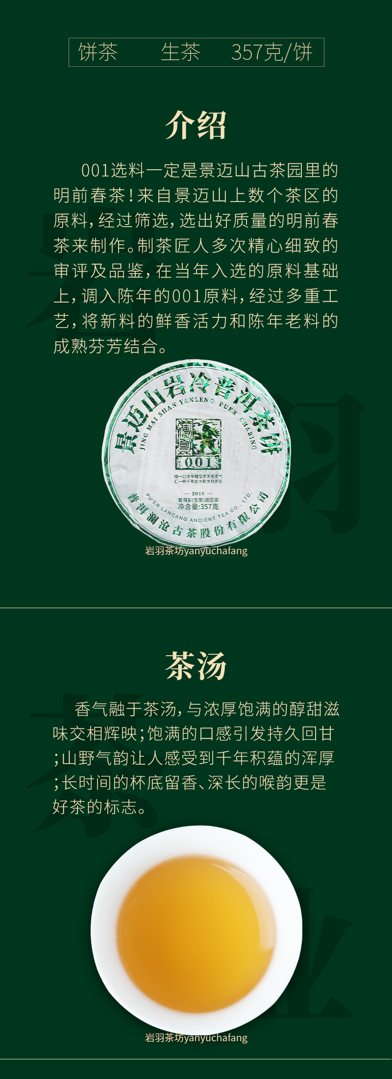 澜沧古茶2018年001大饼普洱茶生茶云南茶叶景迈古树春茶
