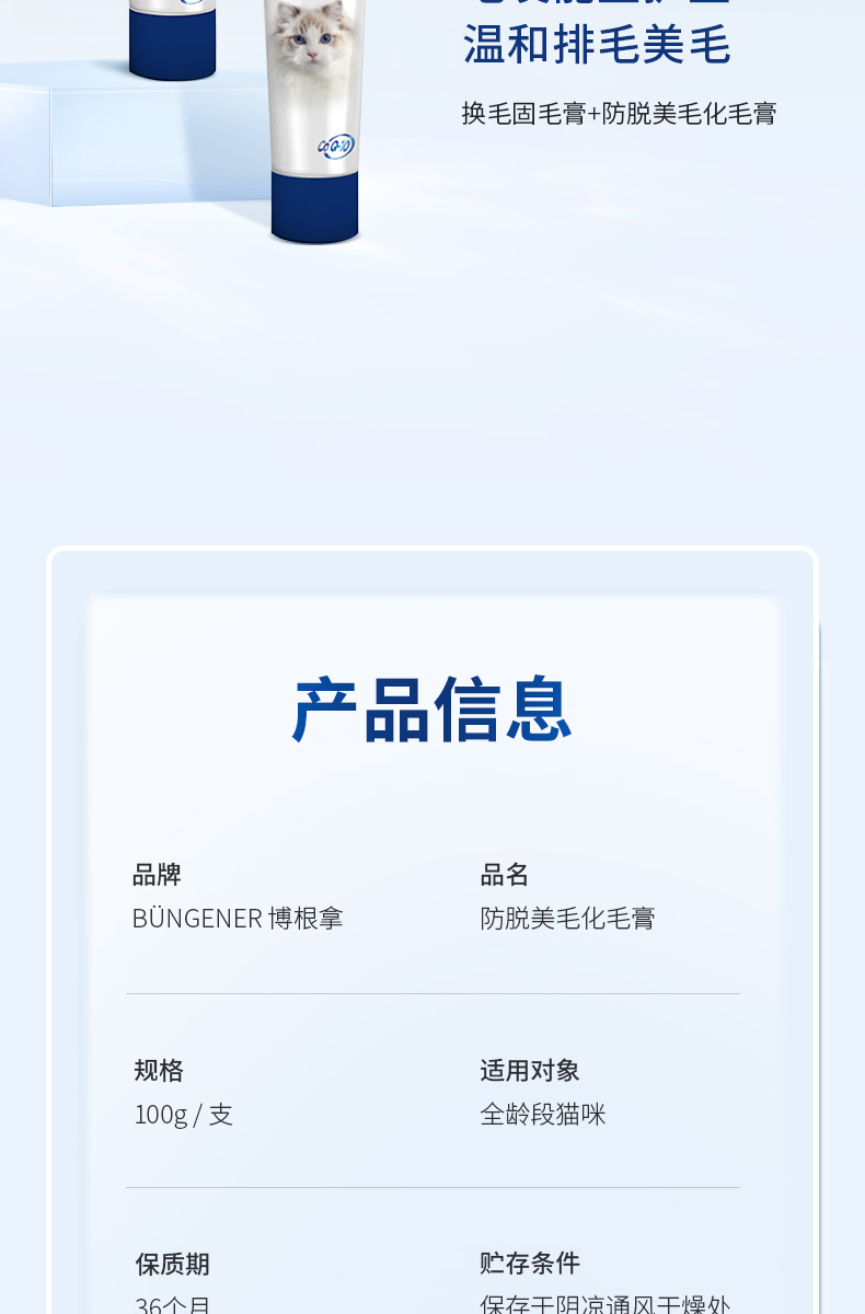bungener博根拿猫化毛膏深海三文鱼配方美毛化毛二合一提升免疫力