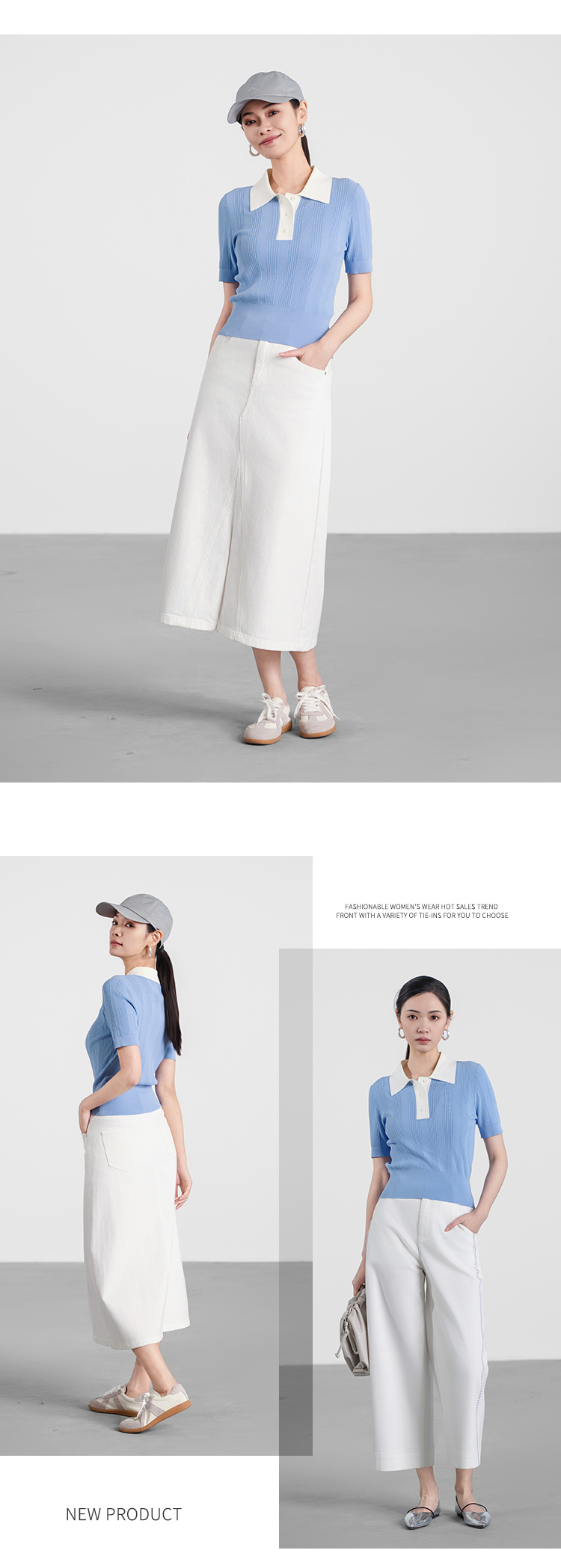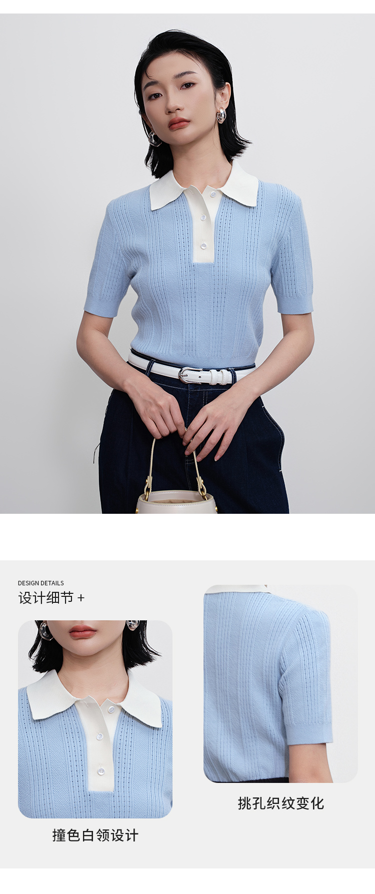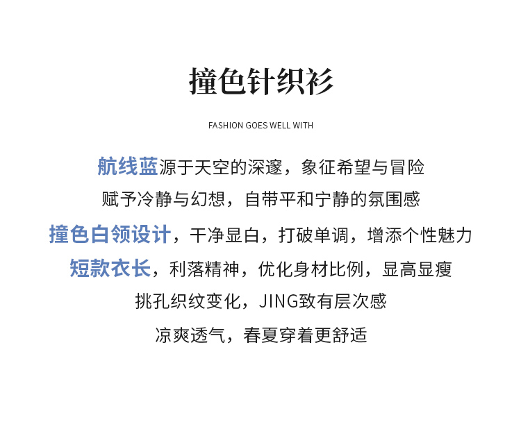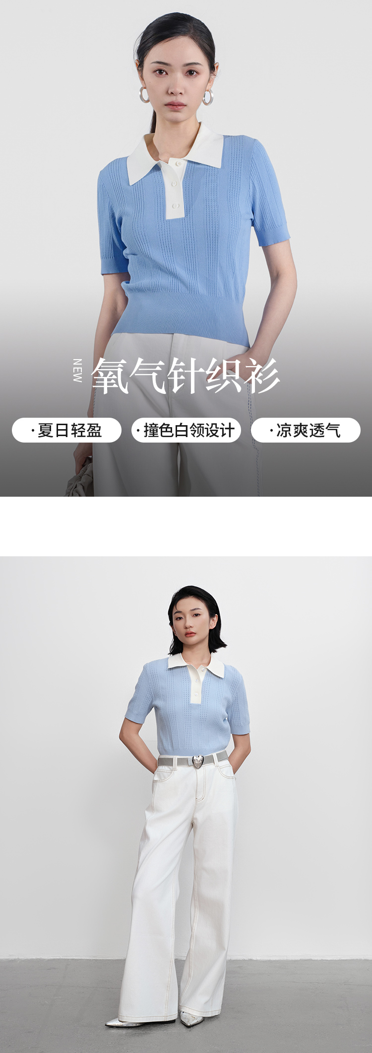 【商场同款】CNK5461 “ 氧气POLO领针织衫 ” 撞色白领设计,干净显白 纱线细腻软糯舒适