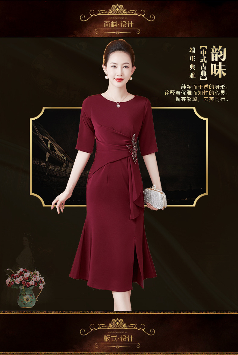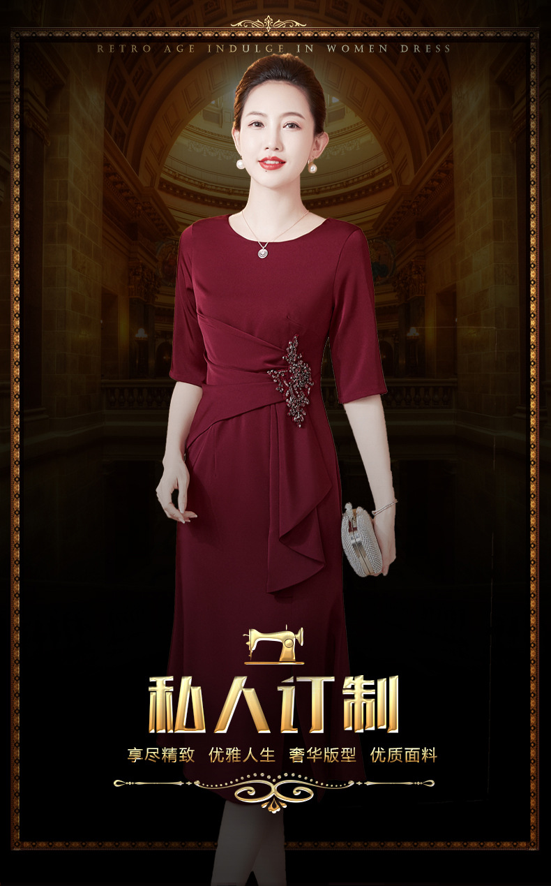 时尚优雅,秋装婚庆妈妈装阔太太连衣裙喜婆婆婚宴礼服LC2277