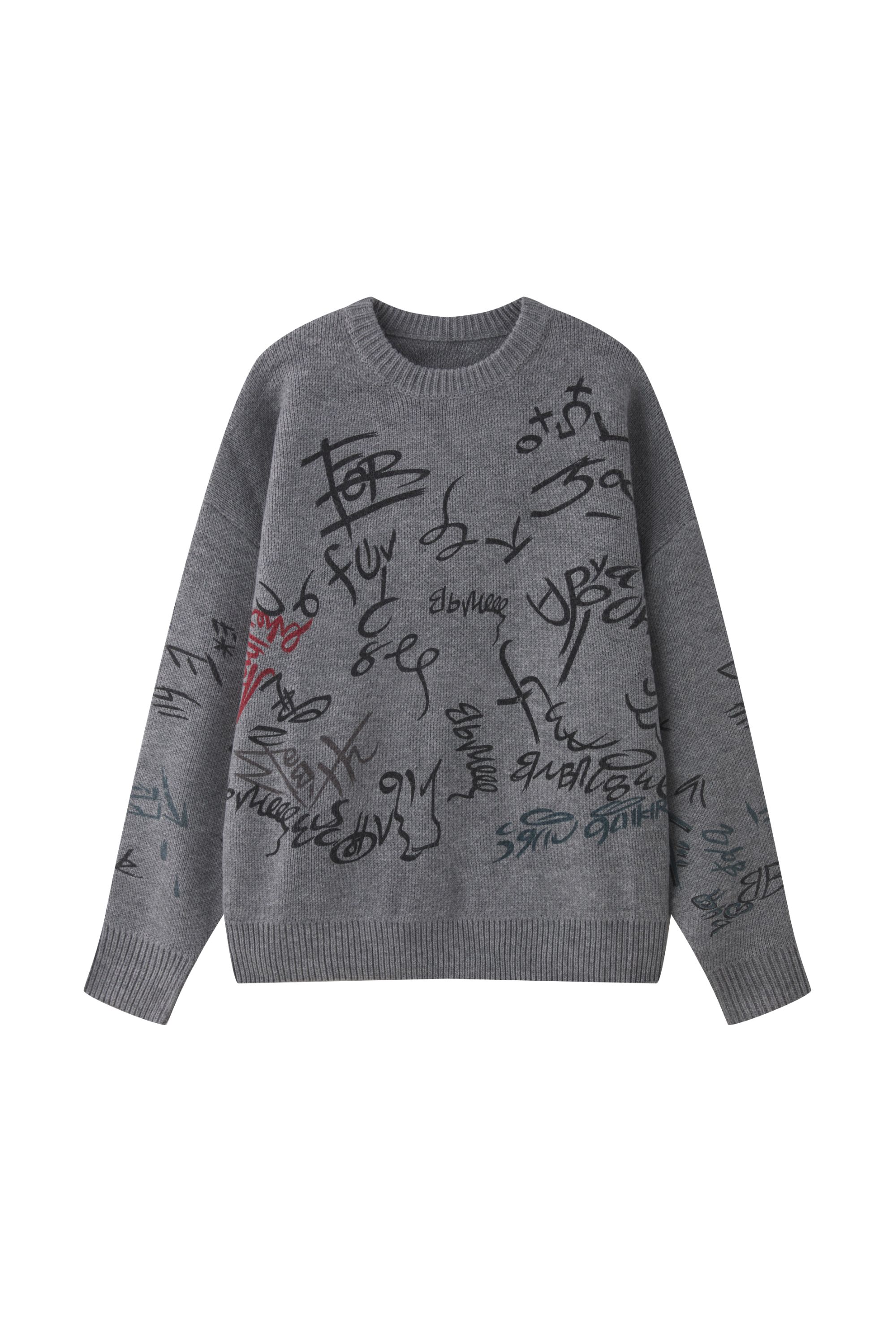 现货 涂鸦毛衣 童趣氛围感 涂鸦印花针织毛衣