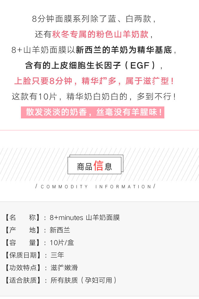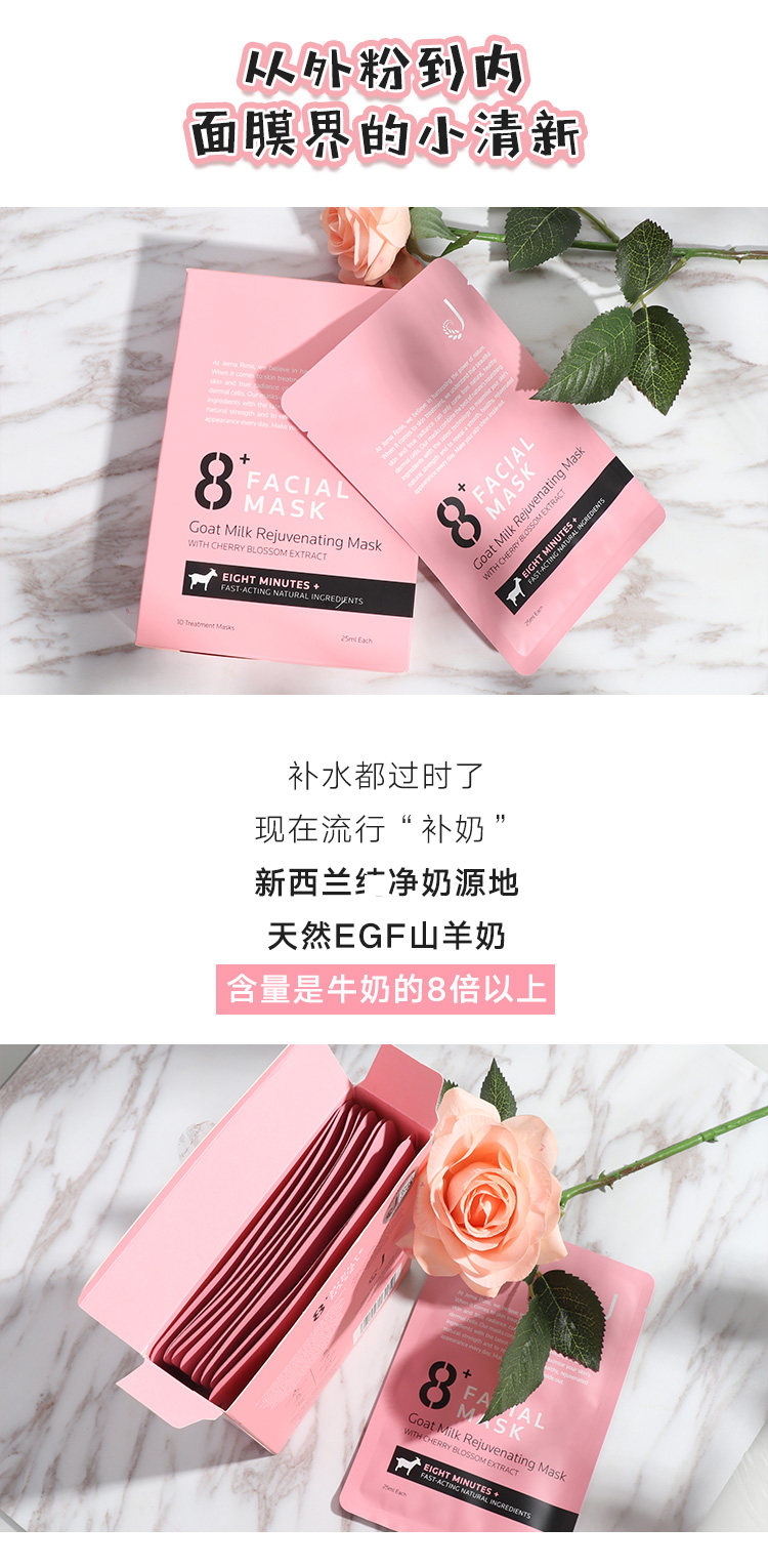 新西兰澳洲8分钟面膜 8+minutes极速补水保湿提亮亮白妆前山羊奶
