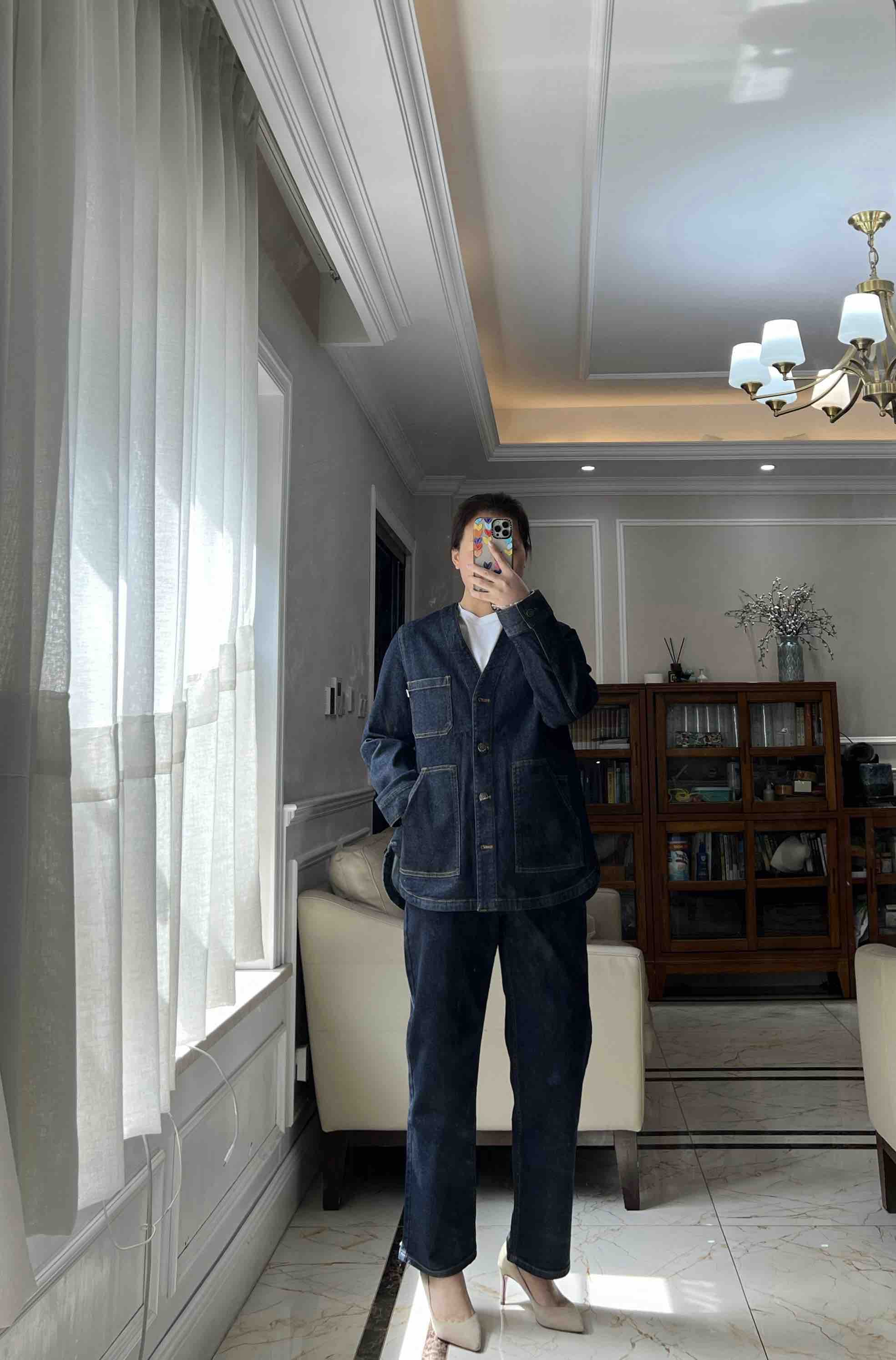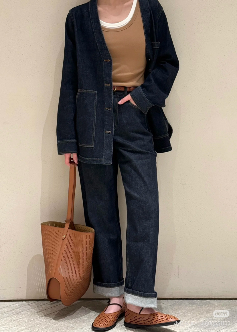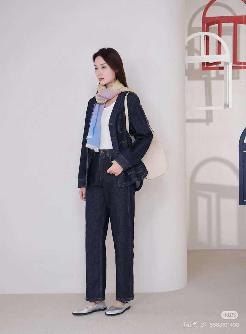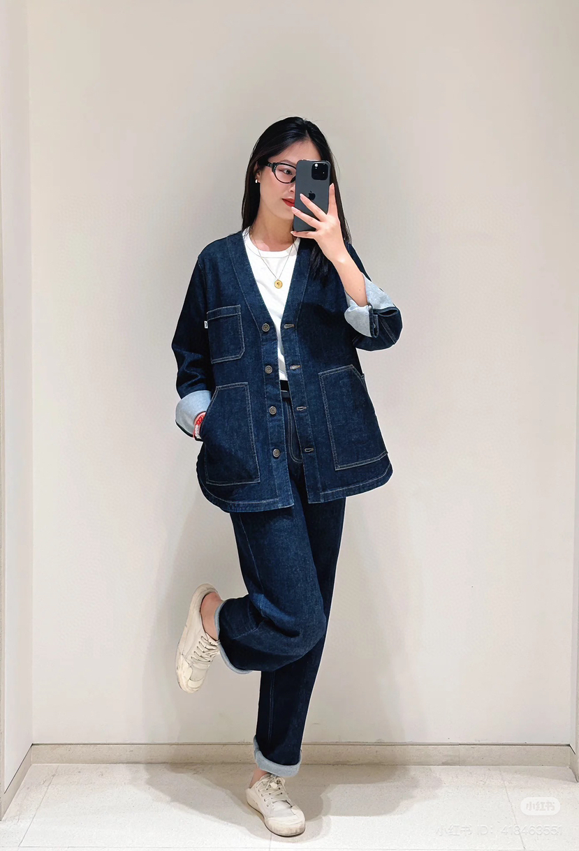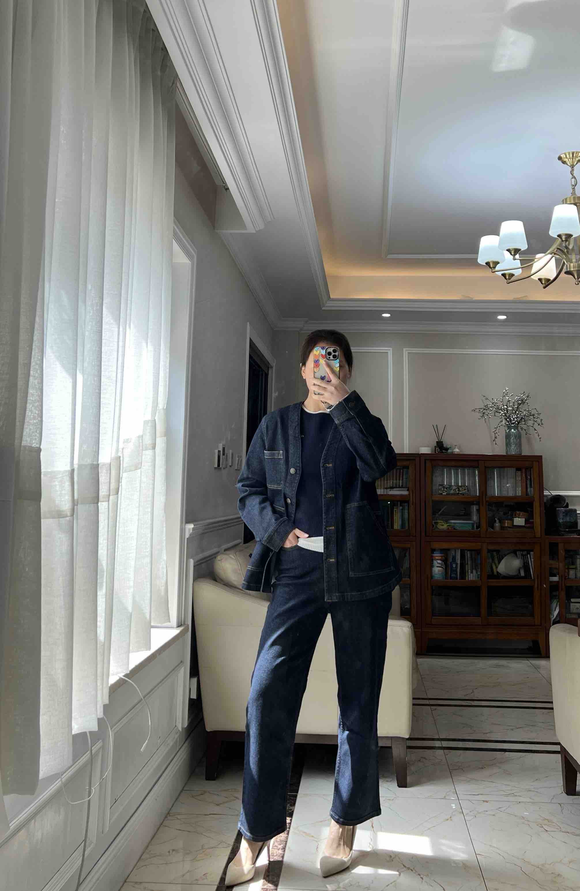 姑娘们,你们现在进柜,店员一定一定是给你主推这套。看着平平无奇,上身就很神器,风很大的无领牛仔外套,偏一点点中式风,25新款版型和口袋都做了改良,恰到好处的宽松,而且插口袋更加方便