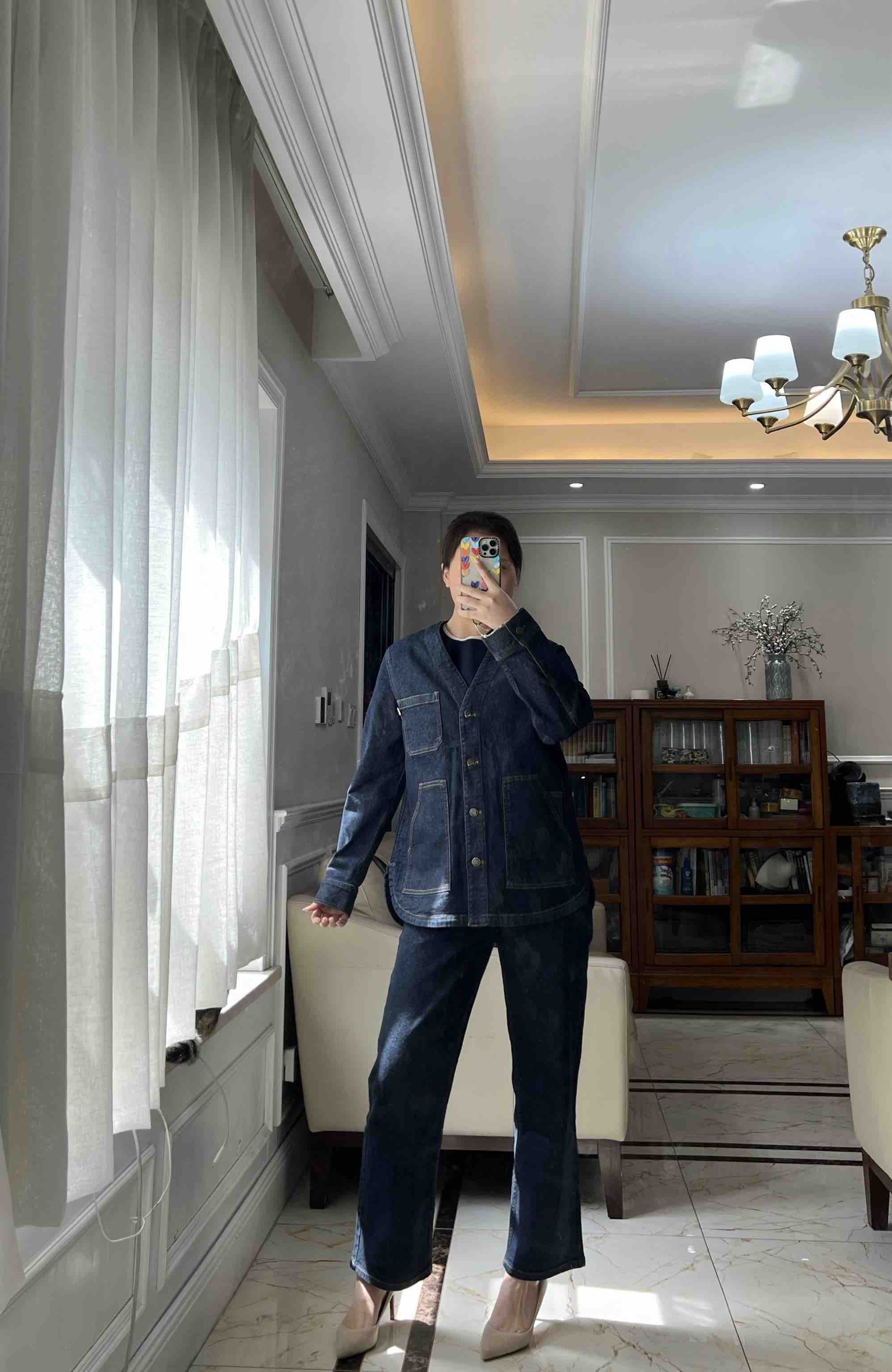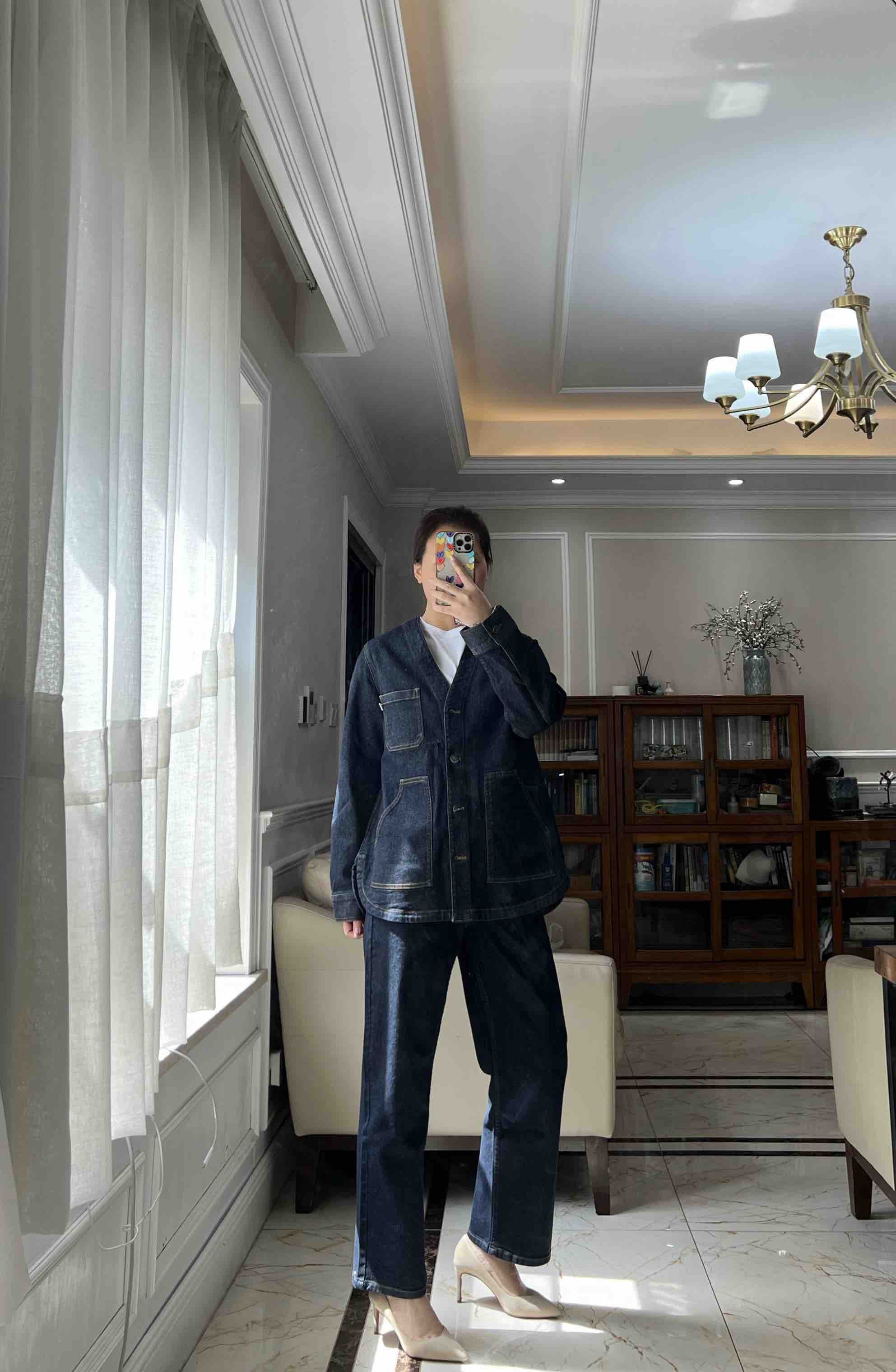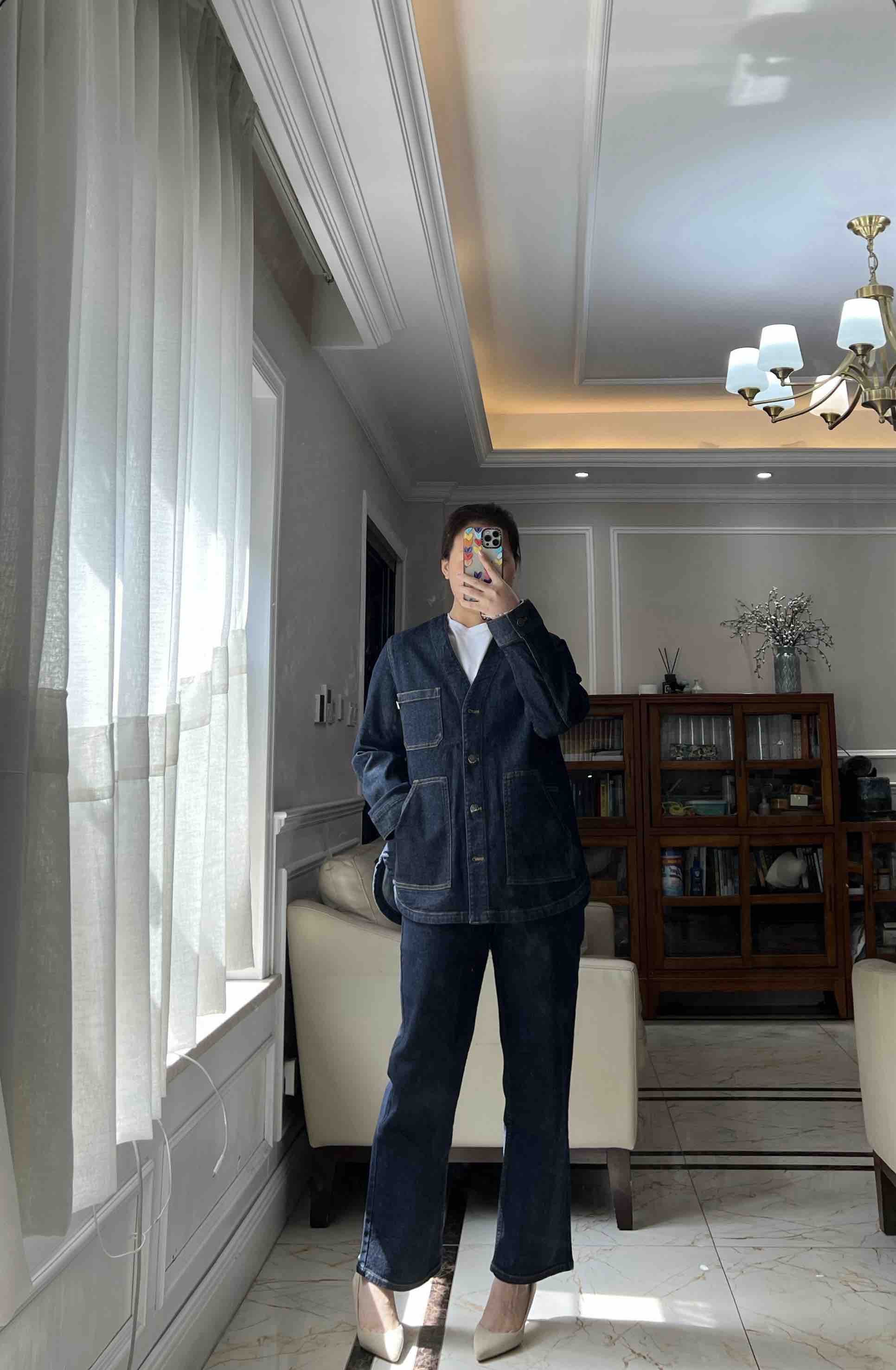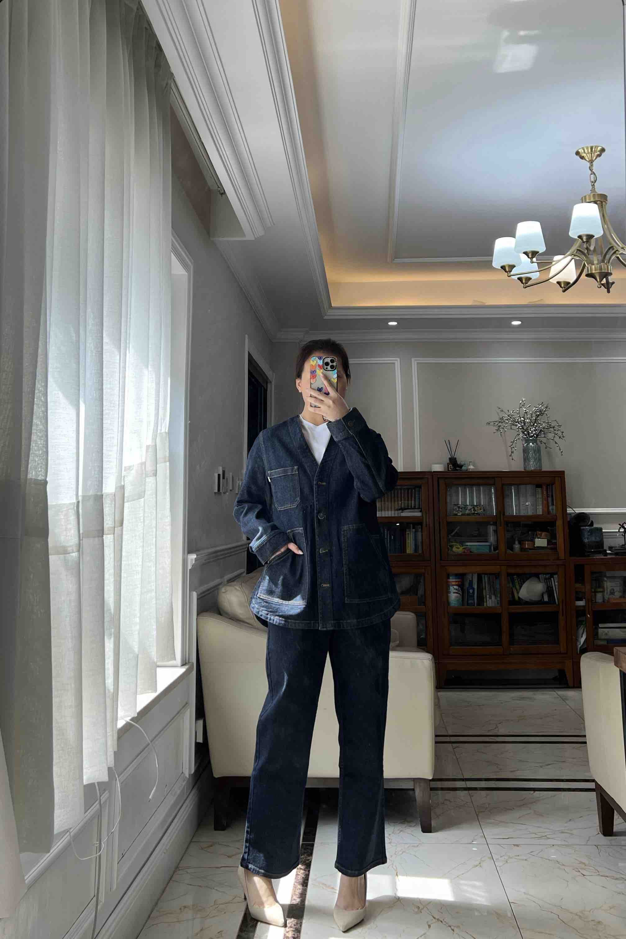 姑娘们,你们现在进柜,店员一定一定是给你主推这套。看着平平无奇,上身就很神器,风很大的无领牛仔外套,偏一点点中式风,25新款版型和口袋都做了改良,恰到好处的宽松,而且插口袋更加方便
