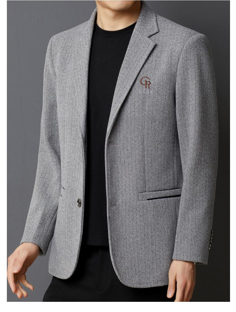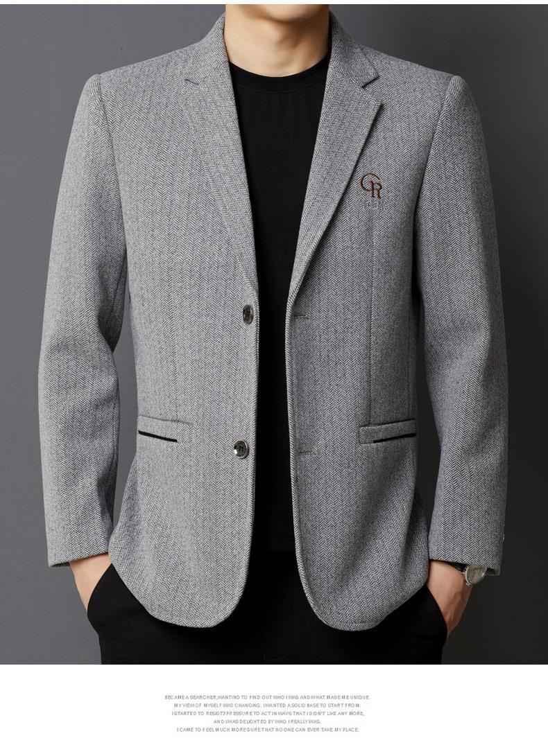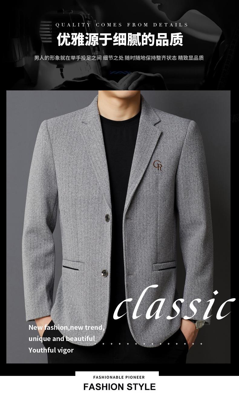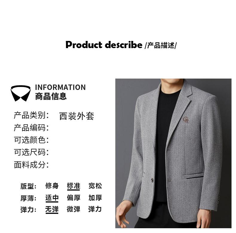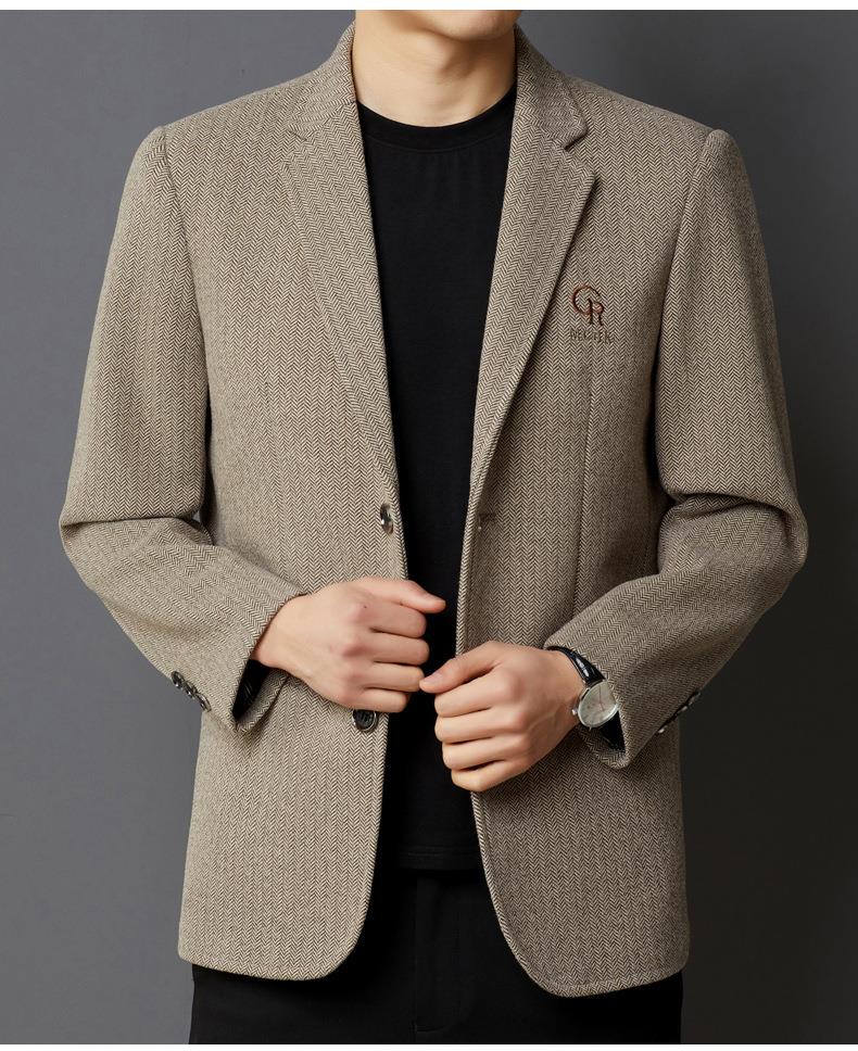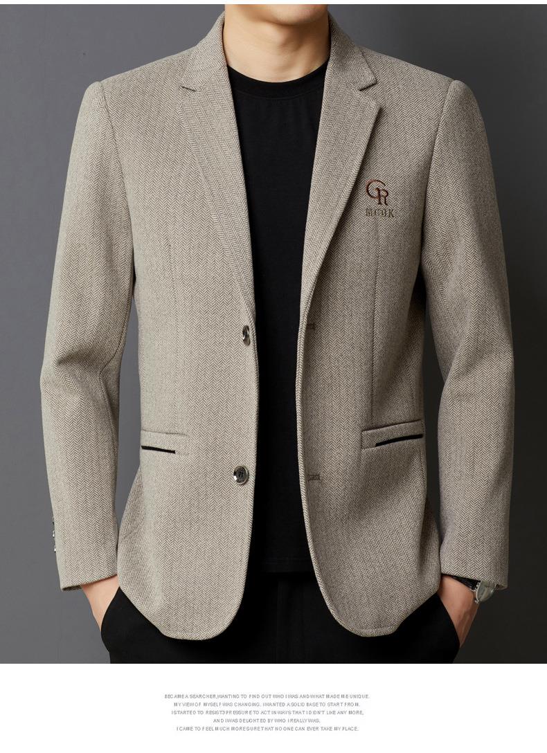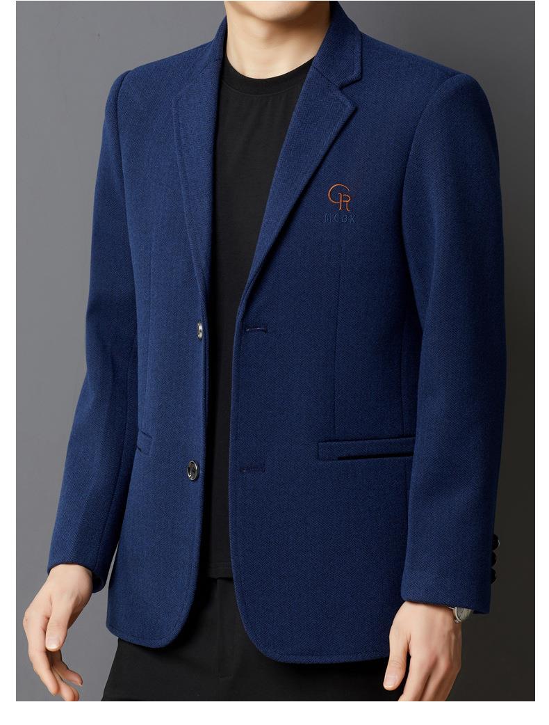 秋冬季男士翻领休闲西服中年字母刺绣宽松爸爸装商务西装