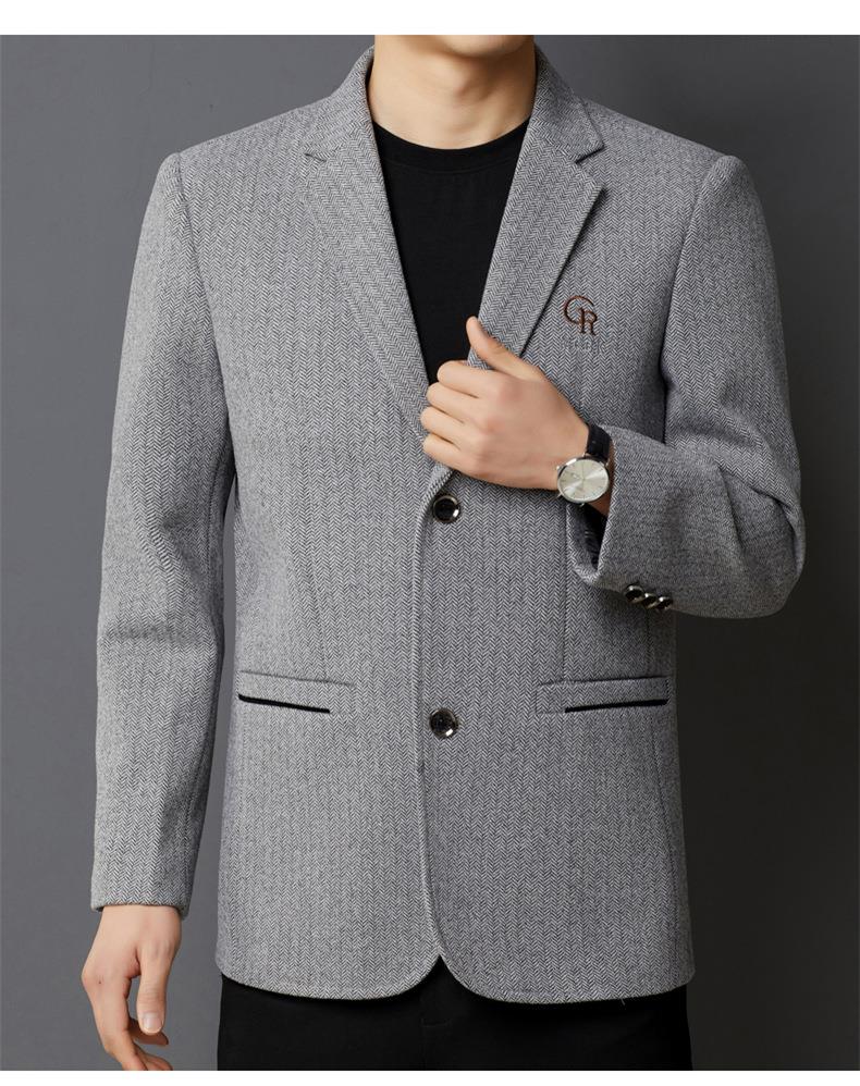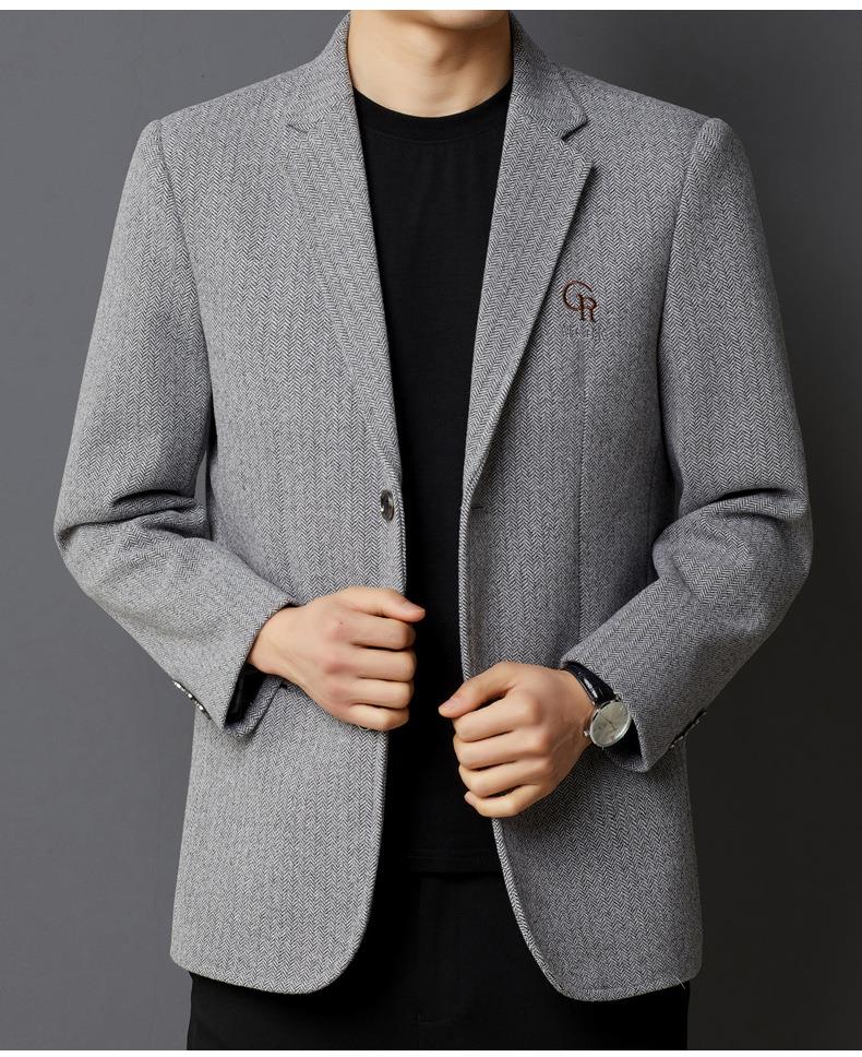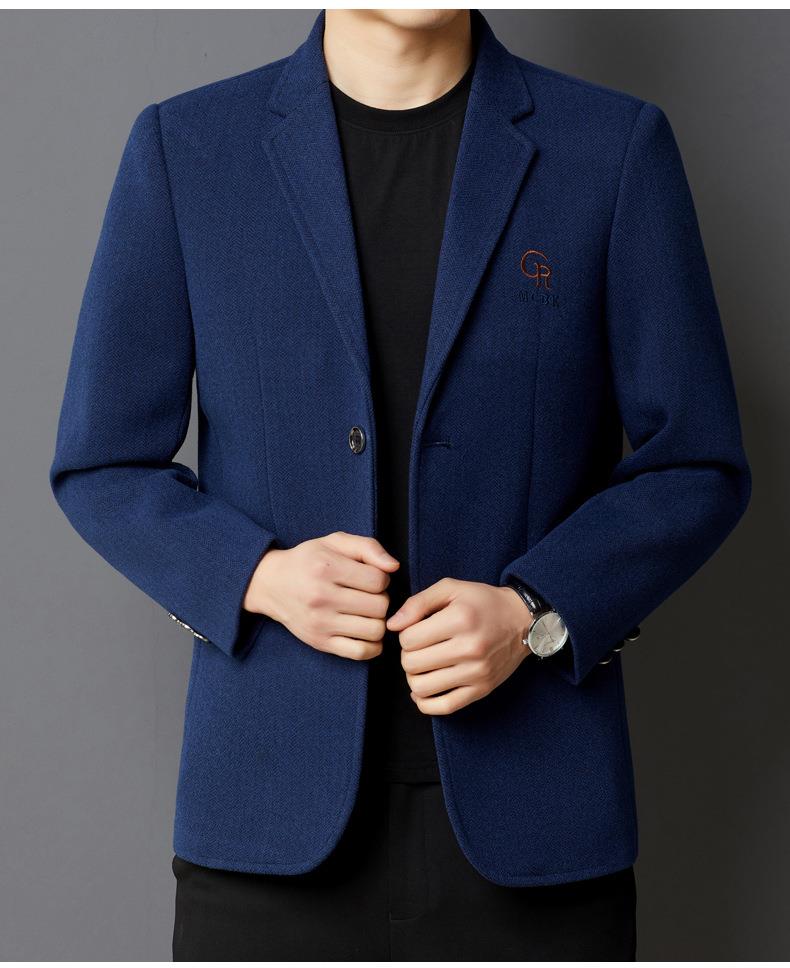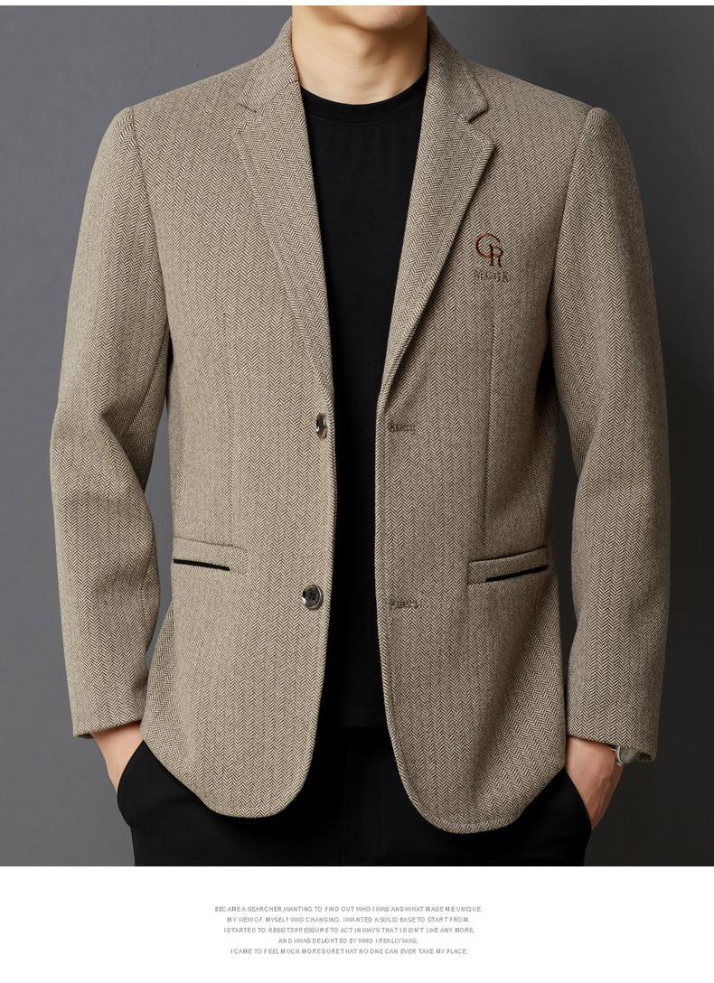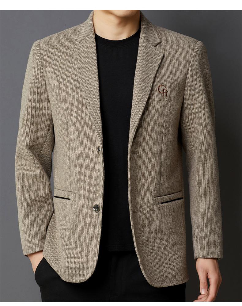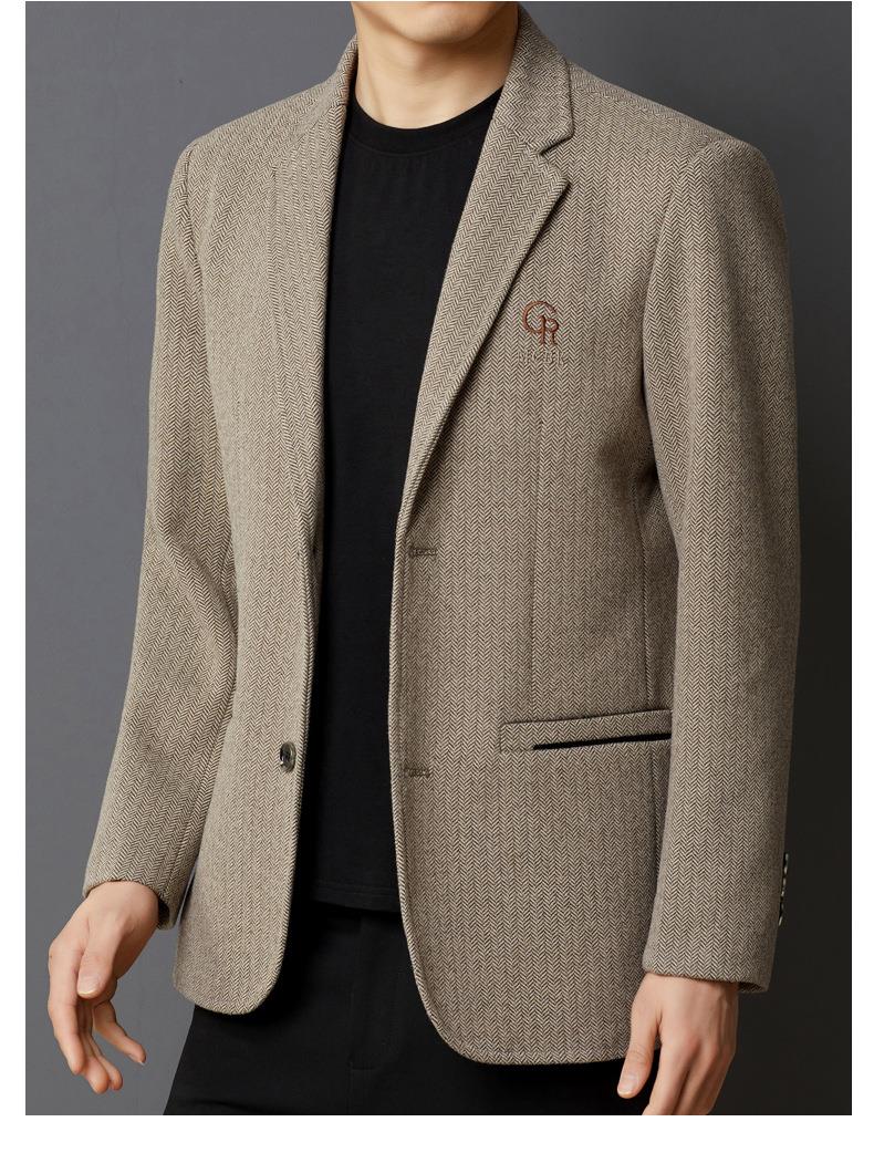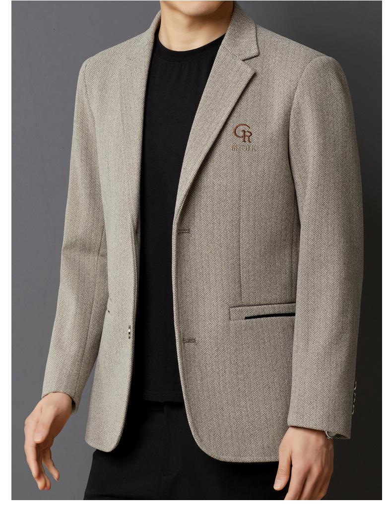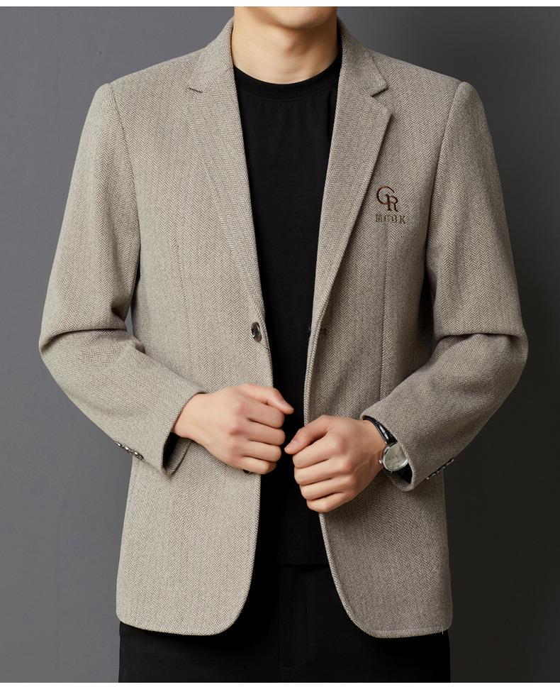 秋冬季男士翻领休闲西服中年字母刺绣宽松爸爸装商务西装