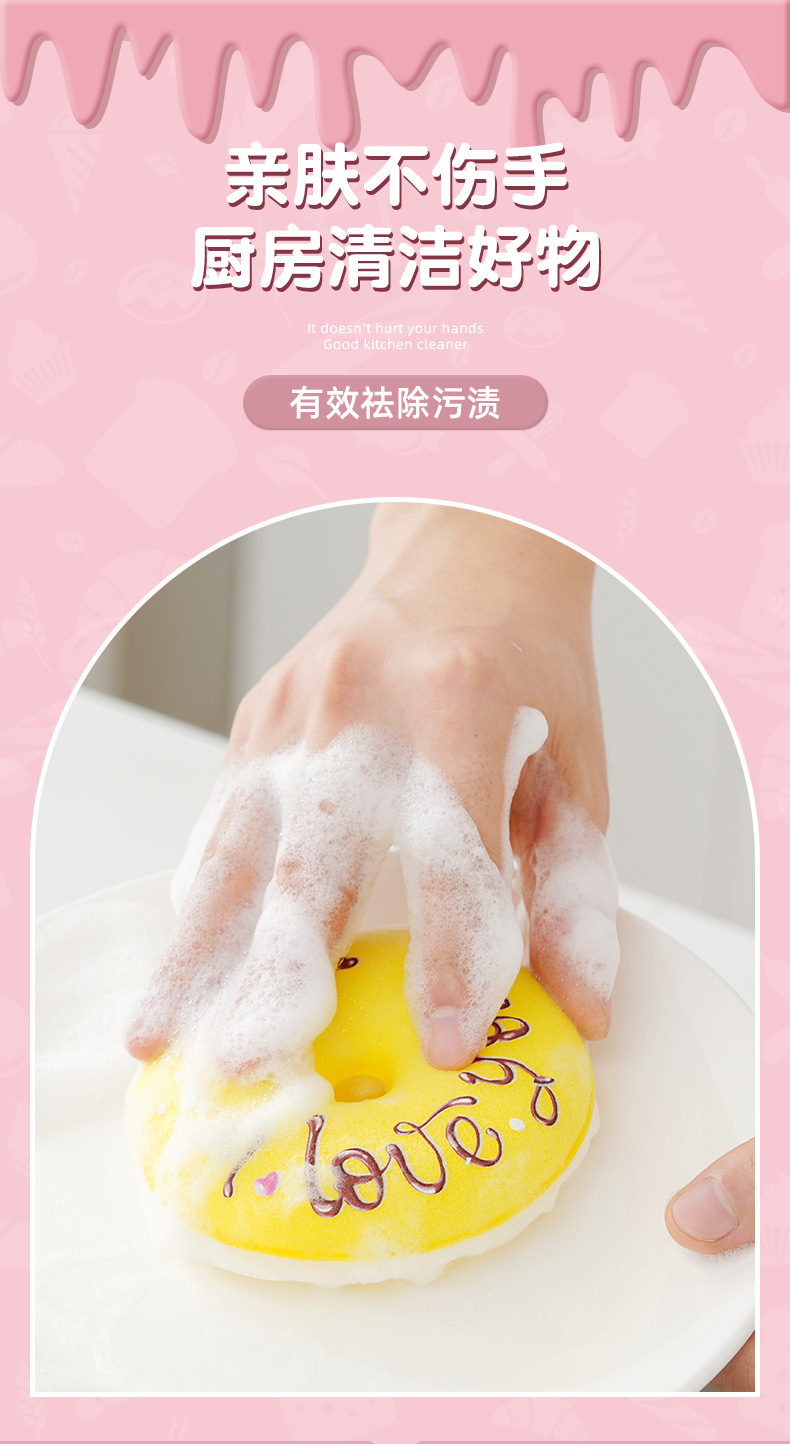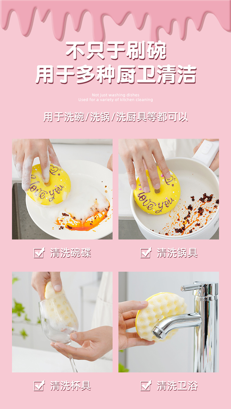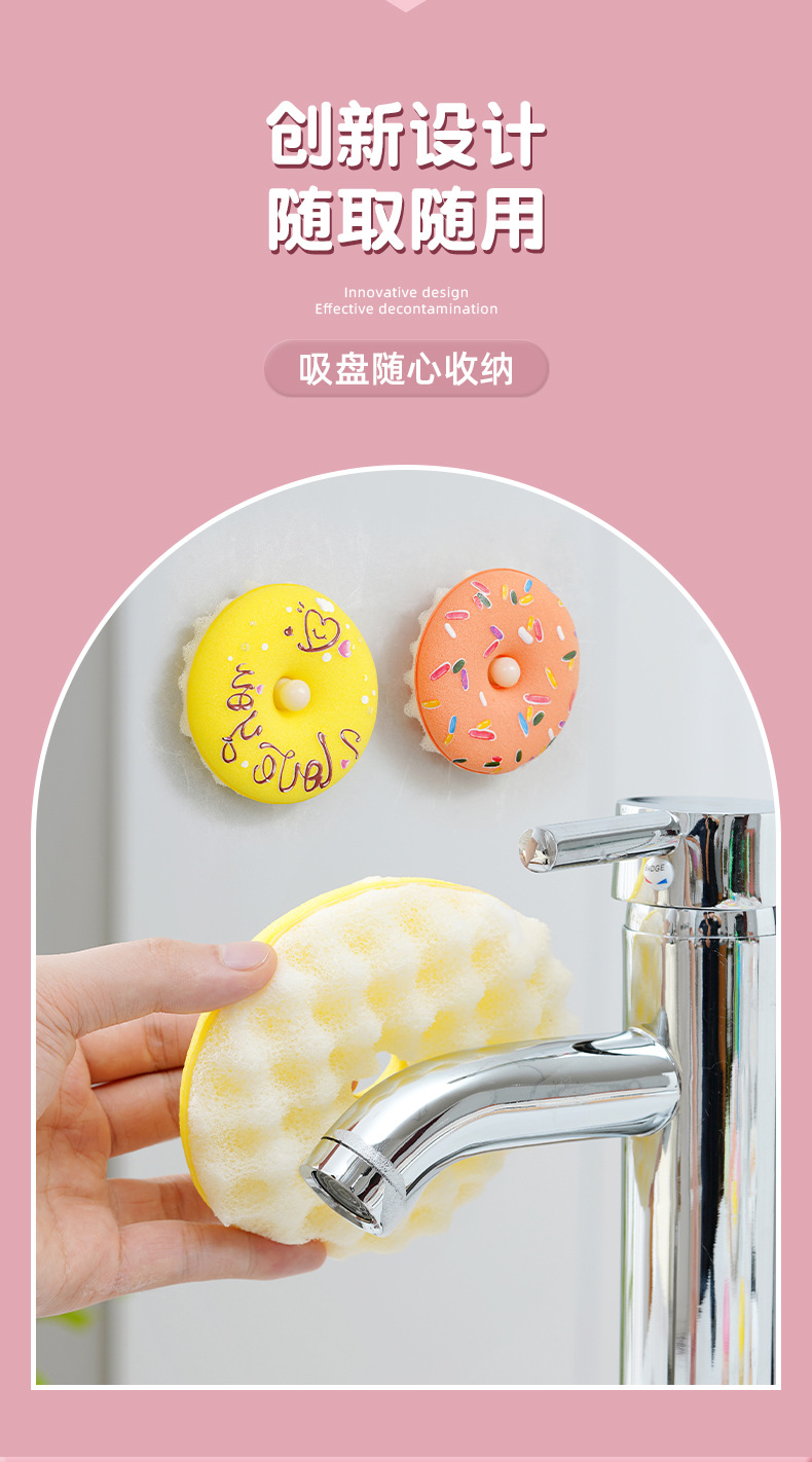 【甜甜圈吸盘洗碗刷】| 元和优选 仿丝瓜3D立体蜂窝海绵,不粘油不掉渣易清洗!刷锅神器吸盘洗碗棉百洁布厨房清洁木浆绵抹布
