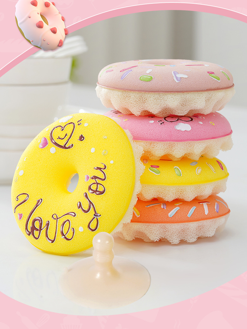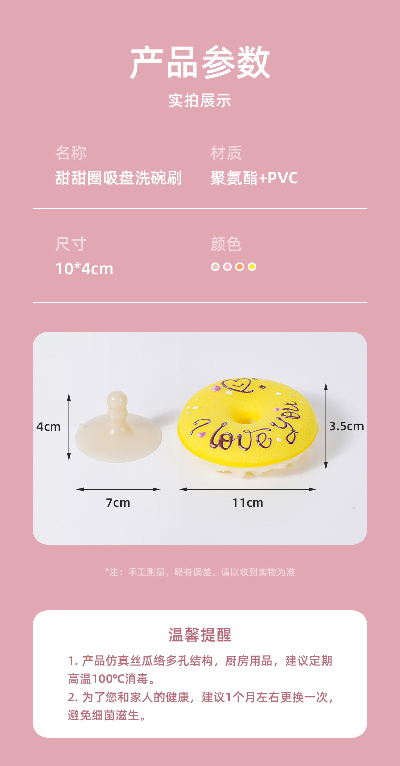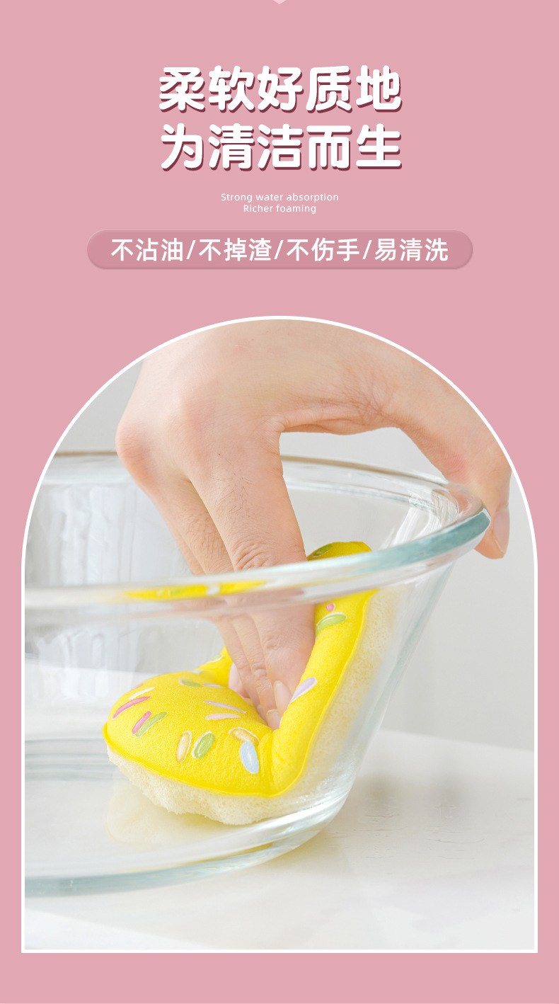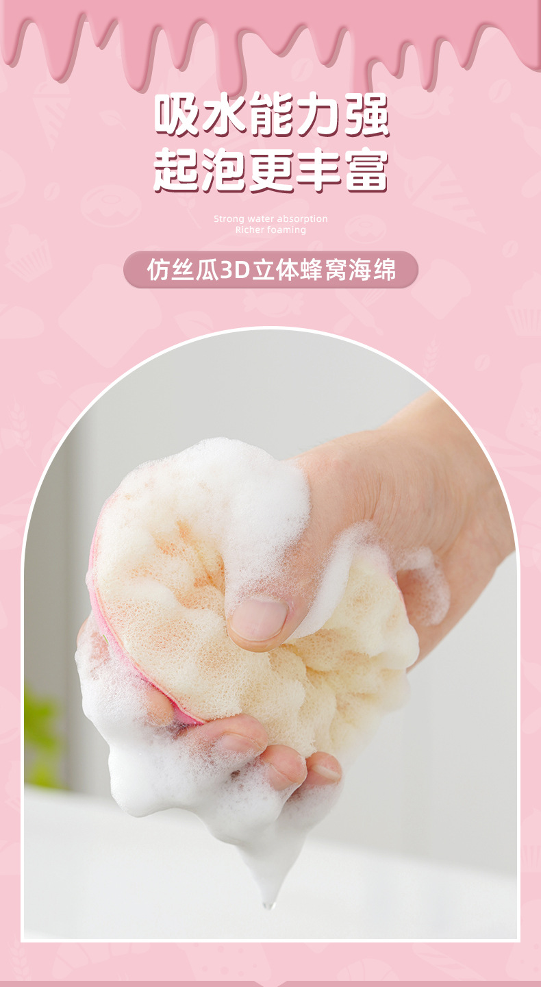 【甜甜圈吸盘洗碗刷】| 元和优选 仿丝瓜3D立体蜂窝海绵,不粘油不掉渣易清洗!刷锅神器吸盘洗碗棉百洁布厨房清洁木浆绵抹布