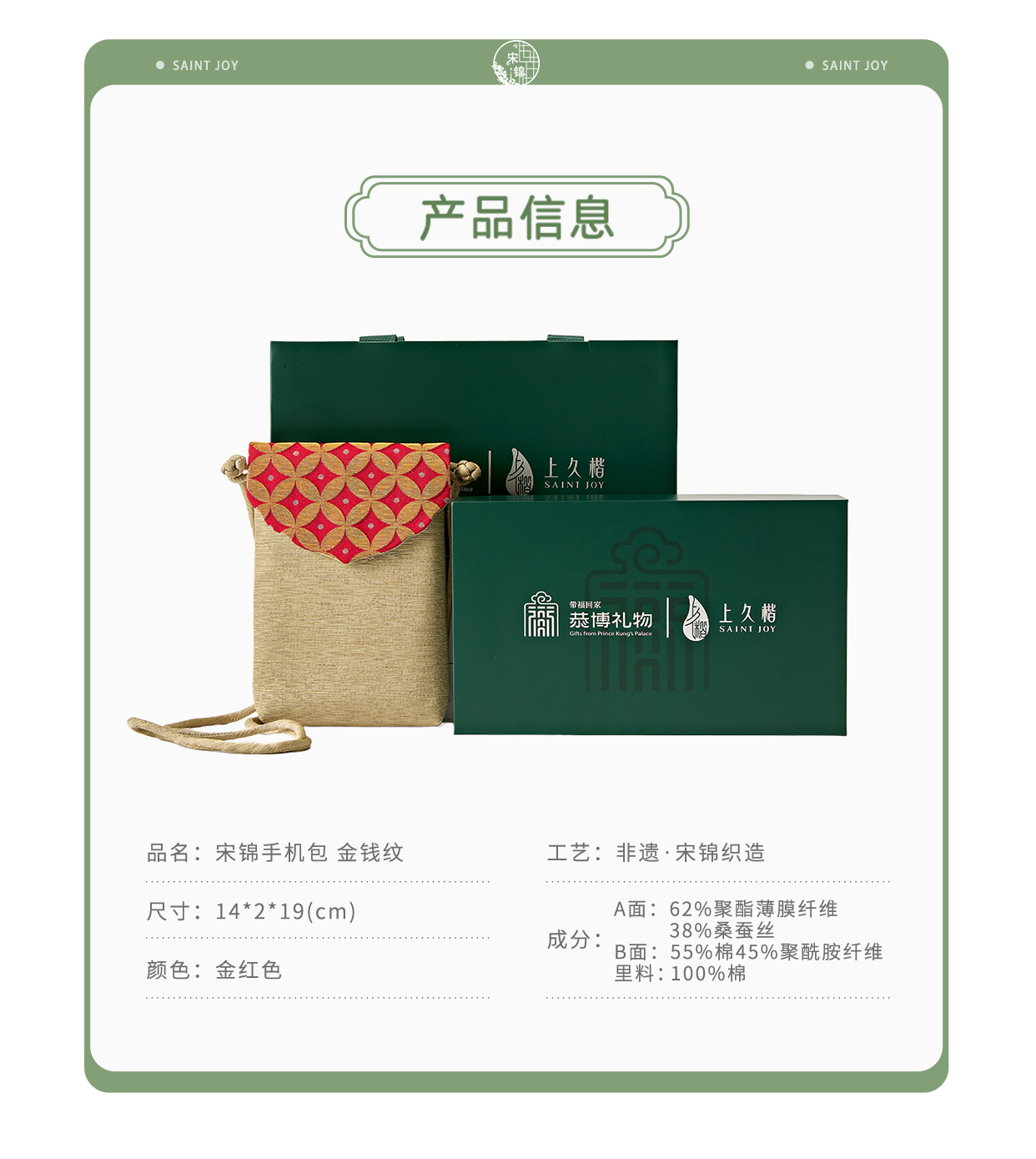 【上久楷 X 恭王府】宋锦手机包 金钱纹 红色 XB3B085205003