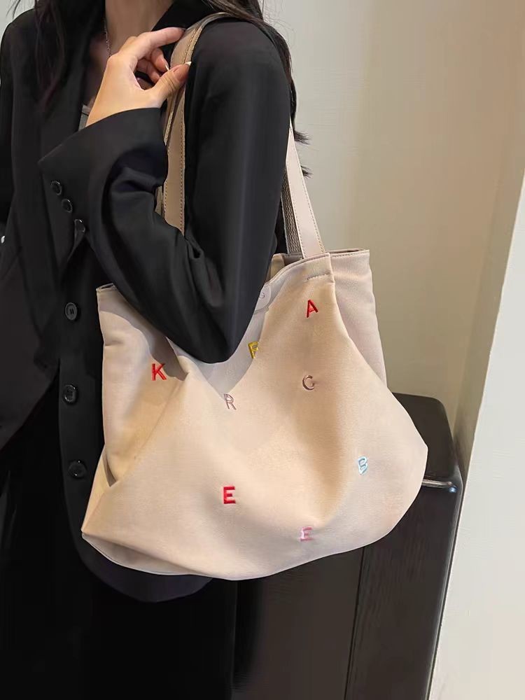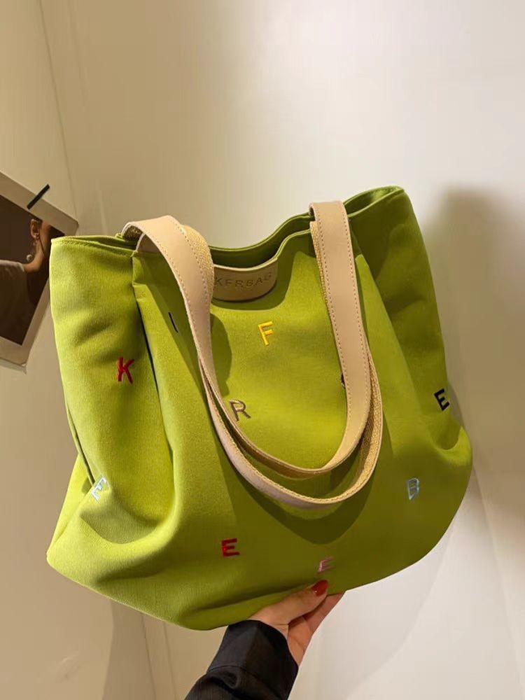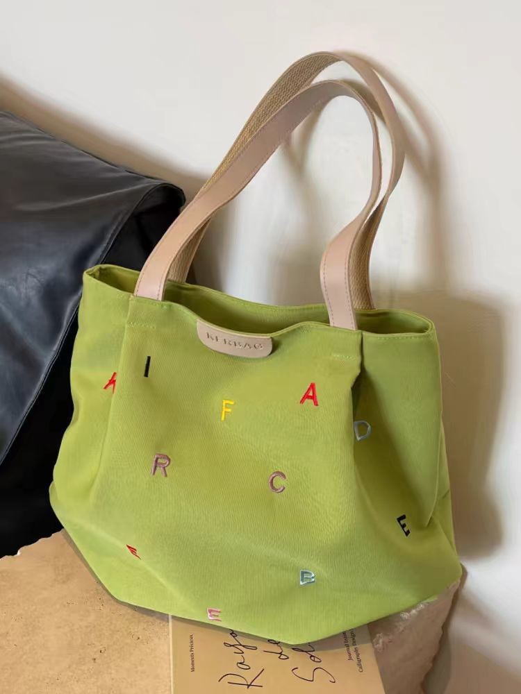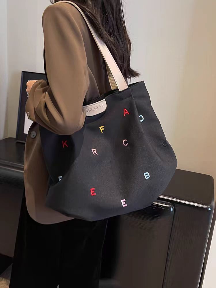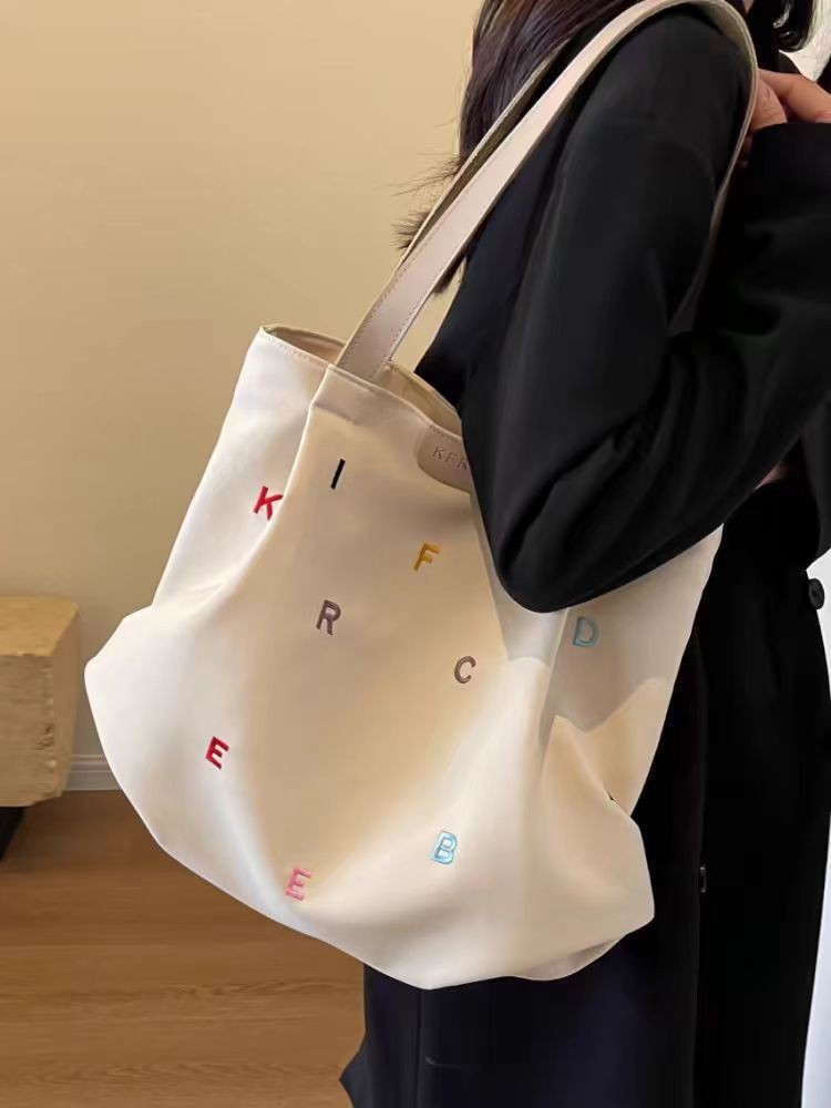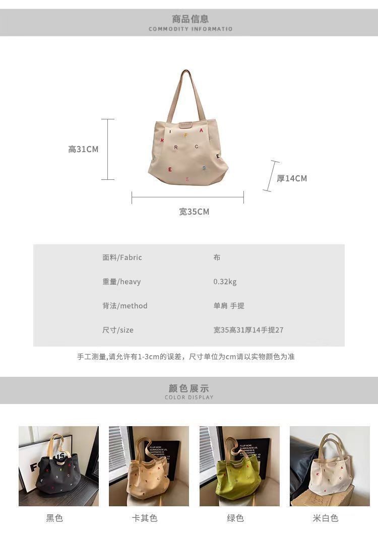 【耐磨耐造!ins风】新款帆布包包大容量女潮刺绣字母手提袋小清新学生单肩托特包。xb