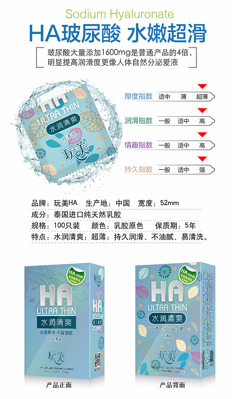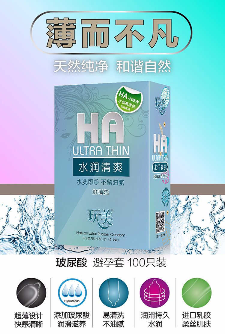 玩美避孕套玻尿酸100只装安全套完美大油量超薄光面夜场润滑套子