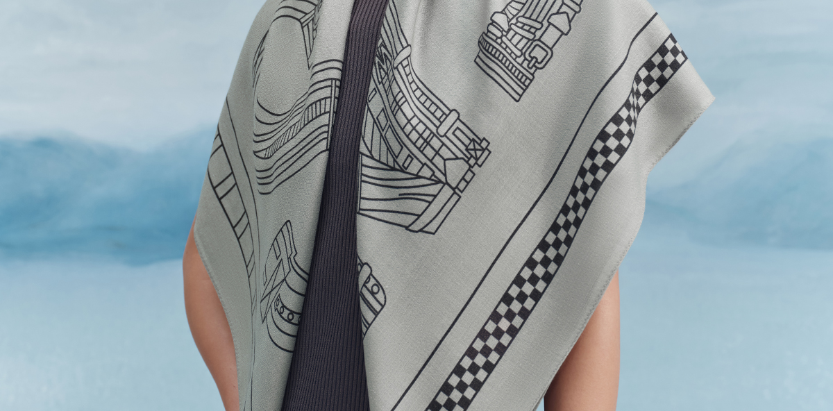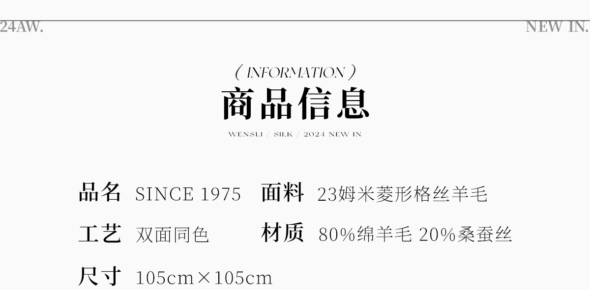 万事利“SINCE 1975”105厘米双面印花丝羊毛围巾