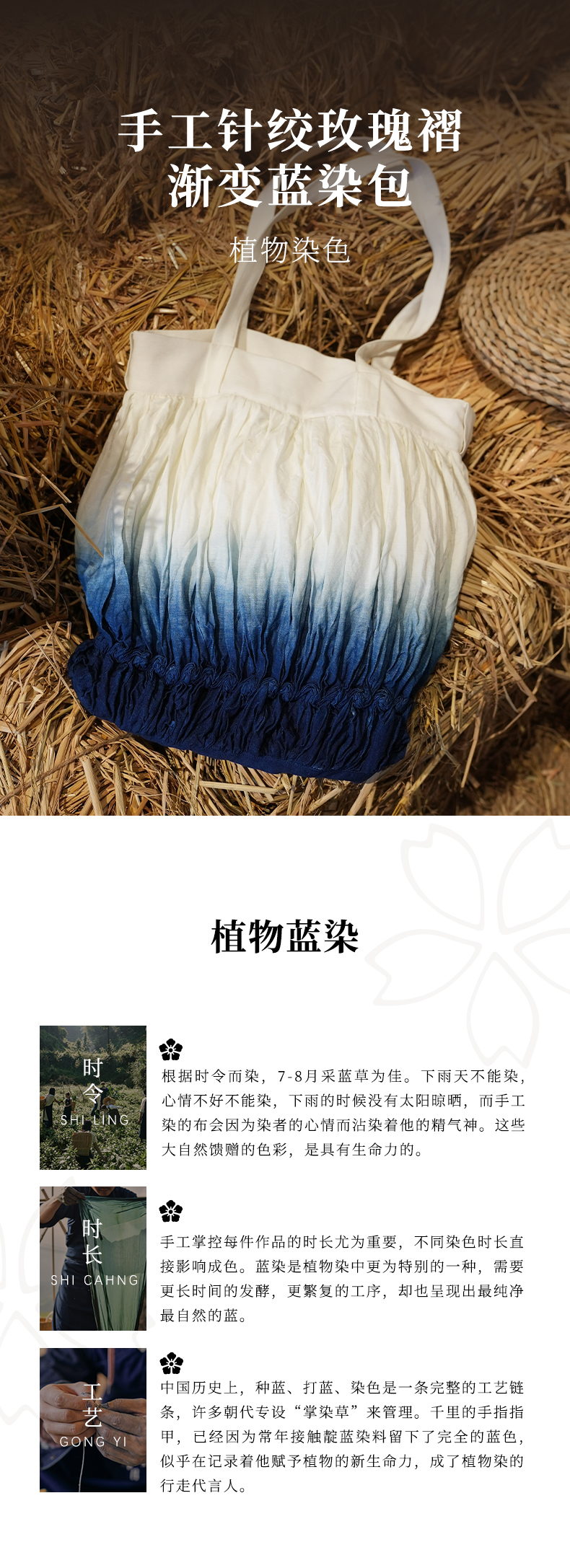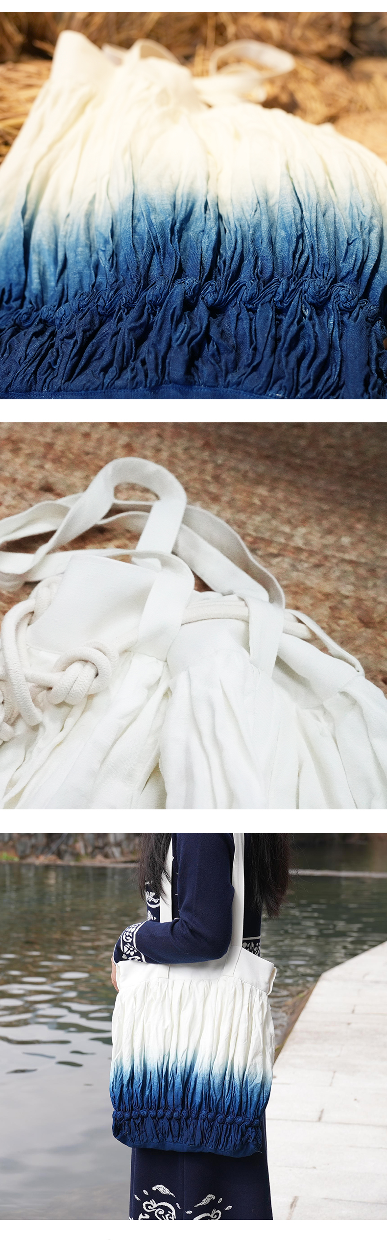【林栖设计小店】东阳手工针绞玫瑰褶渐变蓝染包(植物染色)LX1125001