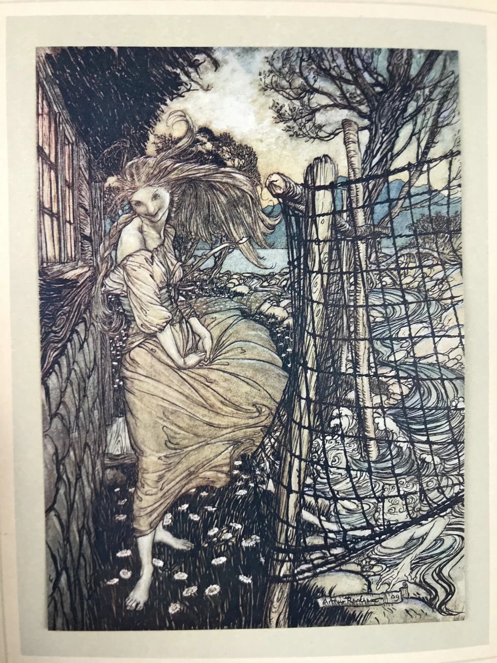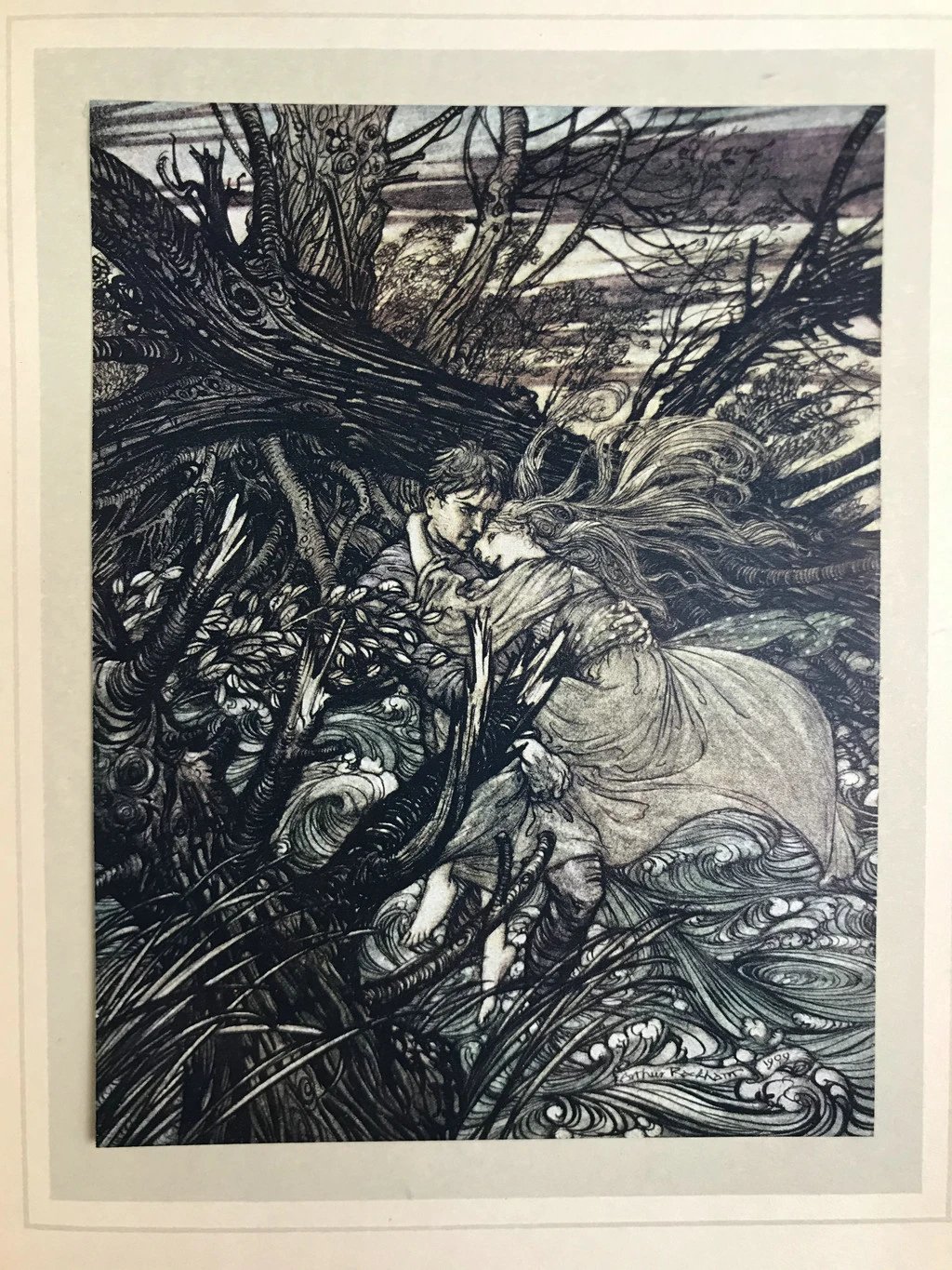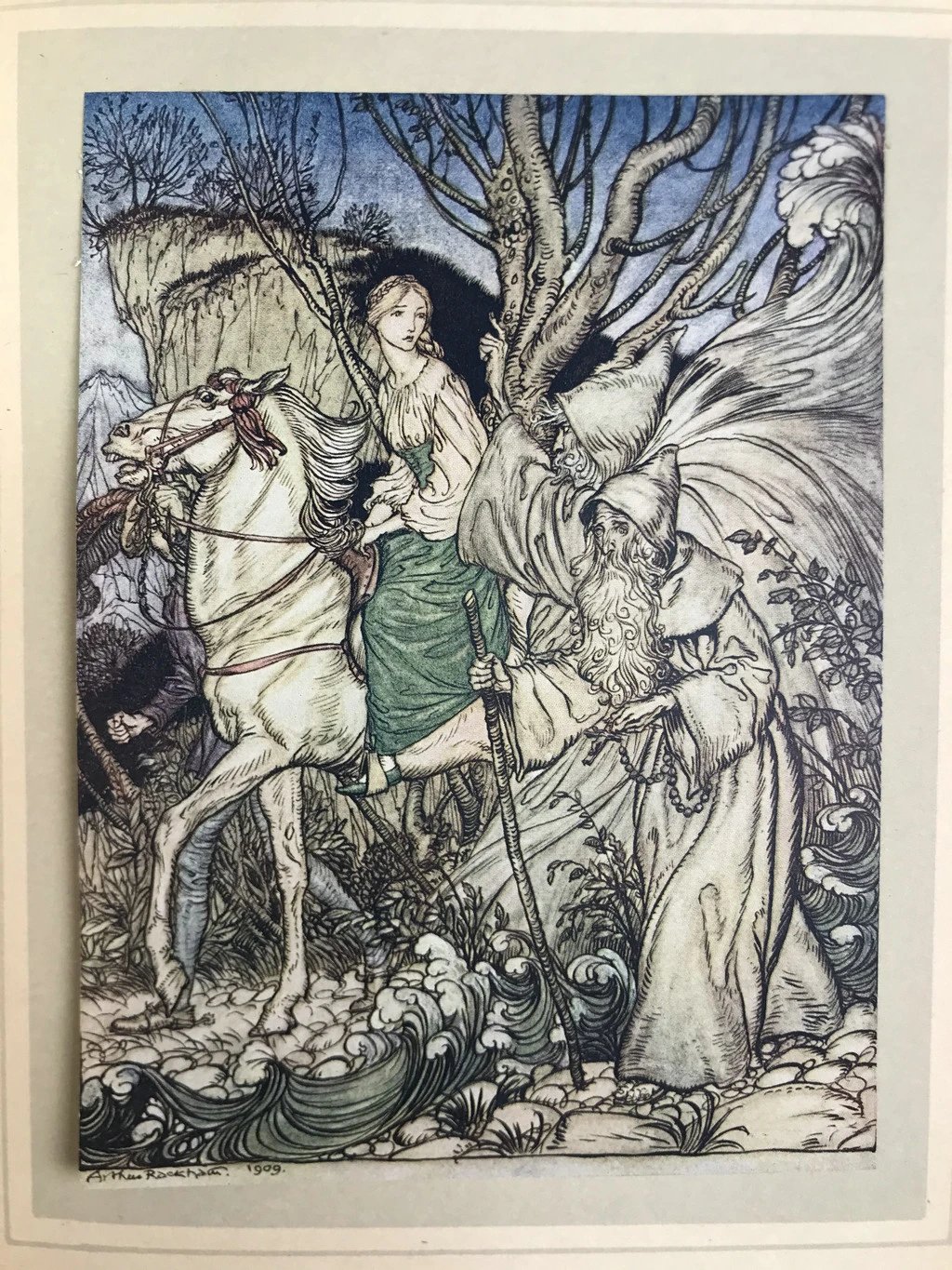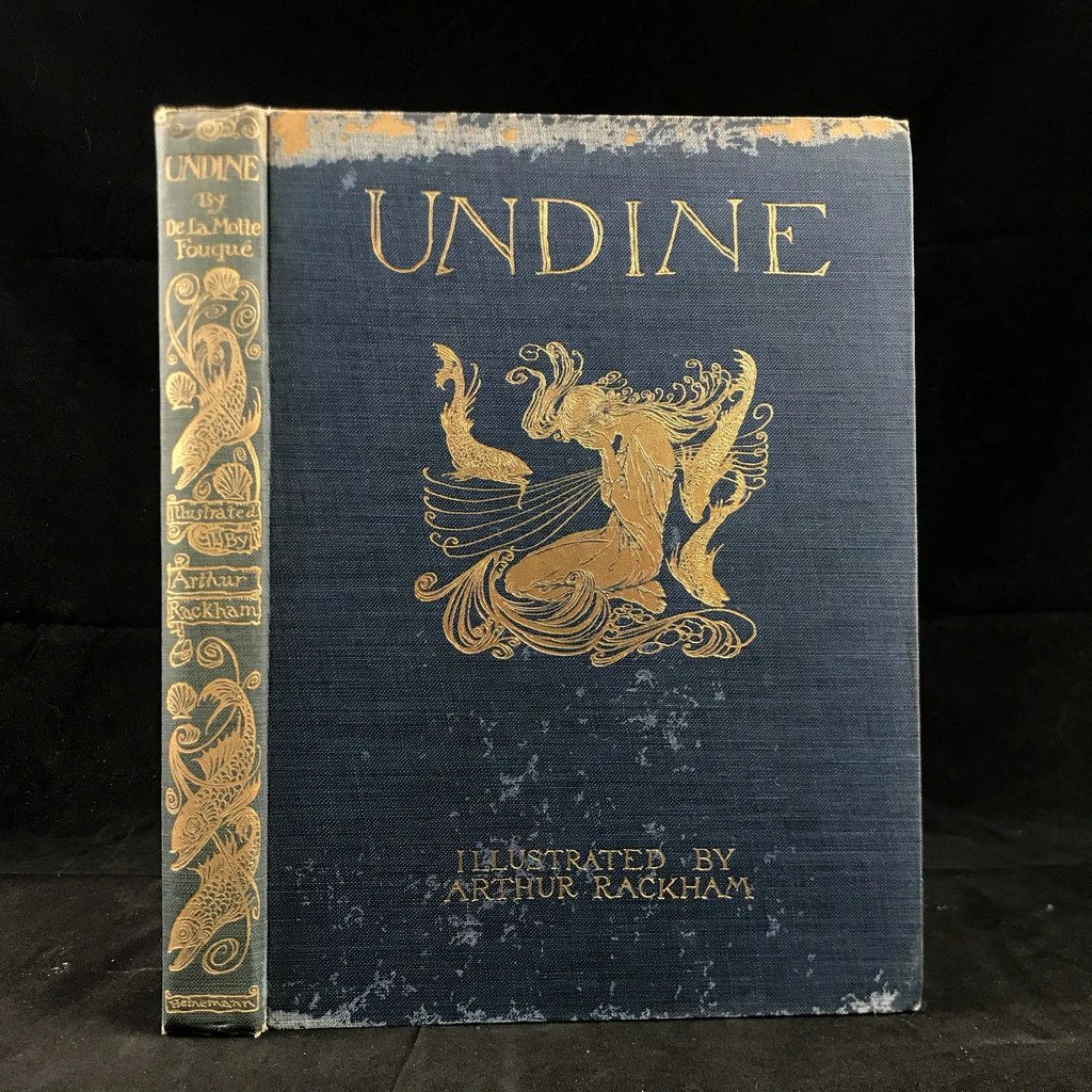 鬼才拉克姆15幅彩色手工贴图!1909年 莫特·富克《水妖记》 漆布精装16开