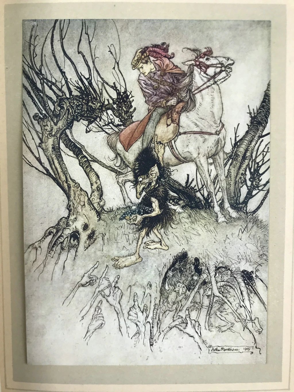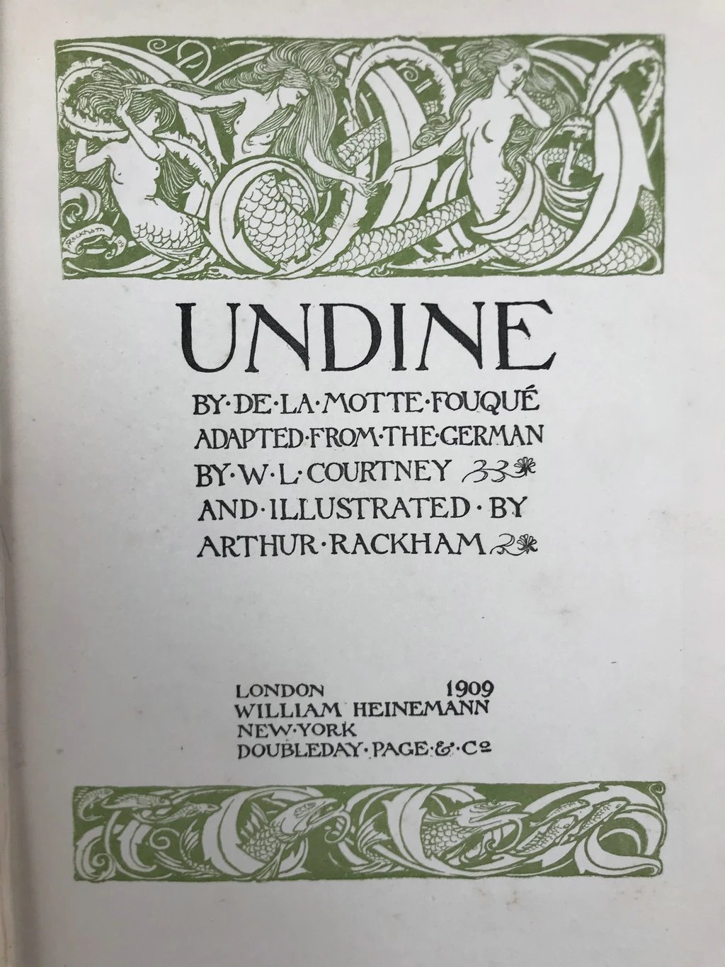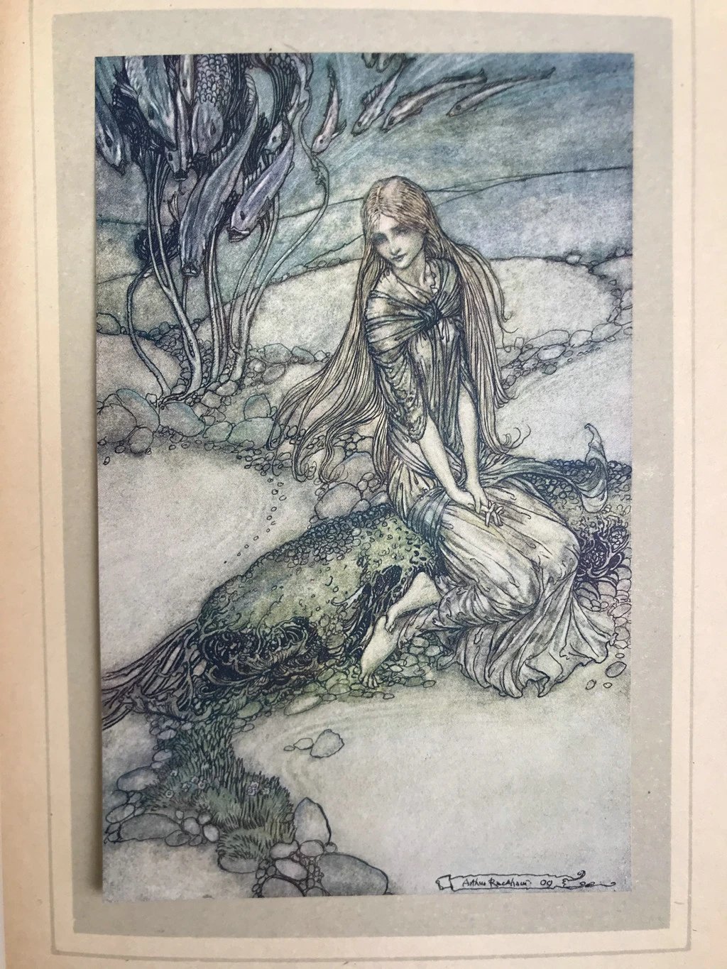鬼才拉克姆15幅彩色手工贴图!1909年 莫特·富克《水妖记》 漆布精装16开