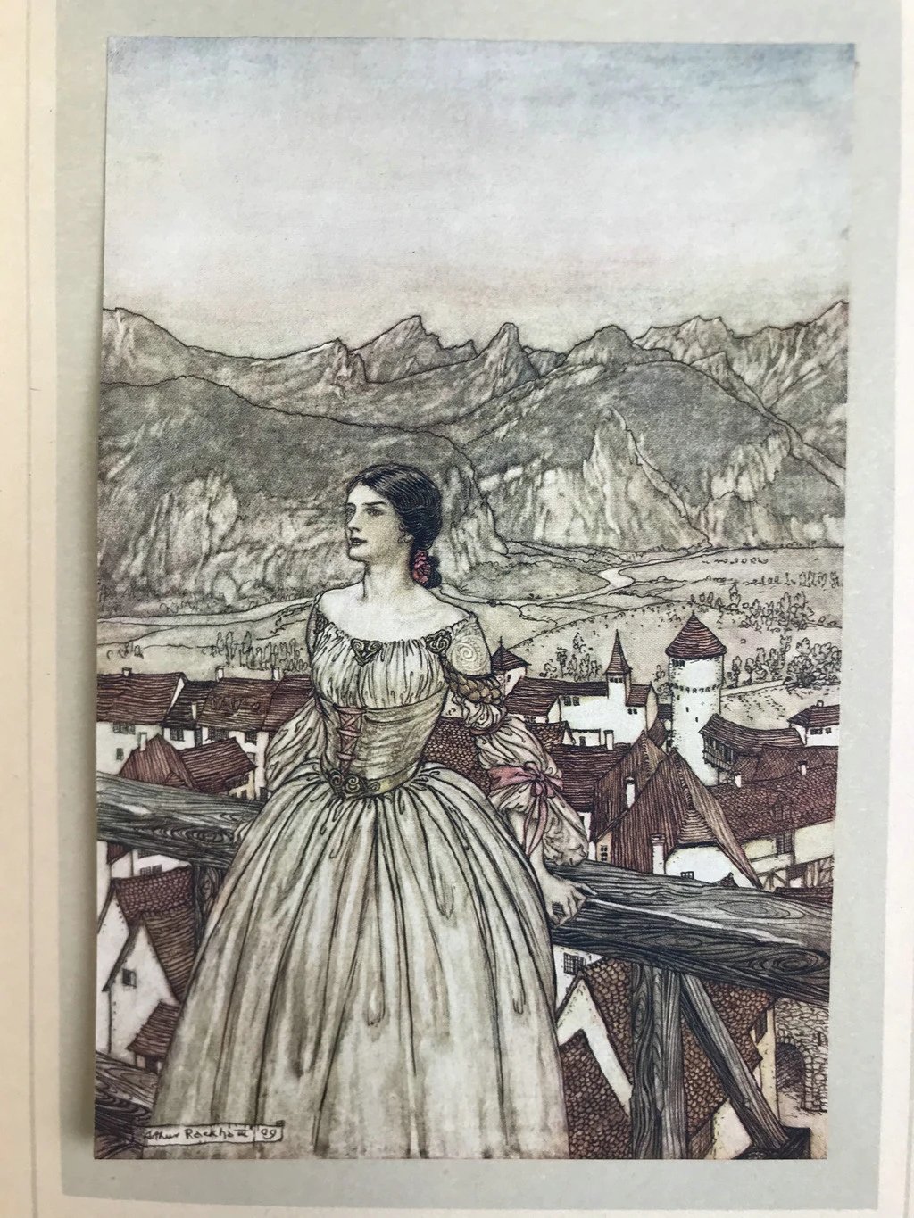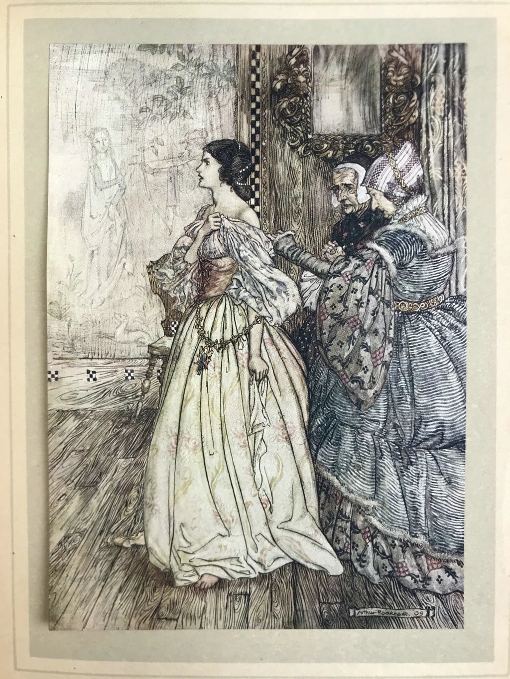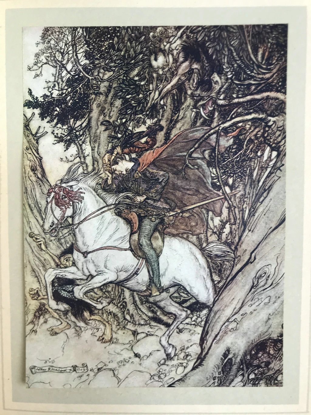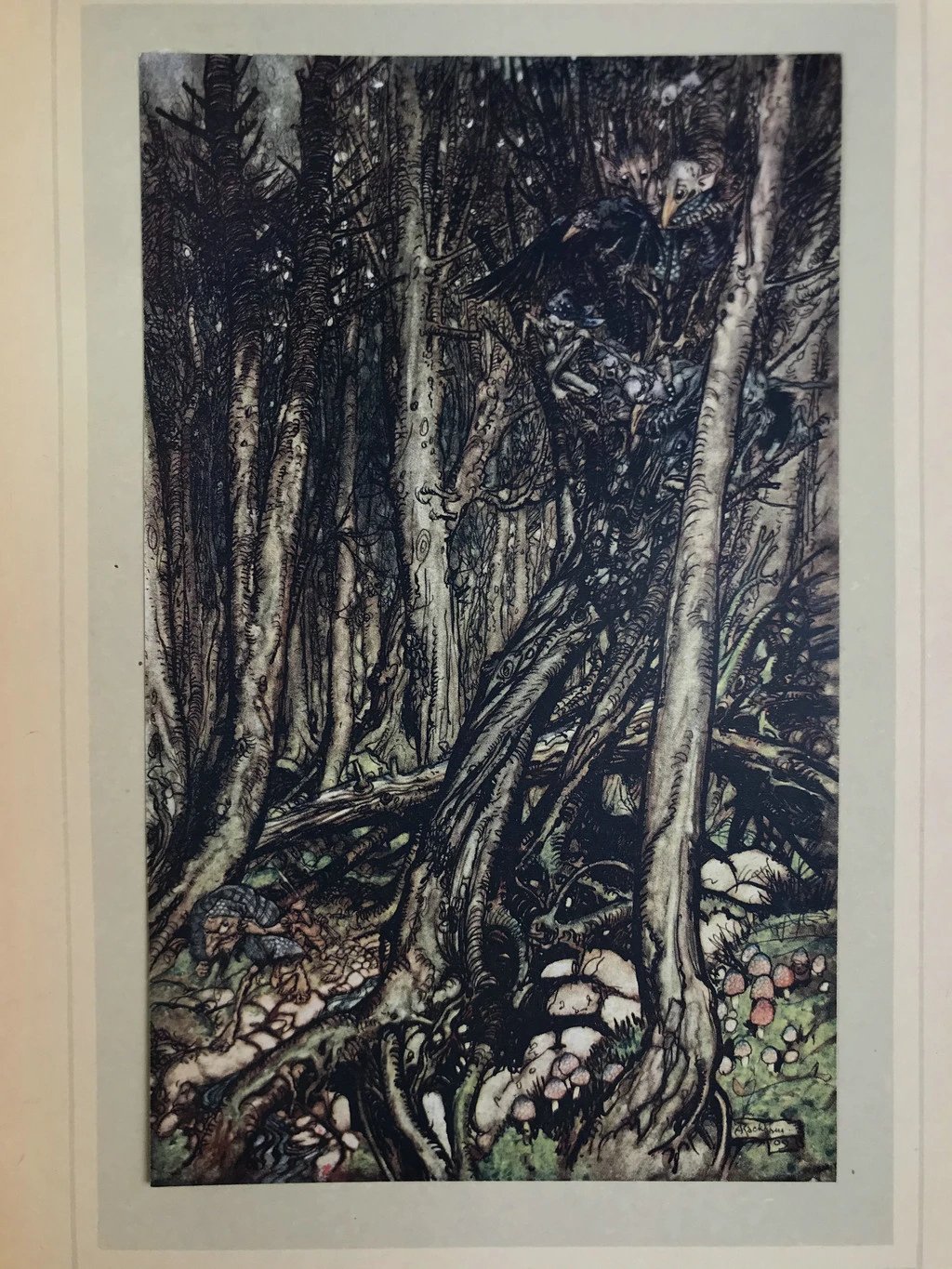 鬼才拉克姆15幅彩色手工贴图!1909年 莫特·富克《水妖记》 漆布精装16开